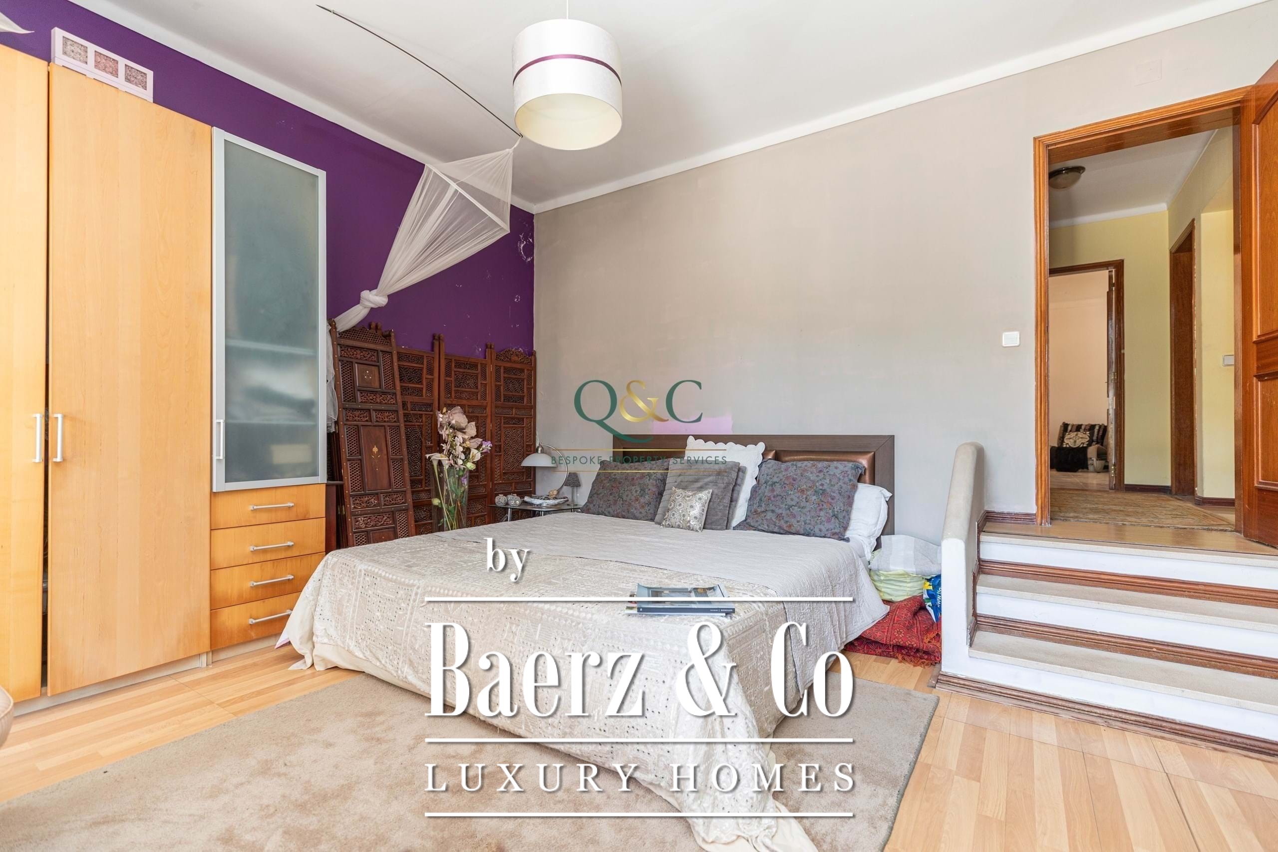 Upstairs, two generous landings open to balcony terraces, while the master suite enjoys a large bedroom, private terrace, walk-in dressing room, and luxurious en-suite bathroom. From one of the terraces, stairs rise to a rooftop terrace the perfect spot for entertaining, relaxing, or watching the sunset.