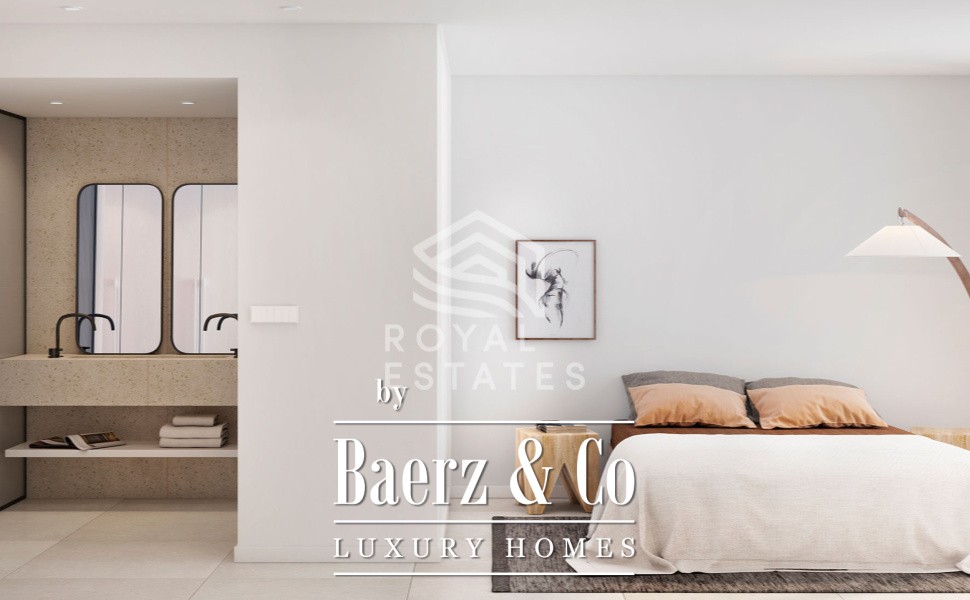 Set in a private and secure complex, these villas also include basement parking, harmonizing security with ease of access. The designer kitchen offers space for gathering and quiet retreat, while deep lines and Ibiza-style finishes define the terraces and gardens. Local amenities, the marina, and a sports complex are within reach, ensuring a seamless rhythm between home and island life.