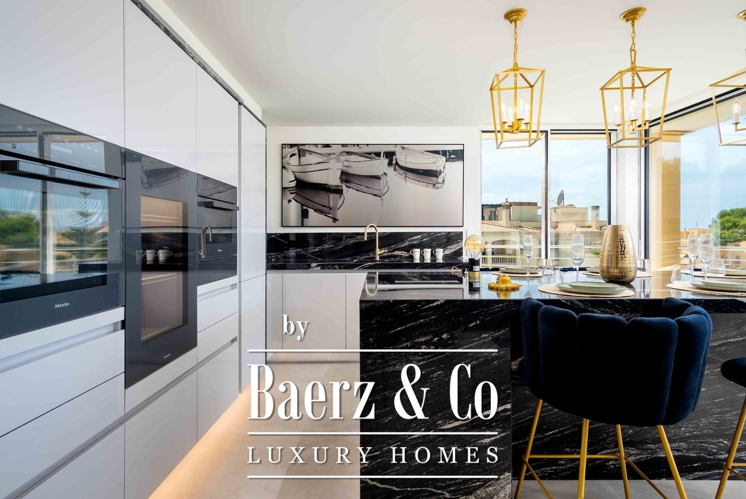 This renovated penthouse is part of one of the most prestigious residential complexes in Santa Ponca and is synonymous with luxury - simply breathtaking! With a total area of 357 m2, including 167 m2 of elegantly designed interior space and 190 m2 of generous outdoor space, this gem offers stunning sea views with a private pool on the roof terrace.