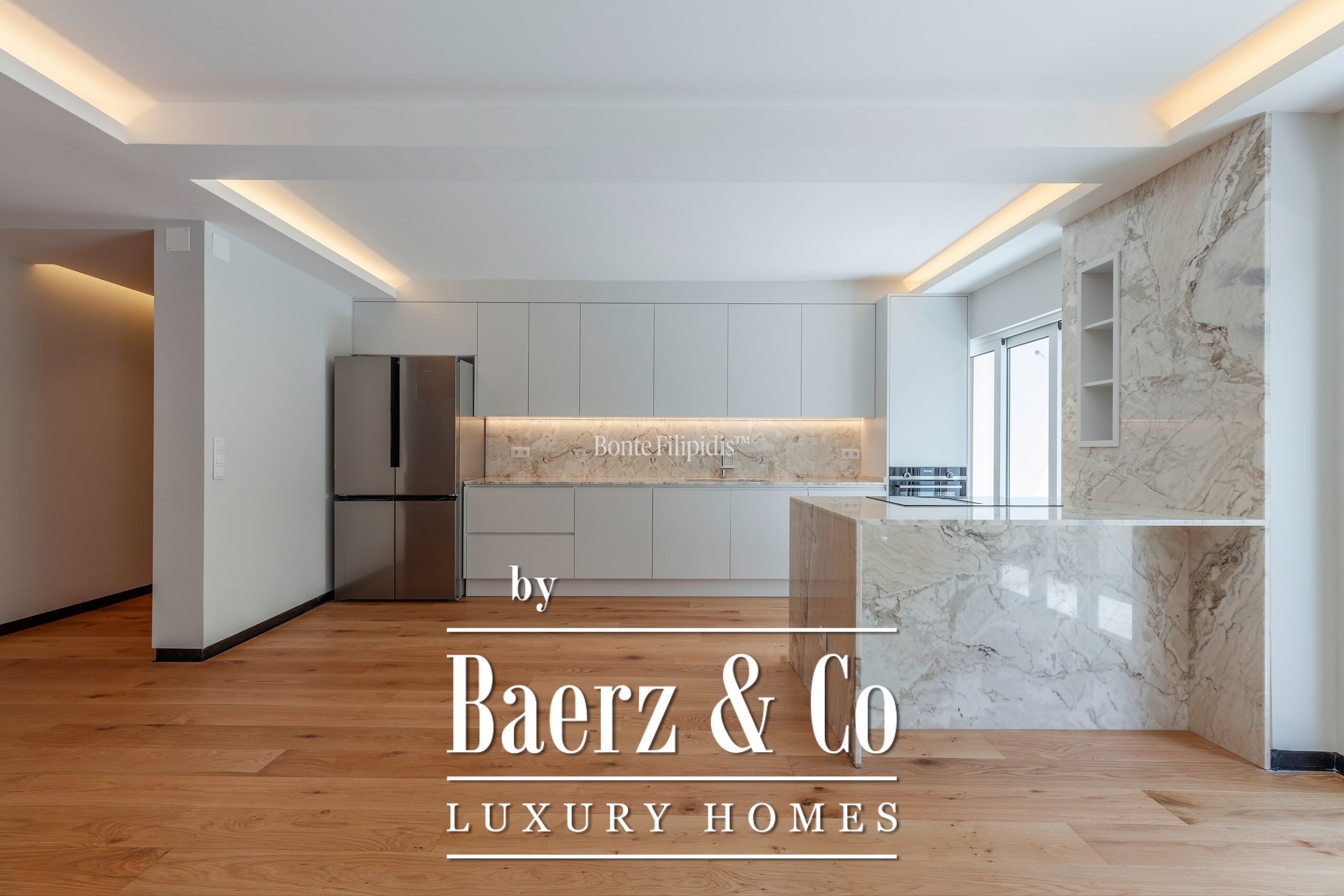 The spacious layout includes a modern, open-plan living area that seamlessly extends to the terraces, providing an ideal space for relaxation and entertainment. High-end finishes and state-of-the-art appliances ensure both style and functionality. The building is equipped with two elevators, enhancing ease of access.