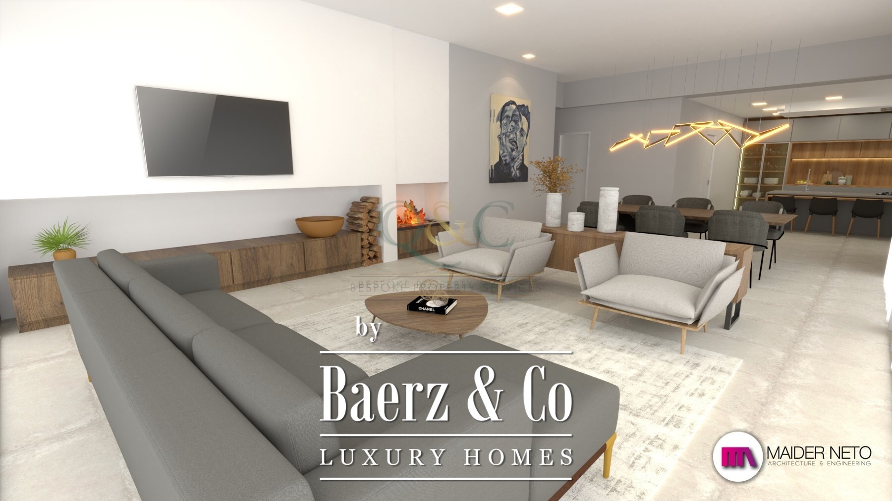 The spacious open plan living area with fully equipped high specification kitchen flows into the dining & living space which in turn takes you out to a covered terrace, the pool & landscaped garden beyond. Garage for one car, storage, guest cloakroom & laudry room with Bosch washer & dryer.