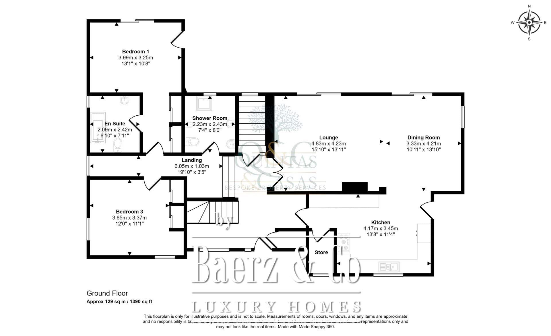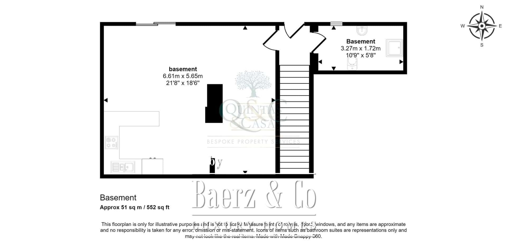 Stairs lead you down to a separate studio offering a cosy additional area for guests which also benefits from double doors out to a private terrace.