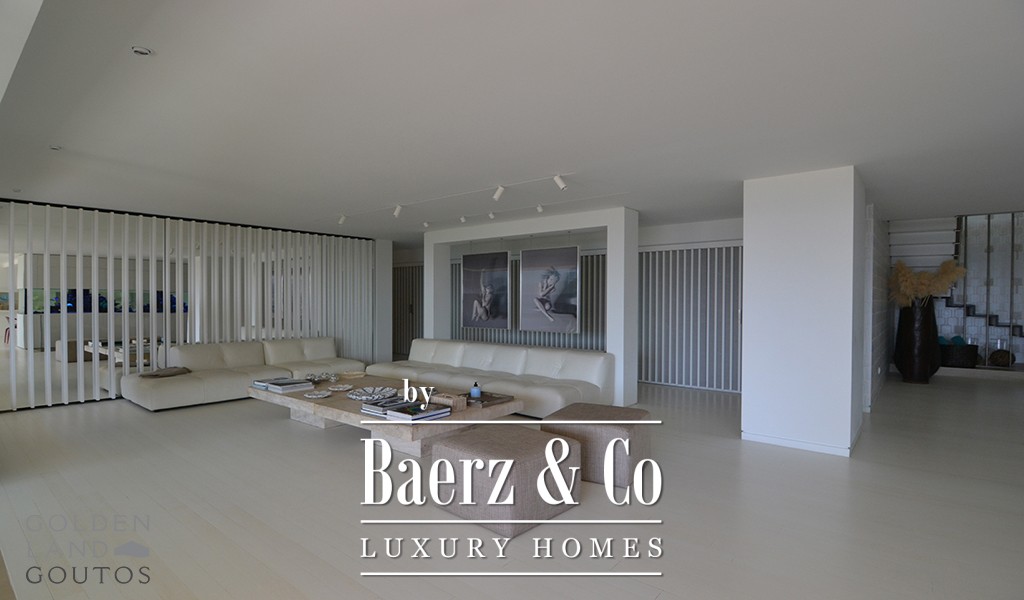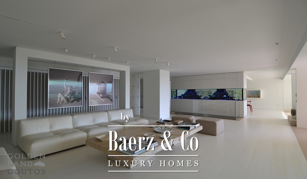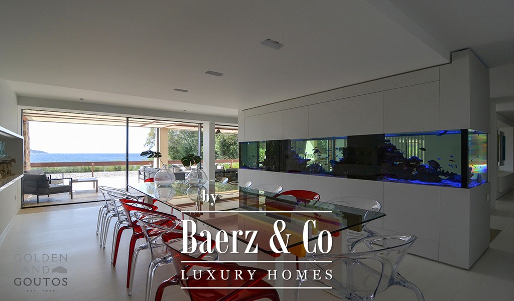 Nestled in the prestigious Mavro Lythari area, this exquisite property offers a truly unparalleled beachfront location with stunning sea views. Constructed in 2007, the home boasts a modern and minimalist design that exudes sophistication with its high-quality materials and impeccable craftsmanship. Featuring a total of 7 bedrooms, including 4 spacious master suites each with dressing rooms, and 1 with a private pool, this residence provides ample space for luxurious living. Additionally, there are 2 well-appointed helper rooms and 3 separate guest apartments, offering privacy and convenience for visitors. The property is a haven for recreation and entertainment, with exceptional amenities such as a playroom, tennis court, soccer field, and 2 swimming pools. Direct access to the beach adds to the allure of this unique residence, making it a coveted property in the sought-after Lagonisi area. Located near the renowned 5-star Hotel Grand Resort, this property further enhances its desirability and prestige. Situated on Attica's southwest coast, known as the 'Riviera of the Aegean', this premier waterfront residence offers a lifestyle of ultimate privilege. Stretching from the port of Piraeus to historic Cape Sounion, the Apollo Coast is renowned for its beauty and convenient proximity to Athens. Surrounded by turquoise sea waters, sandy beaches, and charming tavernas, this property is a true piece of paradise. Originally designed by the acclaimed architect Nikos Valsamakis, this villa showcases a seamless fusion of modern design and natural surroundings. Renovated to add a contemporary flair, the villa spans 600 sqm and offers a harmonious layout that maximizes space and comfort. With an abundance of natural light, the residence features a modern living area with floor-to-ceiling glass doors that open onto a terrace overlooking the Saronic Sea. The master wing on the upper level offers a private retreat with stunning sea views, a luxurious bathroom, and a sophisticated salon. The lower level includes bedrooms, a home theater,