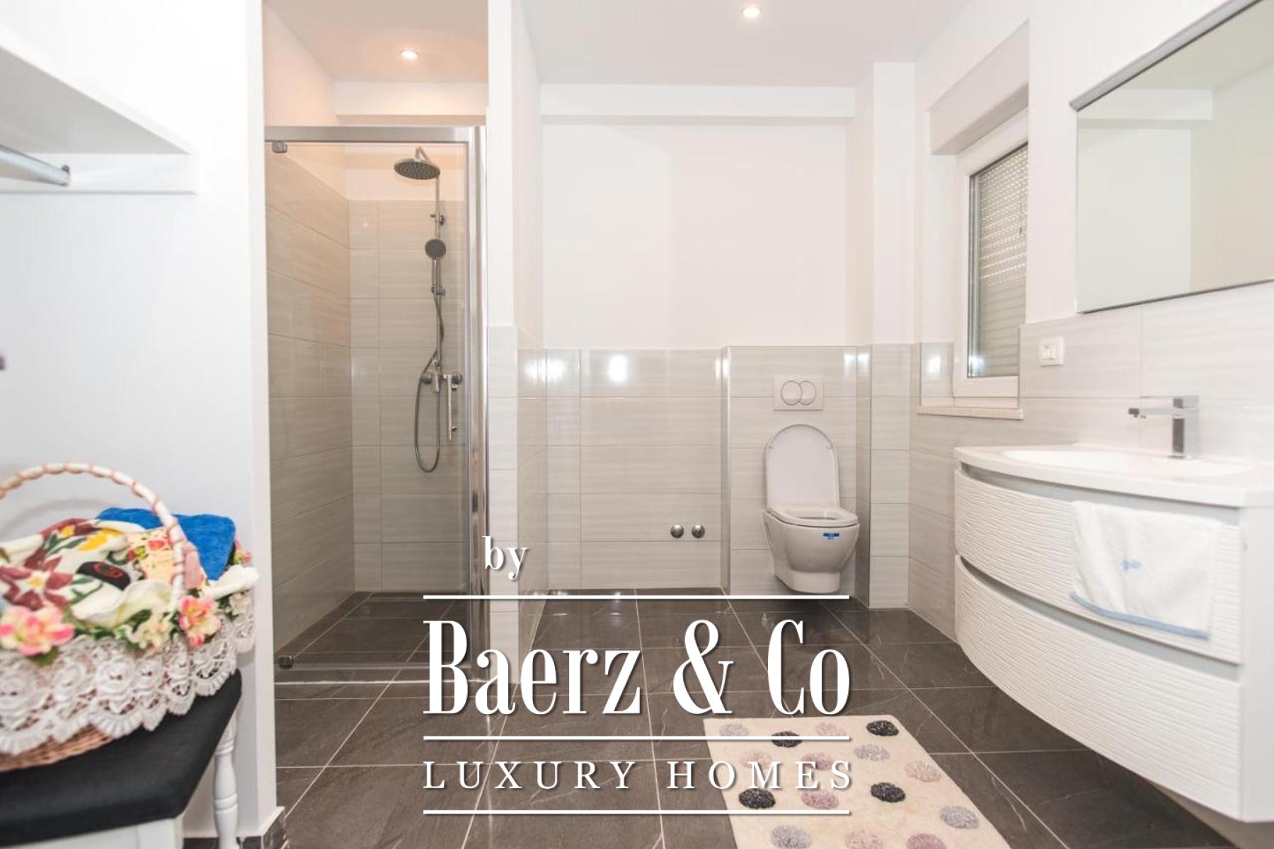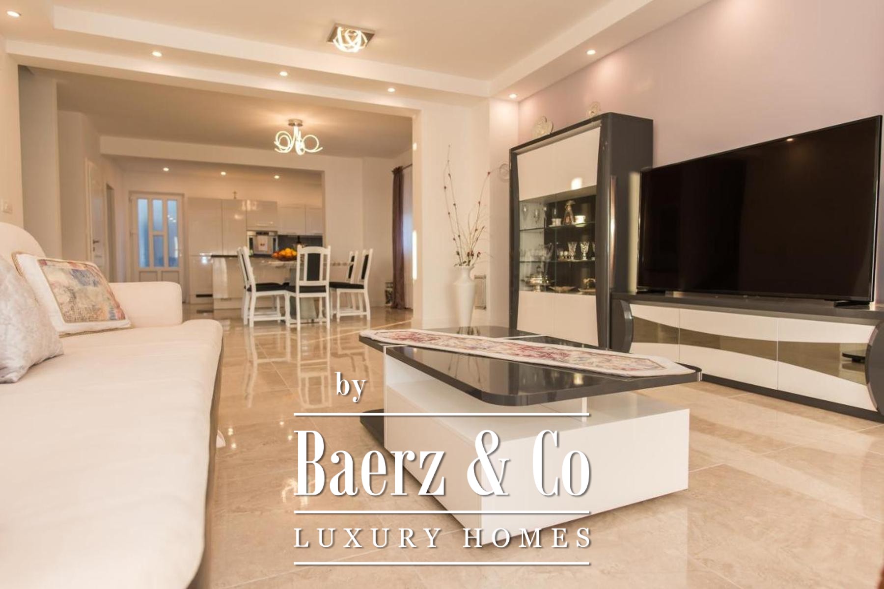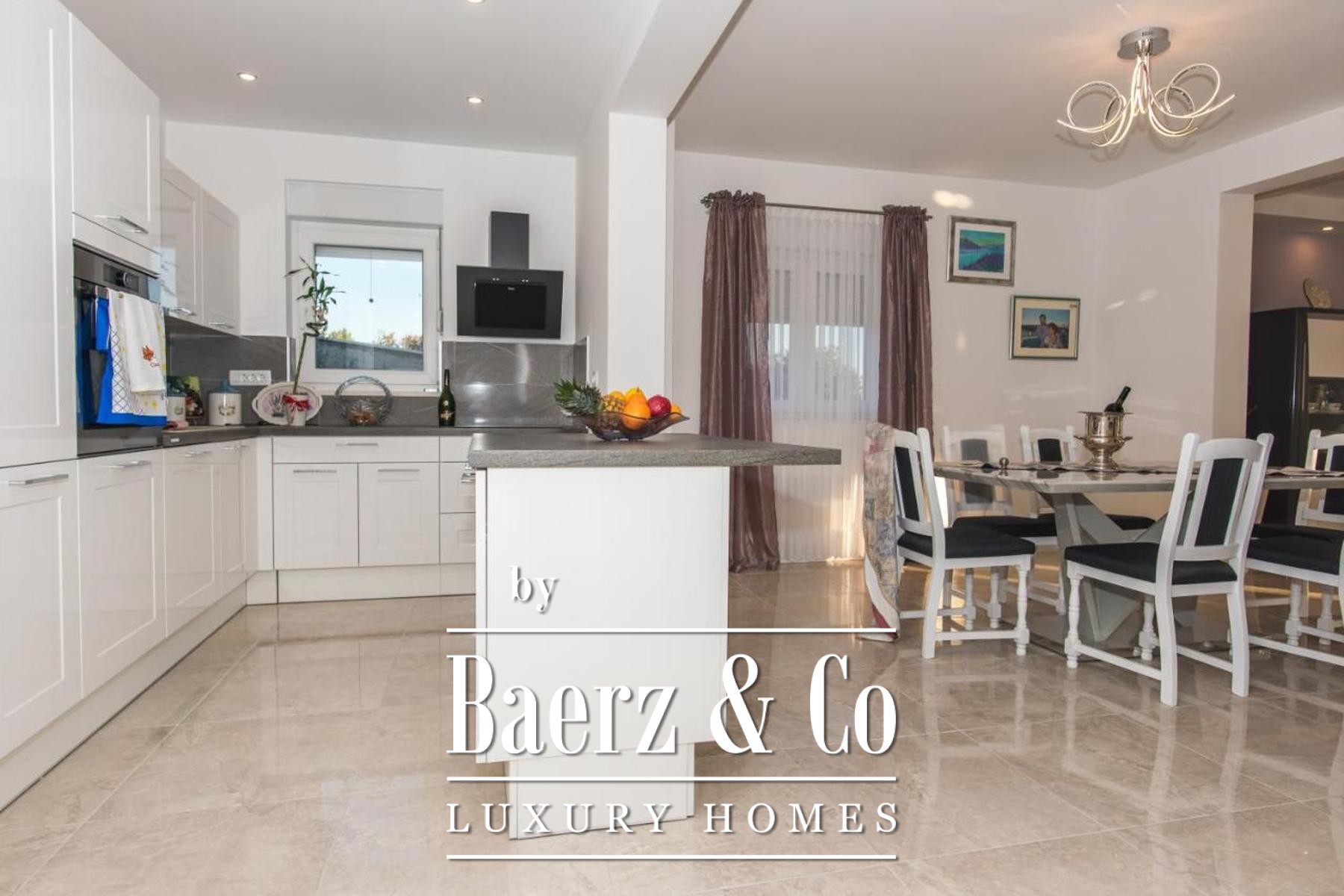 Upstairs, three further bedrooms and two bathrooms accommodate guests or family. Outdoors, a 32 m² swimming pool is set amid Mediterranean landscaping, complemented by a sunbathing area and barbecue. Proximity to Medena and Belvedere beaches and the eight-kilometre journey to Split airport define a pace of life that is both tranquil and connected. This townhouse in Seget quietly balances Mediterranean vivacity with everyday comfort.
