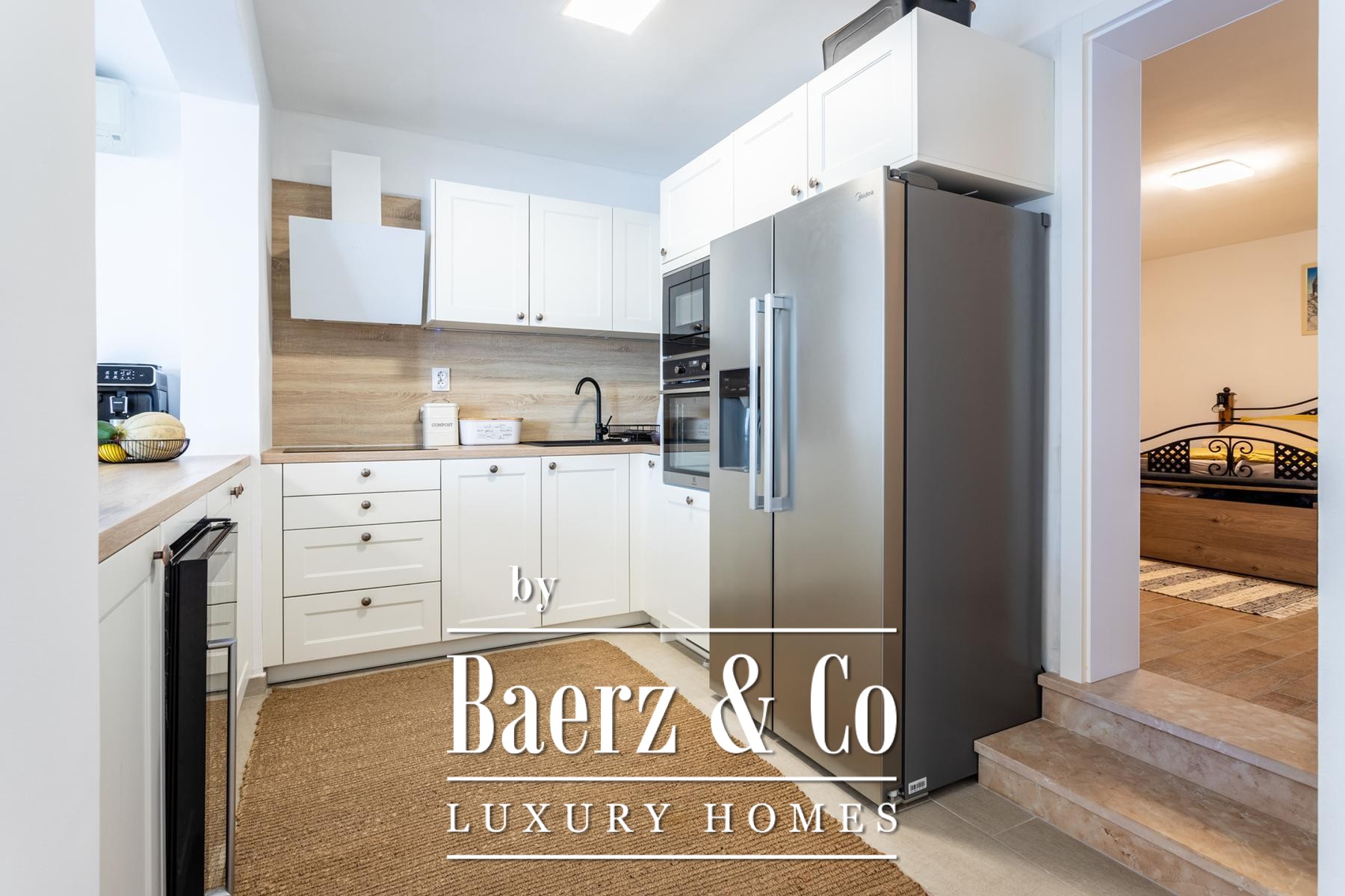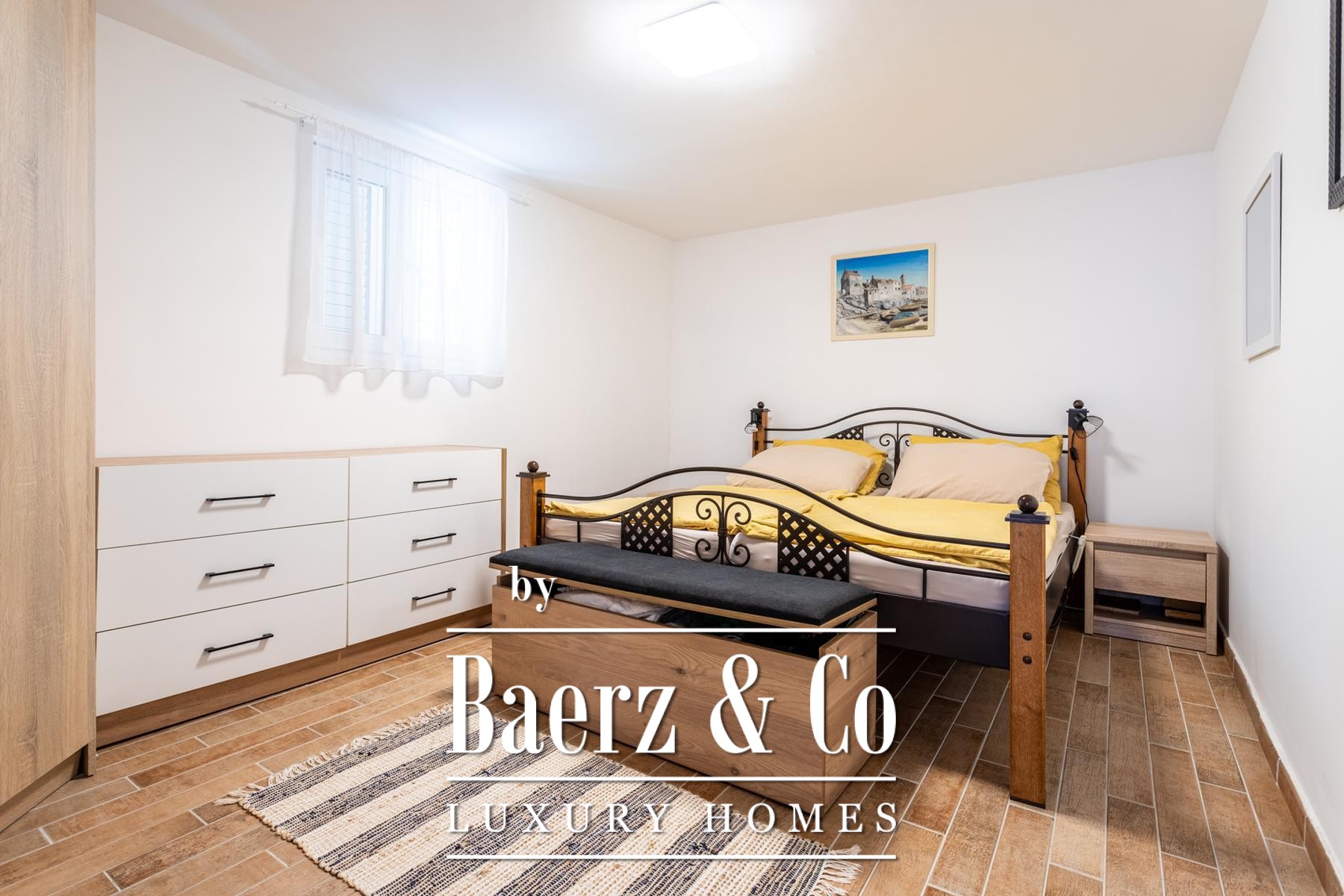 Direct beach access lies just beyond the terrace, with the possibility to moor a boat or step from either the pier or shore straight into the sea. Off-street parking for three vehicles, partially shaded, completes the picture of understated coastal living. This townhouse Seget stands as a refined retreat for those seeking the ebb and flow of Croatian waterfront life.