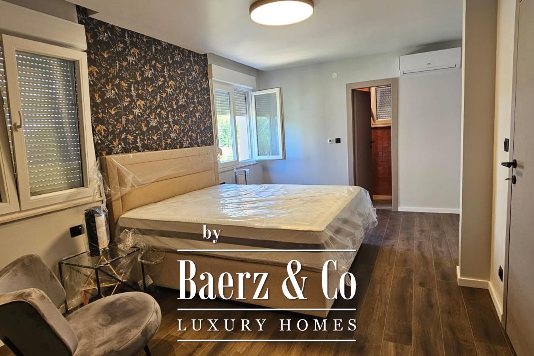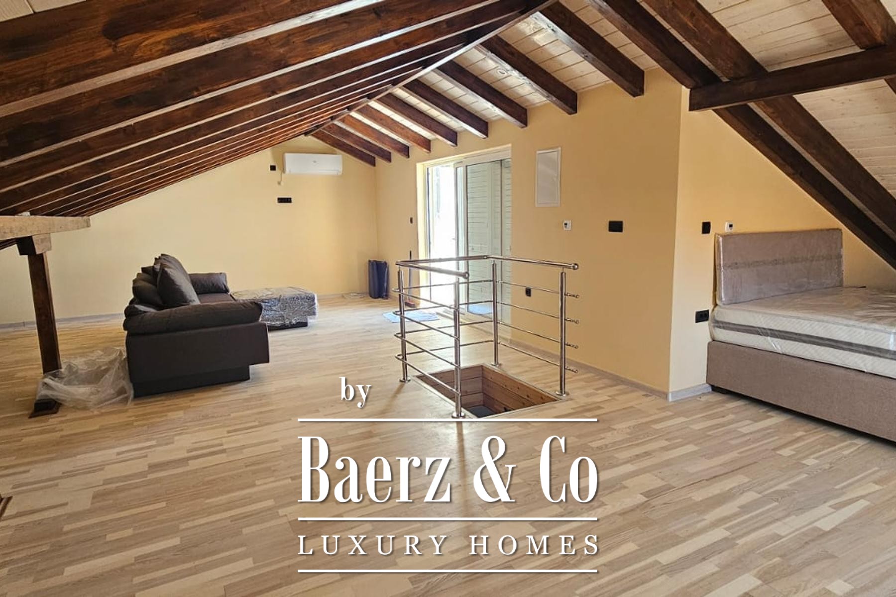 The house’s setting on a 550 m² plot lends privacy and tranquility, just 150 metres from the sea on elevated ground in a peaceful village enclave. The building, completed in 1983 and entirely modernized by 2022, features advanced thermal insulation, high-quality PVC windows, underfloor heating, and a solar hot water system. Rich period furnishings, high-quality ceramics, and vinyl floors combine for a sense of comfort and efficiency.