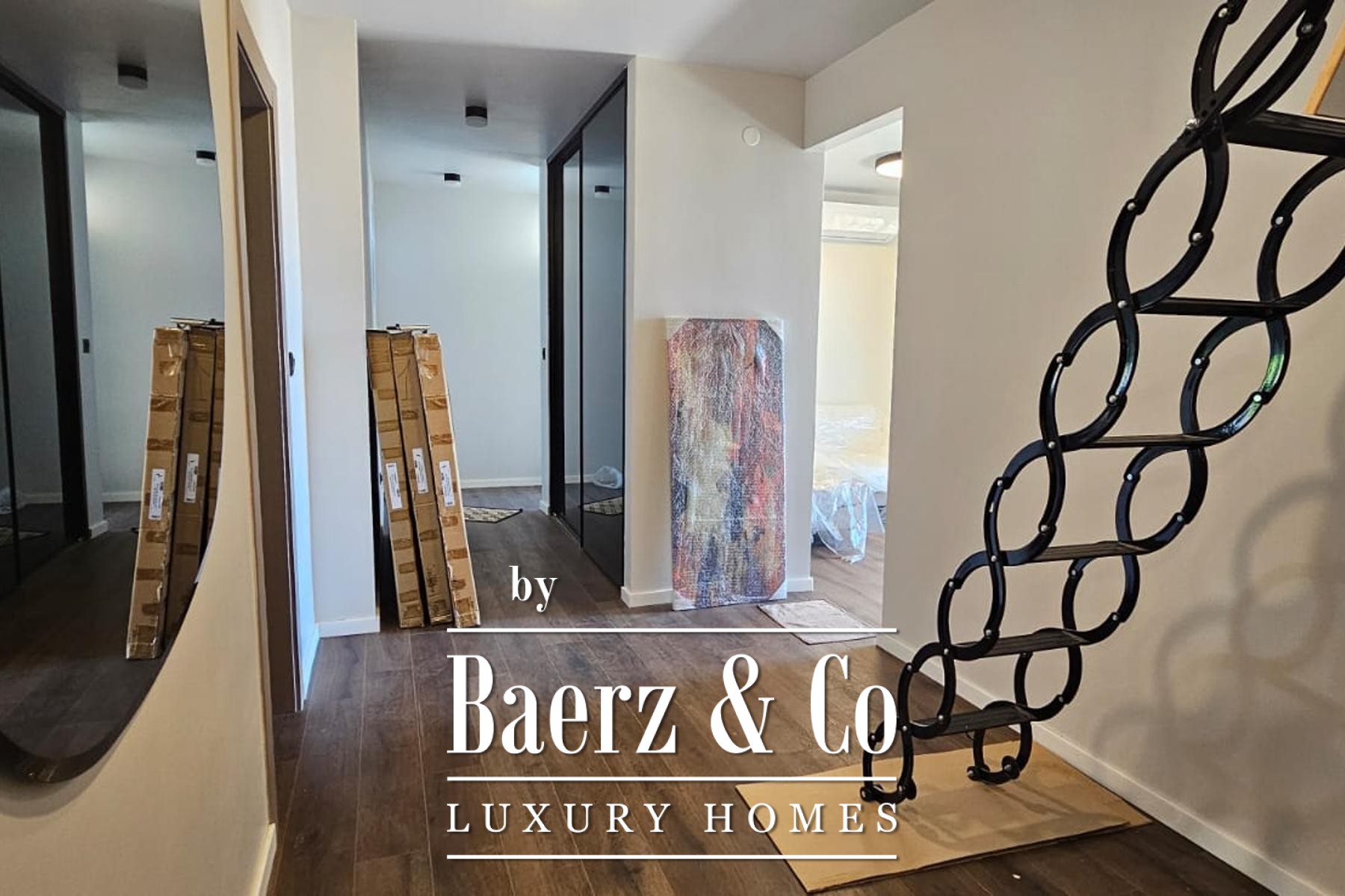 The residence includes a basement with garage parking for two cars, additional storage, along with space for four more cars outside. The attic floor connects internally, offering a further 69 m² landscaped area and a generous terrace with uninterrupted sea panoramas. This luxury townhouse for sale in Seget brings together architectural substance and rare proximity to the Adriatic coastline.