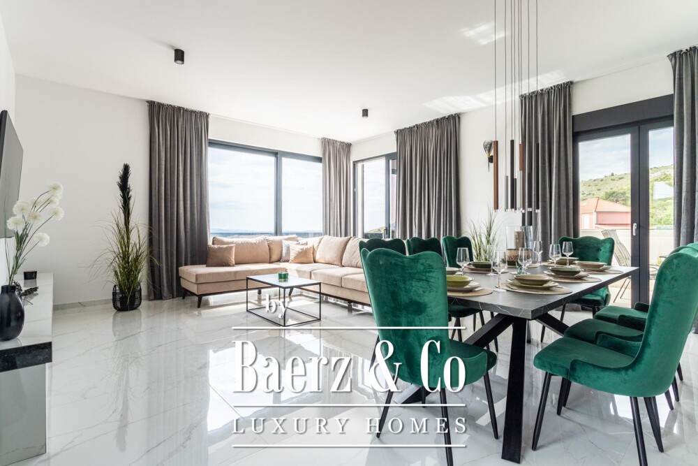 Villa Seget offers a contemporary perspective on Mediterranean living, commanding an elevated position with open views across the Adriatic and surrounding islands. This villa in Seget is under construction, comprising 219 m² of living space arranged across two levels. The design orientation ensures that light, sea, and sky define the experience within, while substantial terraces and a private swimming pool set the rhythm for outdoor leisure.