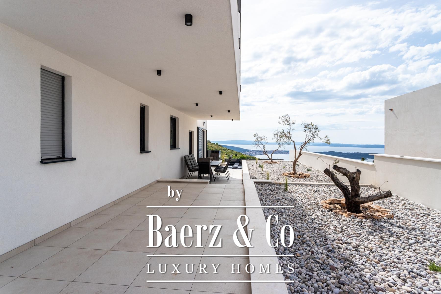 Three outdoor parking spaces offer practical everyday ease. The 1,000 m² plot shapes a sense of privacy, expanding to a sunbathing terrace ideal for quiet enjoyment or elegant summer gatherings. This villa in Seget, Croatia, merges investment potential and authentic Mediterranean retreat within a framework of modern, purposeful architecture.