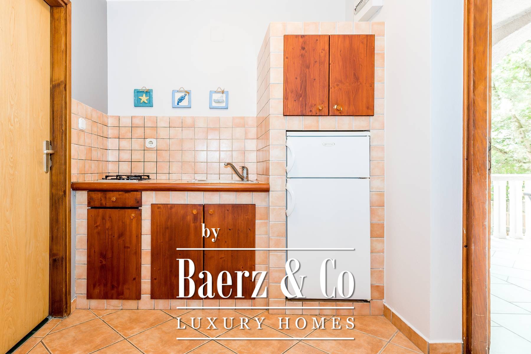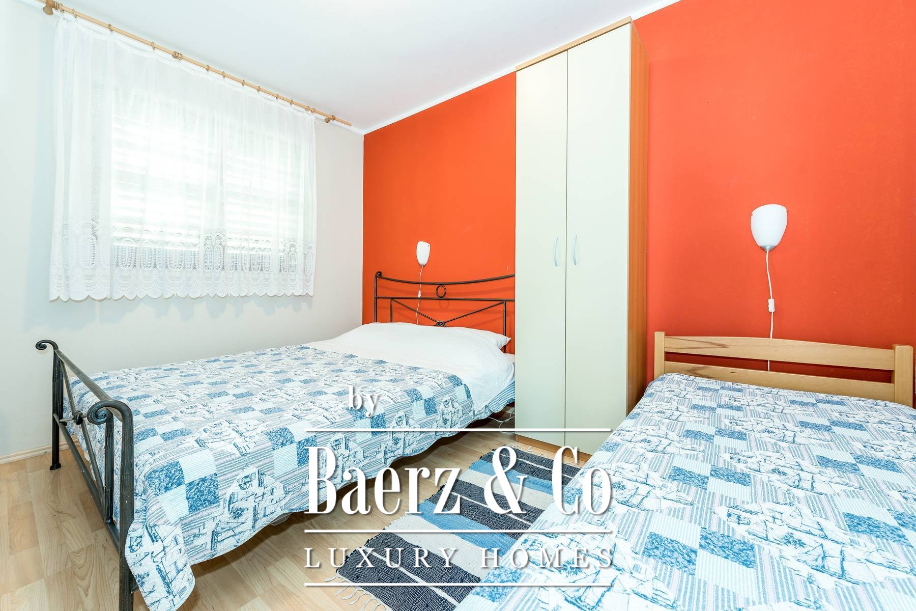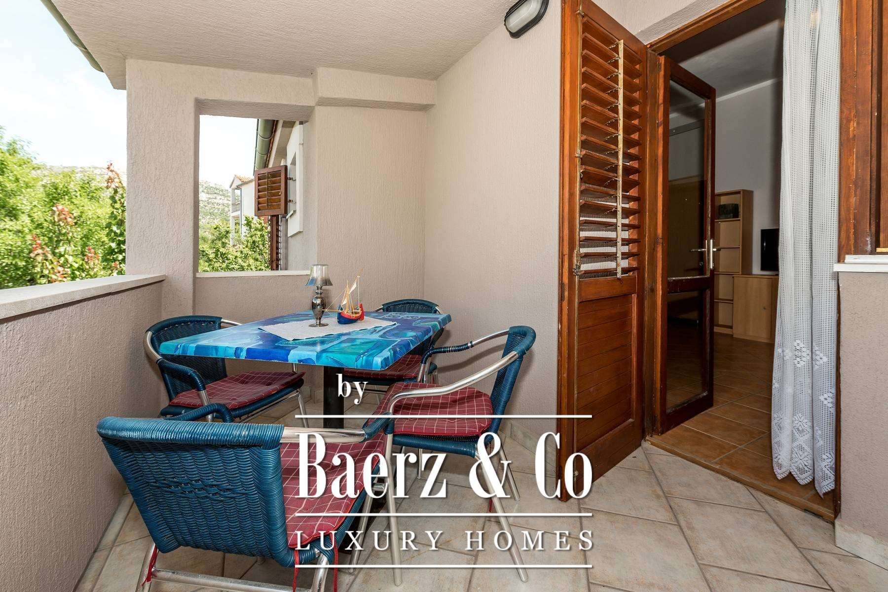 Grebaštica, two-story house with six apartments located on a plot of 420 m2. Each floor has an area of 163 m2, and there are three apartments on each (two two-bedroom and one one-bedroom) with associated terraces. A private road 2 meters wide