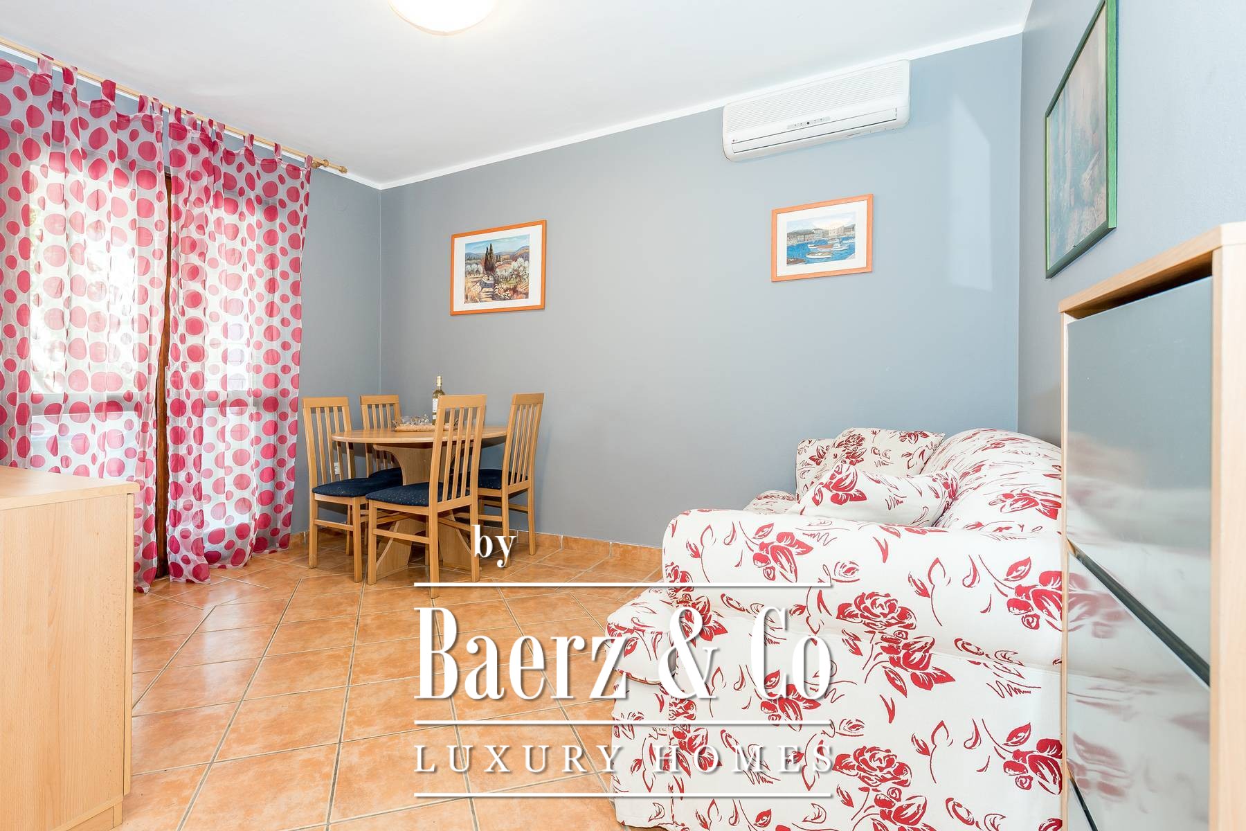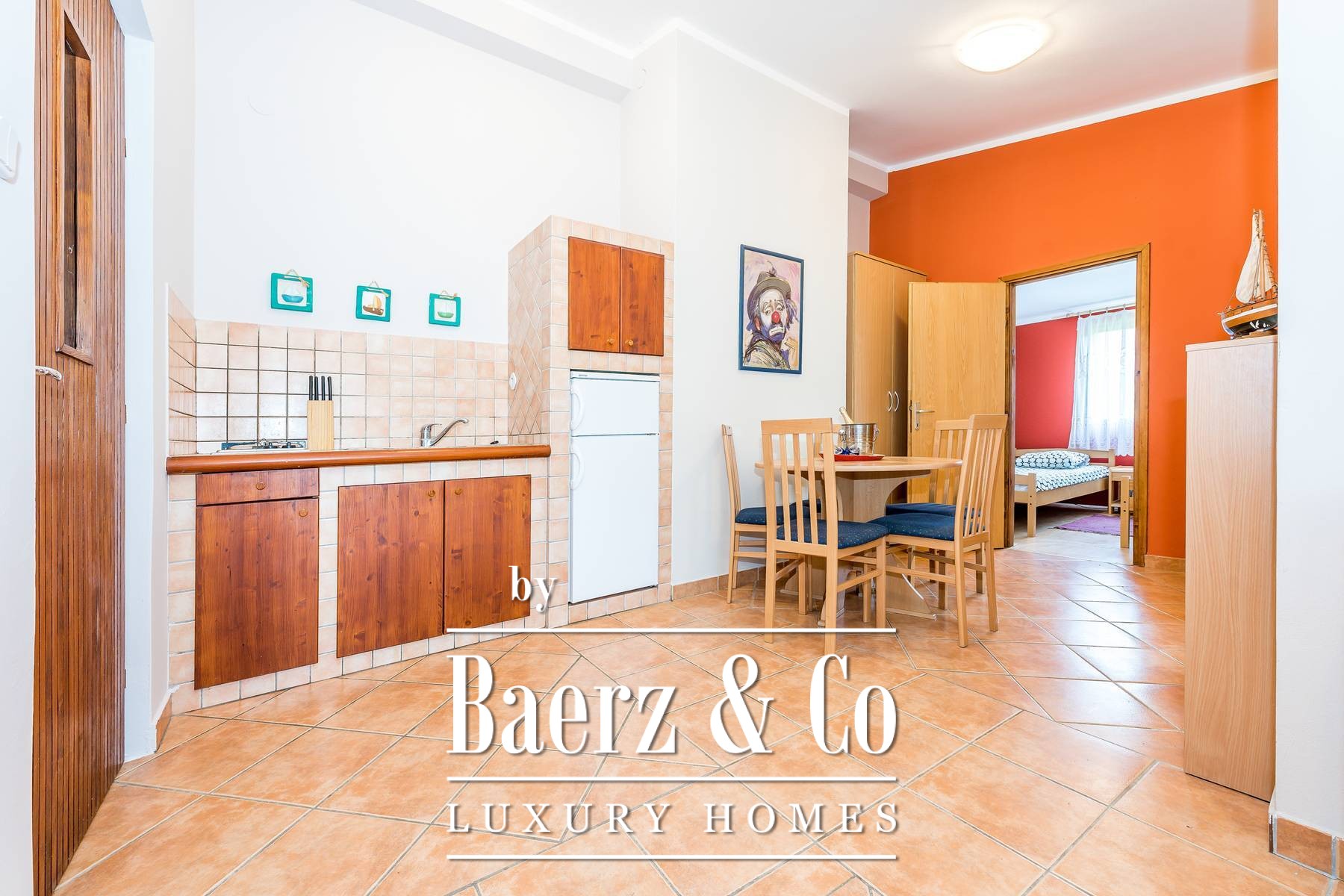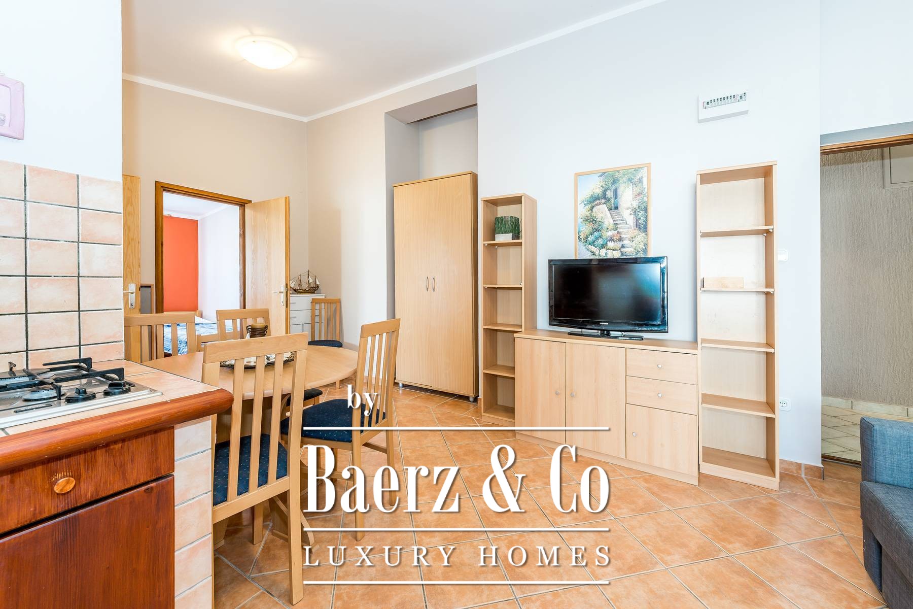 Grebaštica, two-story house with six apartments located on a plot of 420 m2. Each floor has an area of 163 m2, and there are three apartments on each (two two-bedroom and one one-bedroom) with associated terraces. A private road 2 meters wide