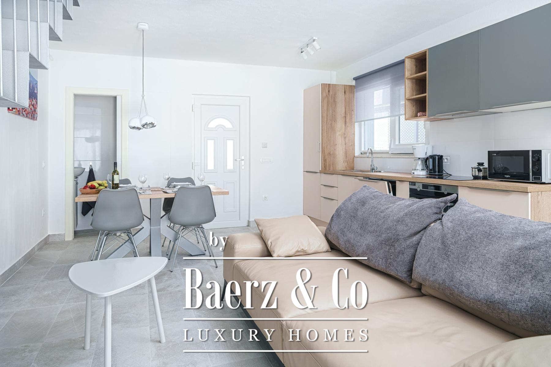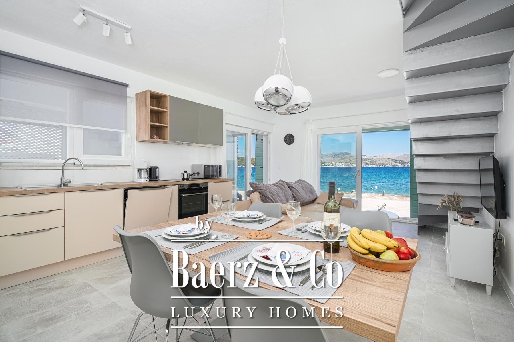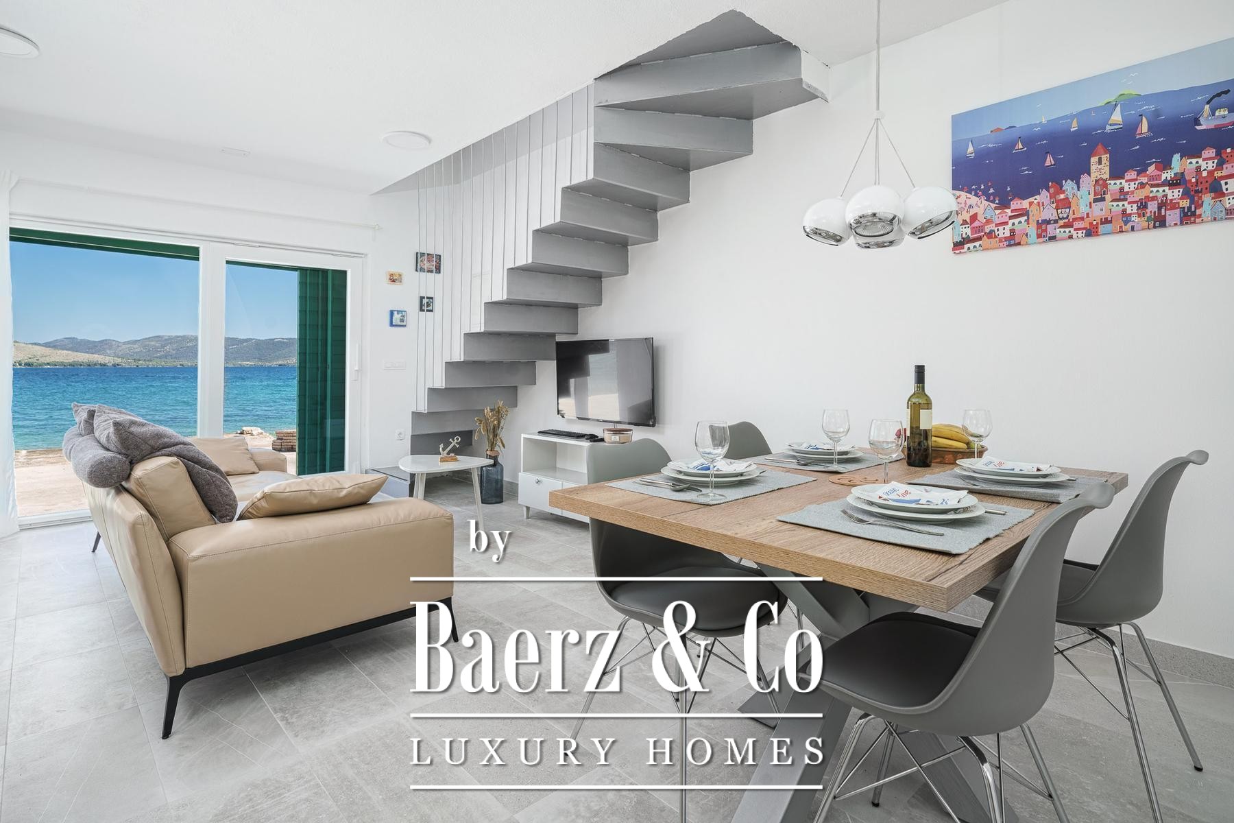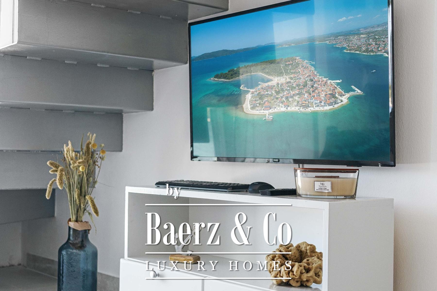 Townhouse Krapanj Island first row to the sea offers a distinctive experience of coastal living, blending historical charm with modern refinement. This recently built property of 90 m² stands directly by the water, just 15 meters from the edge of the Adriatic, on the intimate island of Krapanj. The house is composed across three floors on a 36 m² plot, with interiors that speak to both functionality and tranquillity.