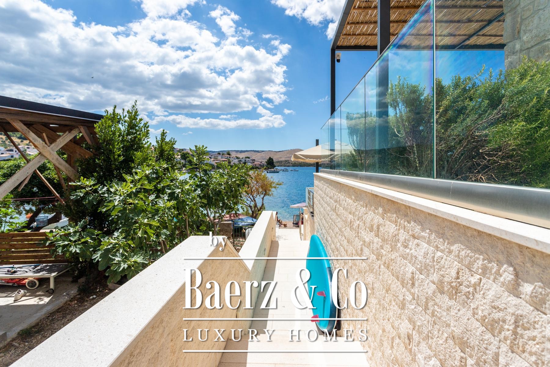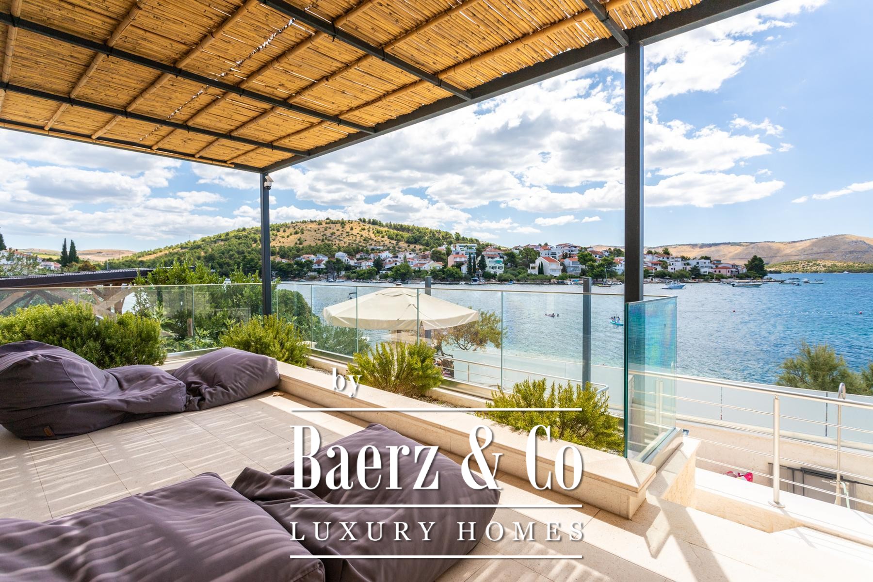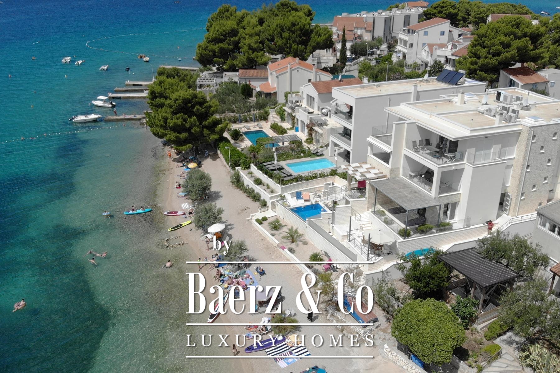 and a laundry room. The living room opens onto a large covered terrace with a sea view, and from the terrace there are stairs leading down directly to the beach. Each room has air conditioning, and the apartment has built-in underfloor heating with a heat pump.The apartment is equipped with top-quality appliances, has a modern custom-made kitchen and designer furniture. It is being sold fully furnished and gives the buyer the opportunity to live on the beach.We are at your disposal for all other information.