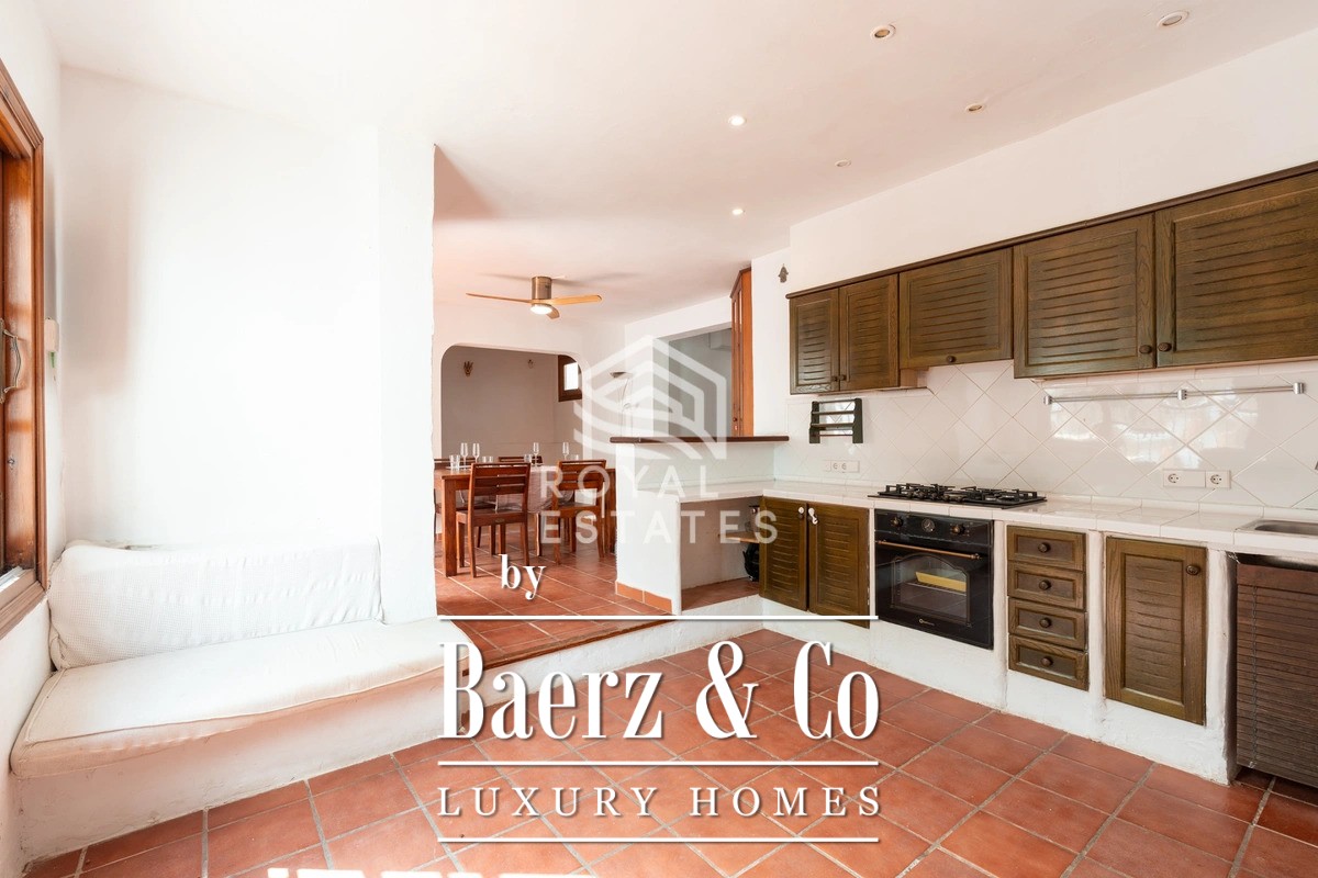 This semi detached villa in Siesta, Santa Eul\u00e0ria des Riu, combines Mediterranean charm with modern comfort. With three bedrooms, three bathrooms and a built area of approximately 150 square metres, the property offers a balanced lifestyle where tranquility and convenience go hand in hand. The setting is one of its greatest assets. Within a four minute walk lies the well known Hotel Spa Fenicia, the ideal place to indulge in a day of relaxation, while in less than ten minutes you can reach the sandy beach of Santa Eulalia. The area of Siesta is appreciated for its calm atmosphere while still being close to everything you need. From local restaurants and cosy caf\u00e9s to boutiques and supermarkets, daily life here is both practical and enjoyable. Inside, the home welcomes you with bright and comfortable living spaces. The open layout has been designed to bring people together, whether for family evenings or dinners with friends. The kitchen allows for easy preparation of meals and gatherings, where food and conversation naturally become the centrepiece of the day. Every detail has been thought of to make this a warm and inviting place to live. The three bedrooms provide private retreats that ensure peace and relaxation at the end of the day. Each one is designed