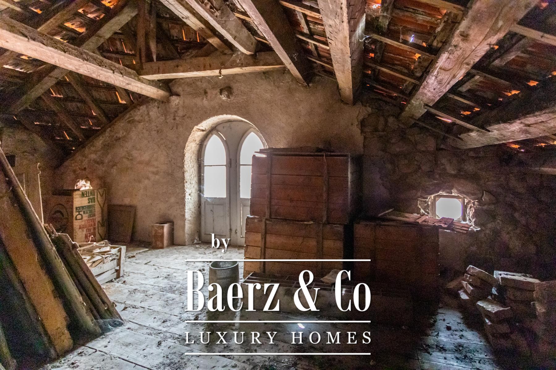Townhouse Sinj stands as a protected cultural asset in the very center of this historic Croatian city. This property, with a total gross area of approximately 590 m² on a plot of around 1,200 m², features seven bedrooms and seven bathrooms. Set within walled gardens and facing a well-tended lawn, the main residence rises over three floors. The ground floor offers two generous storage rooms and access to an elegant internal staircase. The first floor unfolds into one spacious principal room and a series of smaller chambers, preserving the rhythm and distinction of original period architecture. The attic holds several additional rooms beneath traditional rooflines.