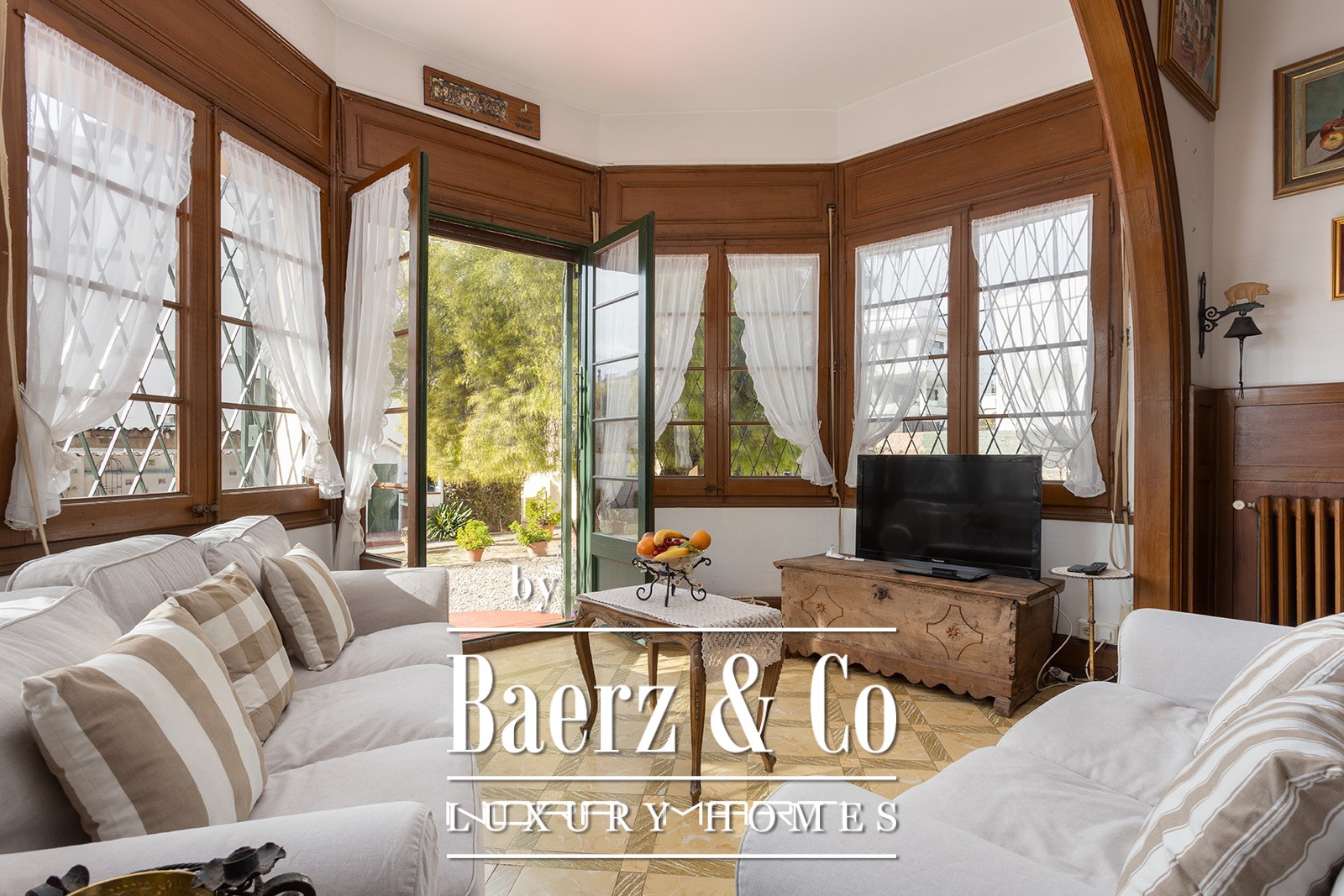 Complementing the main house is an additional residence with two bedrooms, a bath, a garage, and a solarium, suited to guests or service. The situation, 100 meters from the beach and within walking distance of Sitges’ amenities, offers a balance of centrality and discretion rarely found in the region. For those seeking a property with provenance, ample space, and privacy, this historic house in Sitges stands as a distinctive opportunity.