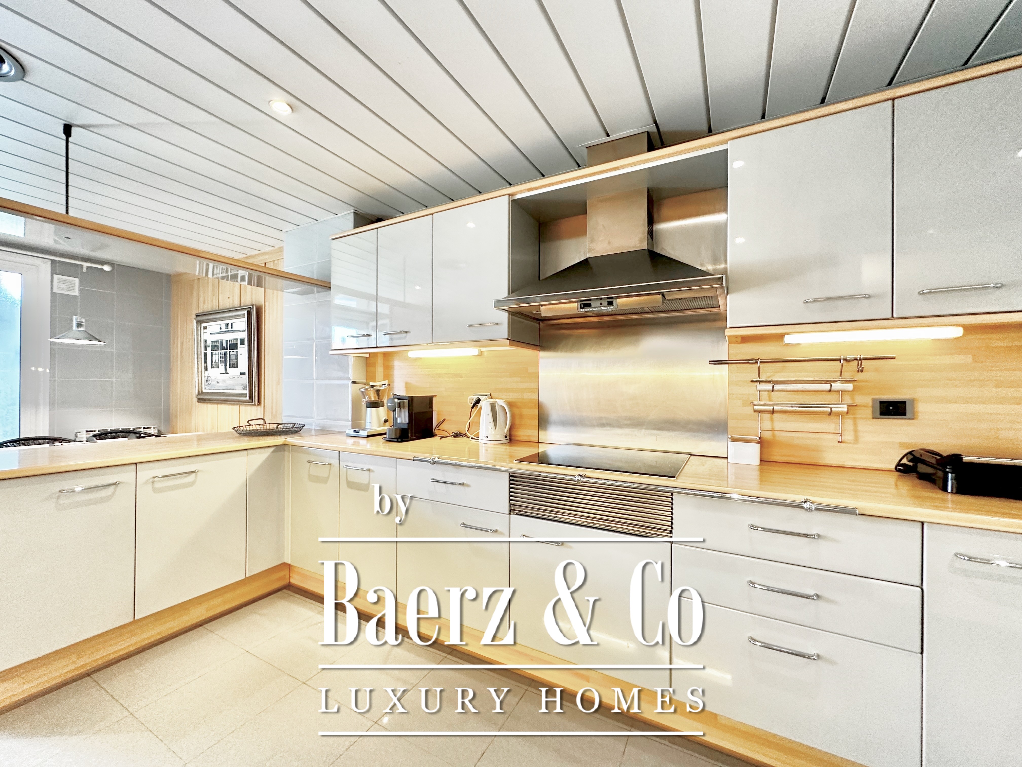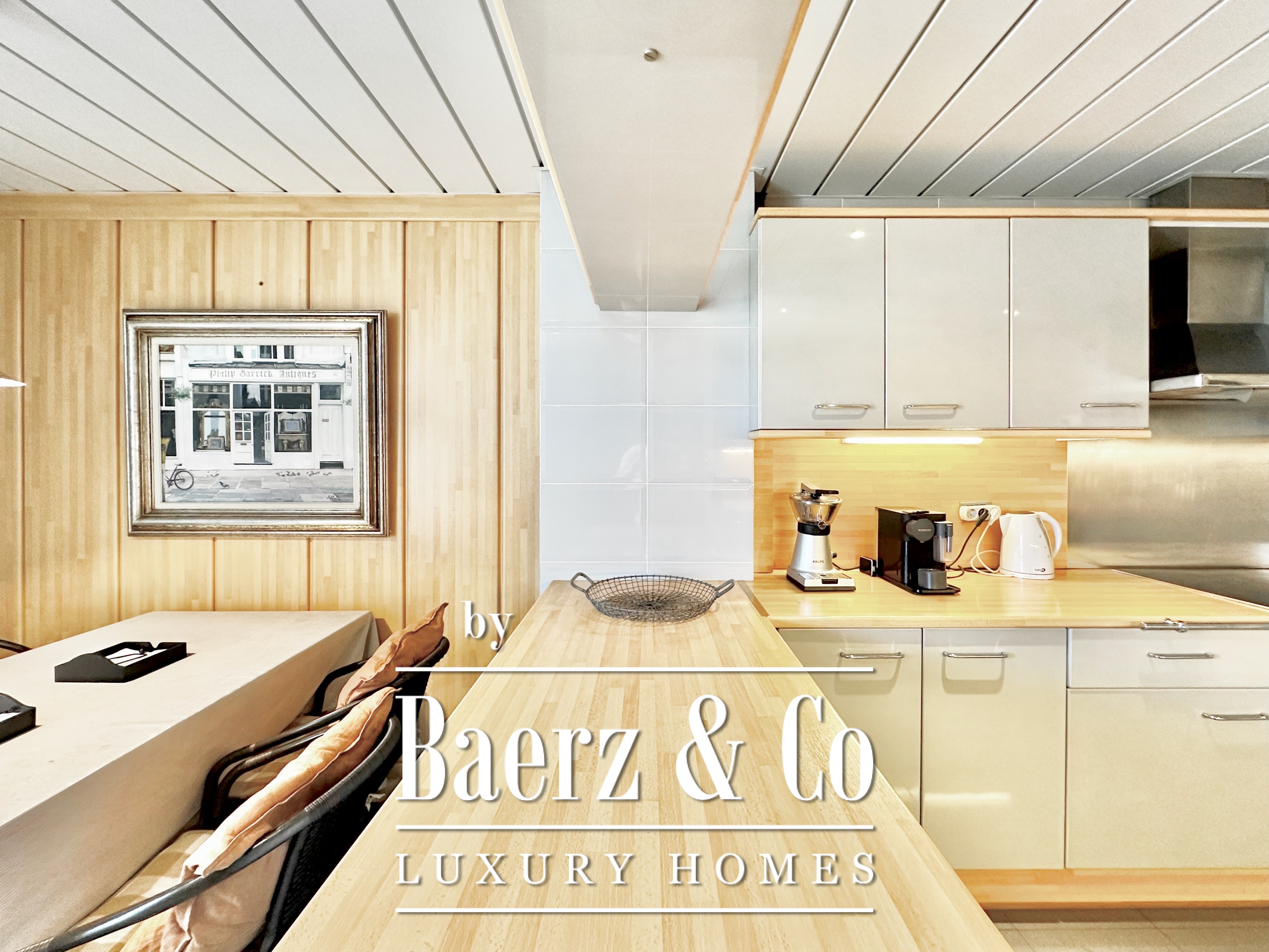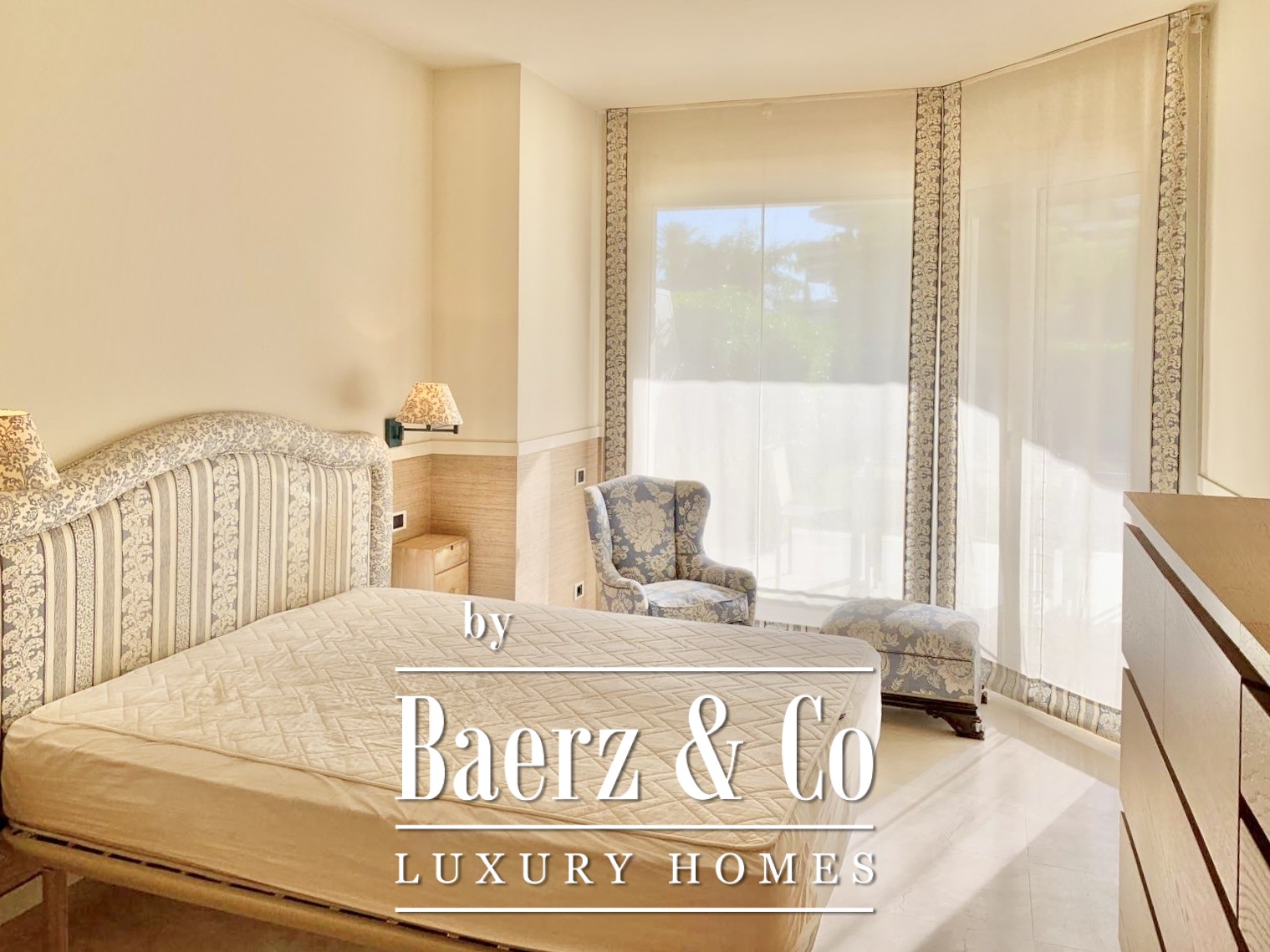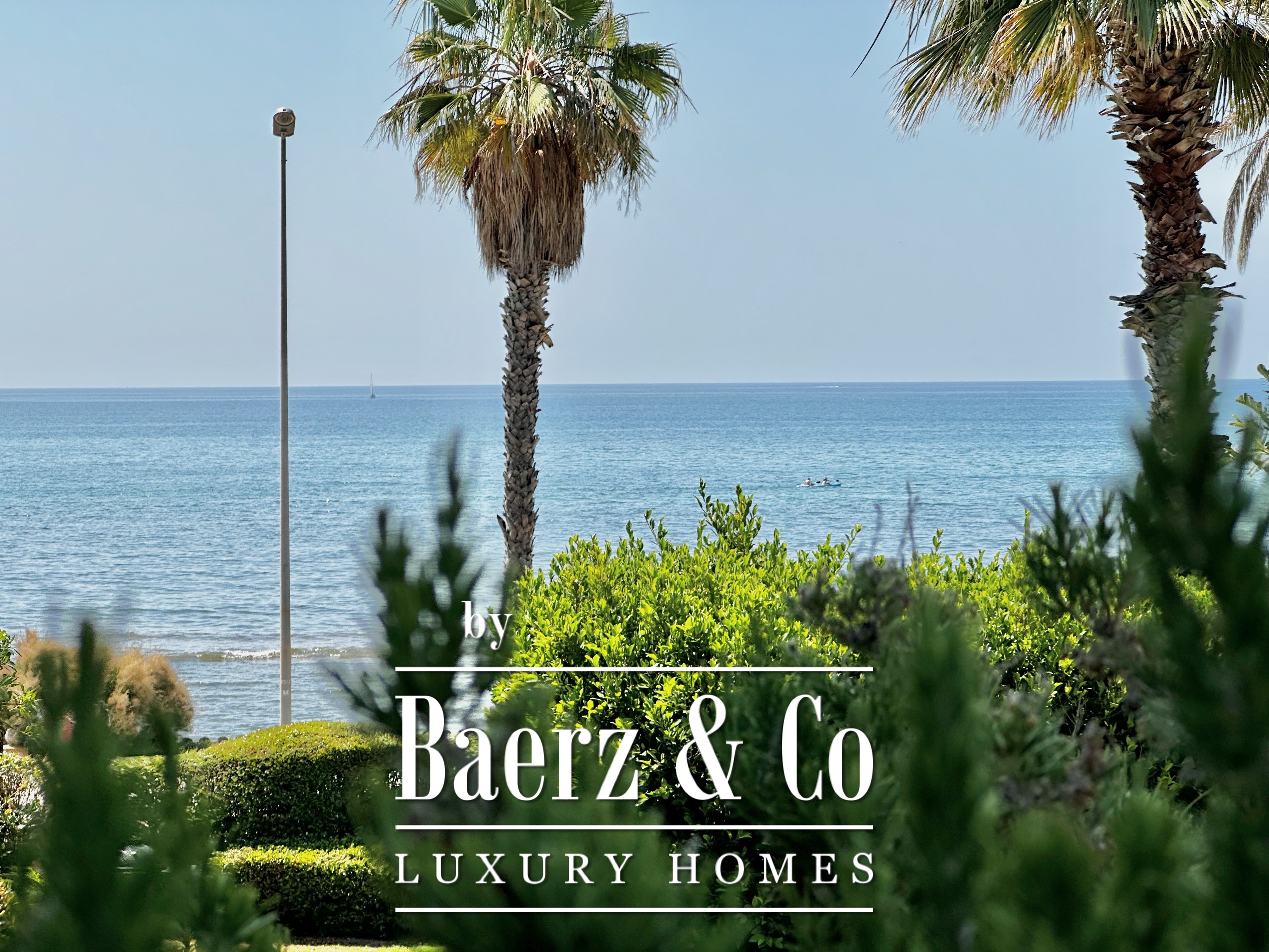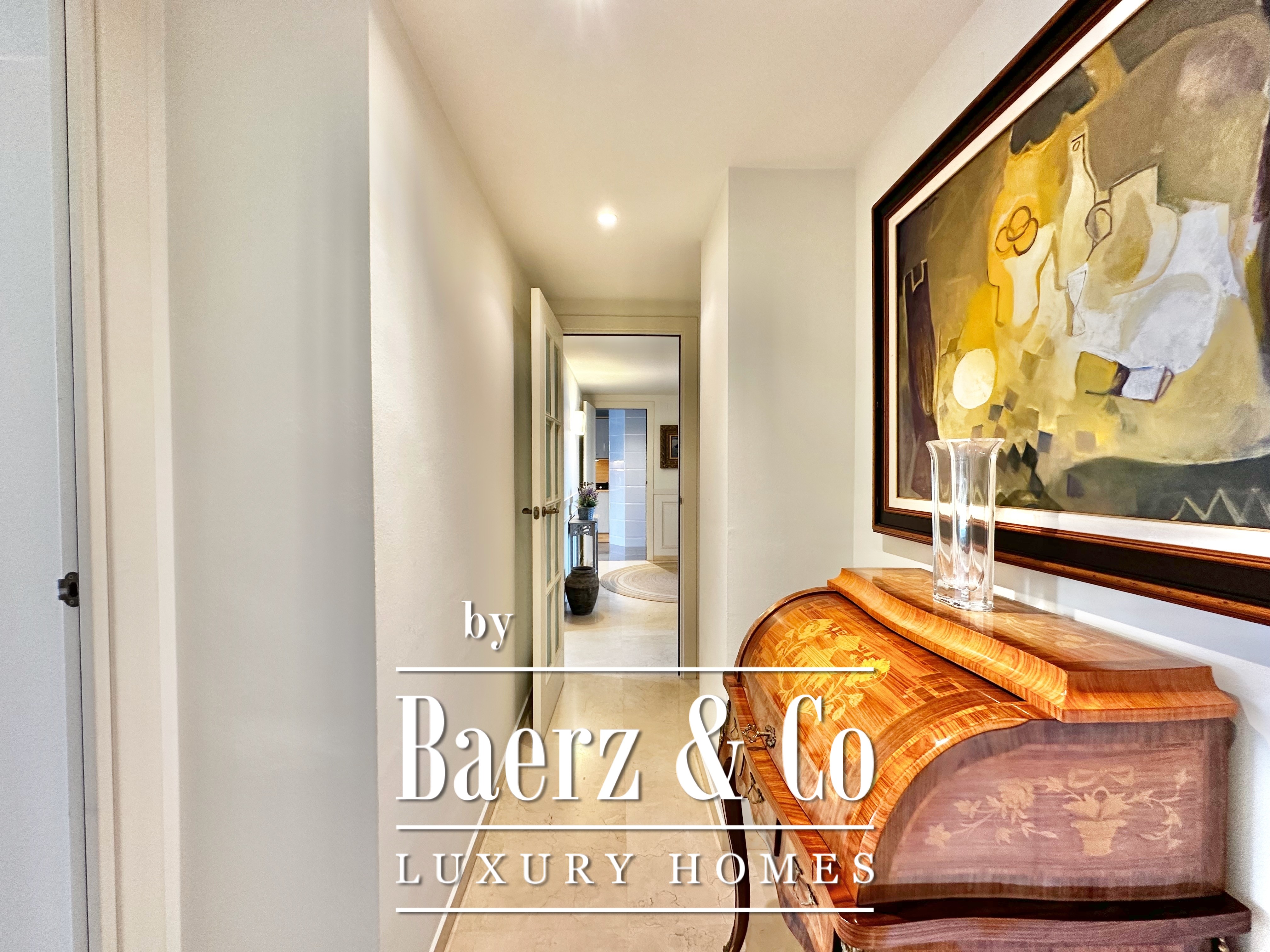 Two expansive terraces, totalling 71 m², trace the apartment’s perimeter, one overlooking the serene communal gardens and the other set directly above the shoreline for unobstructed views. The kitchen and dining space blend functionality and openness, extending onto a terrace framed by greenery. The property has been recently updated and includes two parking spaces and a 14 m² storage unit.