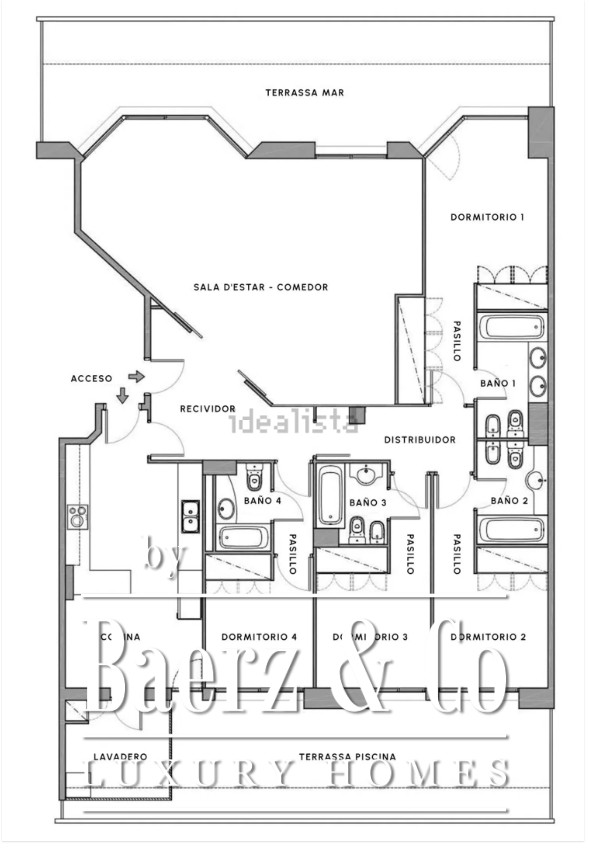 This seafront apartment Sitges stands in the coveted enclave of Terramar, opening directly onto the Mediterranean. Comfort and understated elegance define its 216 m² of carefully considered living space, where every room gives onto the outdoors. Four double bedrooms, each with direct terrace access and ensuite bathrooms, create a spatial rhythm of privacy and connection to the sea. The principal suite invites you to gaze over the water from bed, while the main living area lets light and horizon become part of daily life.