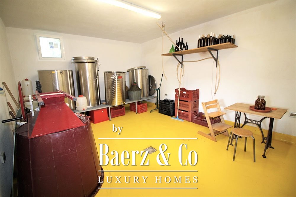 Besides that there is a wood storage, a with wine ranks covered pergola, a lot of fruit trees, a perfectly maintained olive grove and a vineyard of 1000 m².