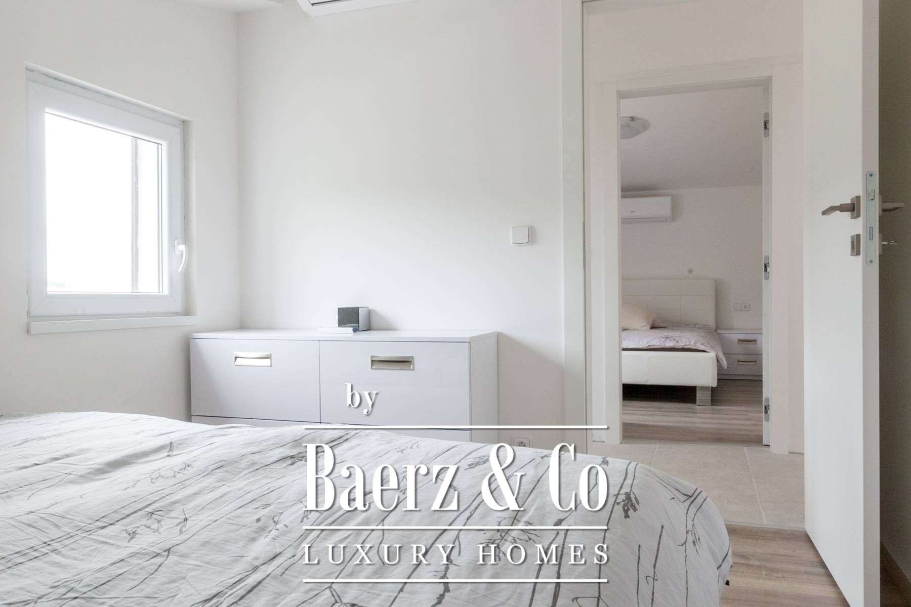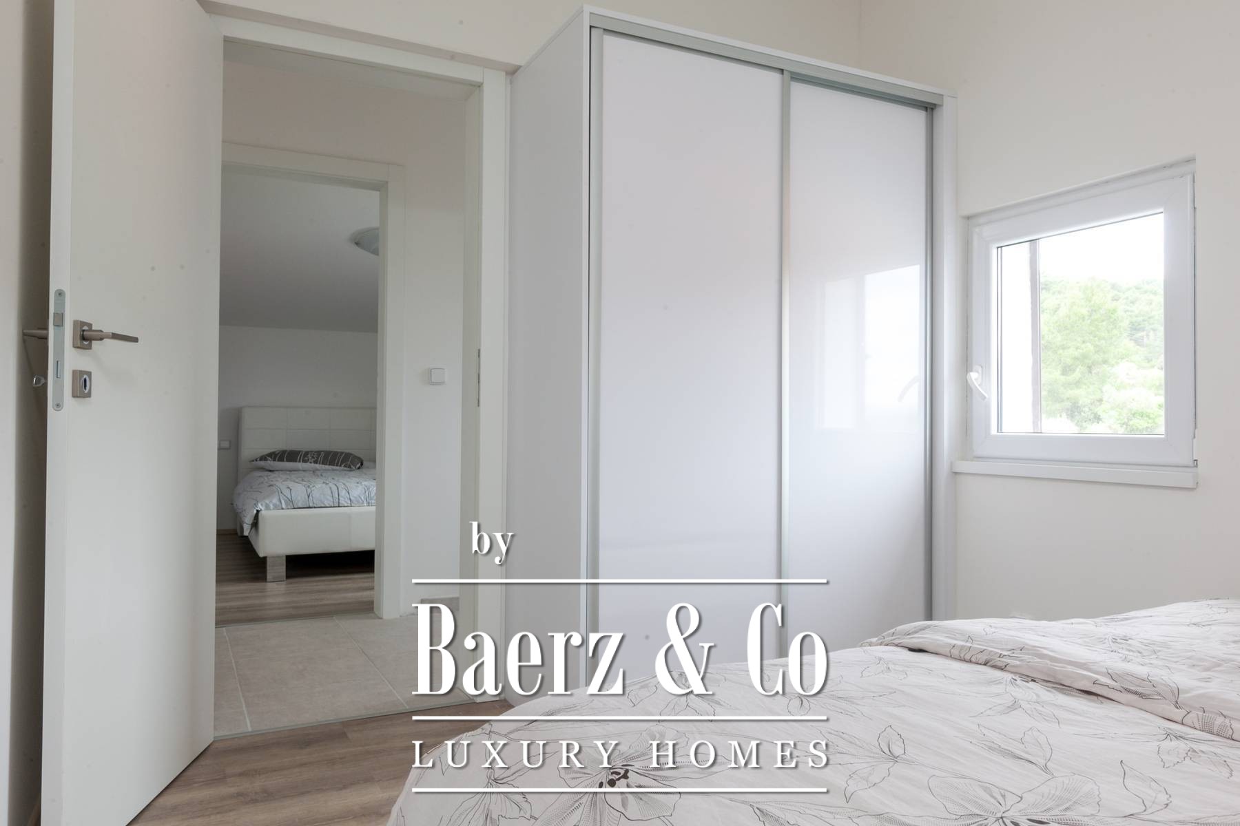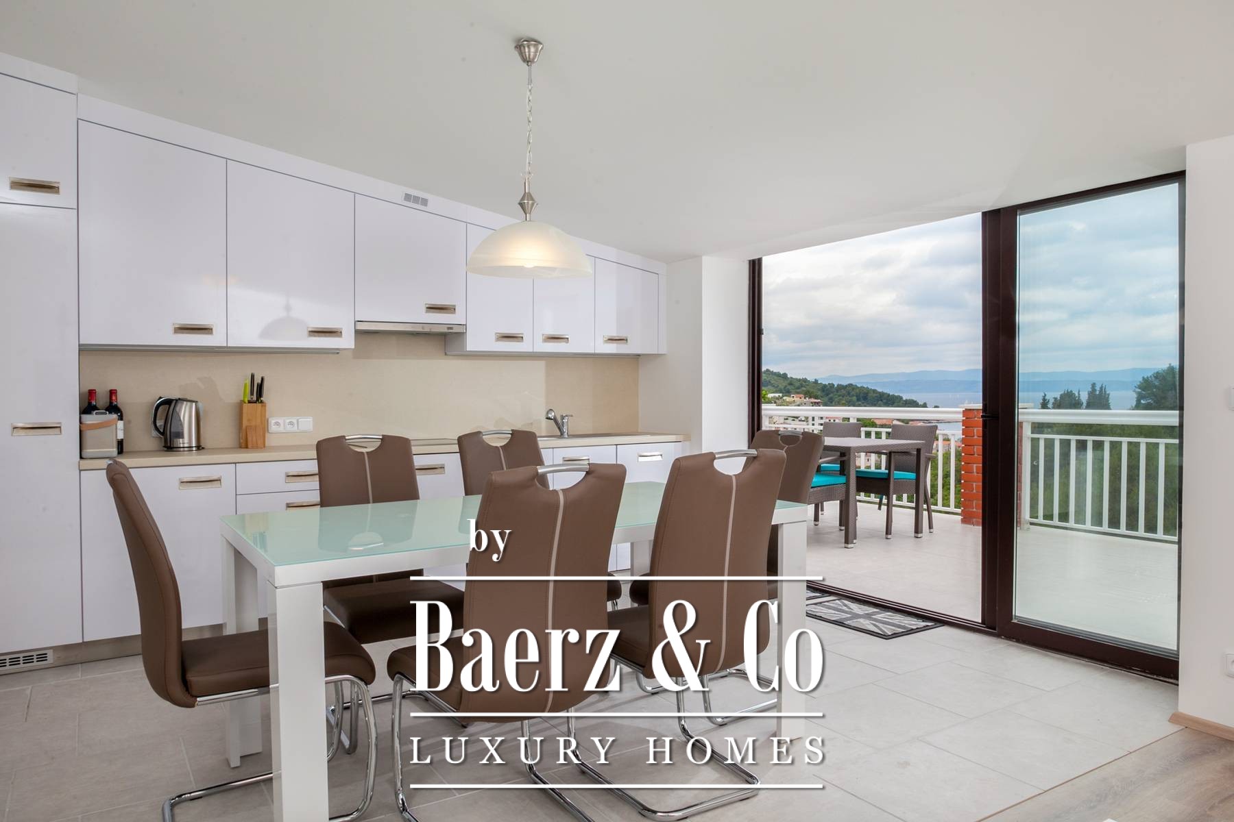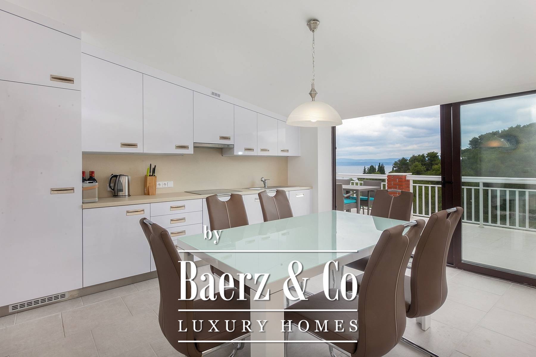 Stone villa built in Mediterranean style, oriented towards the sea, located on a plot of land of 3123 m2. It consists of 5 fully equipped apartments, two each on the first and second floors, and one on the third. Each apartment has a terrace of 40 m2 with a barbecue. On the ground floor of the building there is a garage with three parking spaces, and an outdoor parking lot with 10 parking spaces.