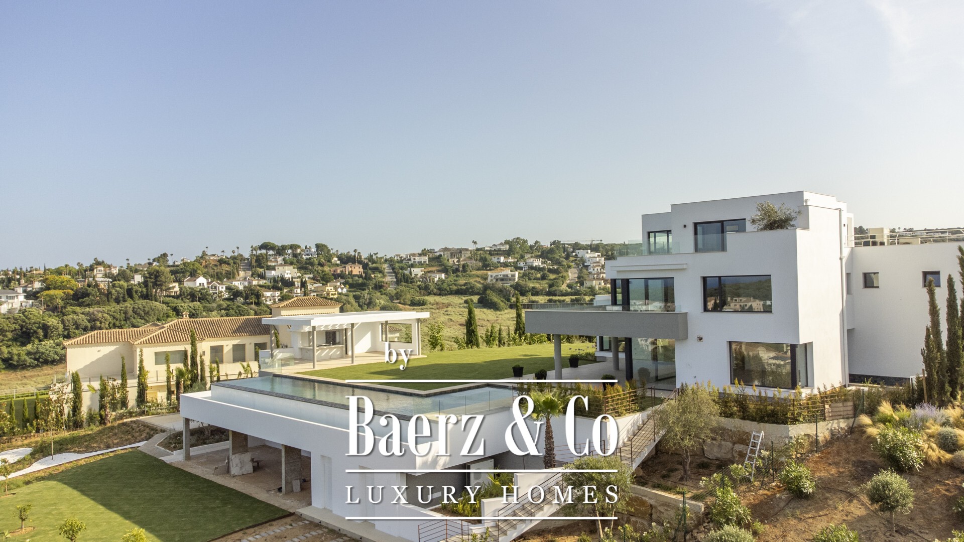 Additional highlights of this property include a separate two-bedroom apartment beneath the swimming pool, perfect for guests or staff, and multiple private terraces accessible from the bedrooms, offering magnificent views. The villa is scheduled for completion in spring 2025, providing an excellent opportunity to own a state-of-the-art residence in one of Sotogrande's most sought-after areas. Bullet Point Summary: •Modern 8-bedroom, 9-bathroom villa under construction •Located near Sotogrande International School in Sotogrande Alto •Set on a 3,765 m² plot with panoramic views •Energy-efficient design with indoor air treatment and underfloor heating •Spacious living areas, fully equipped kitchen, and family room •20-meter heated infinity swimming pool and landscaped garden •Separate two-bedroom apartment for guests or staff •Completion expected in spring 2025