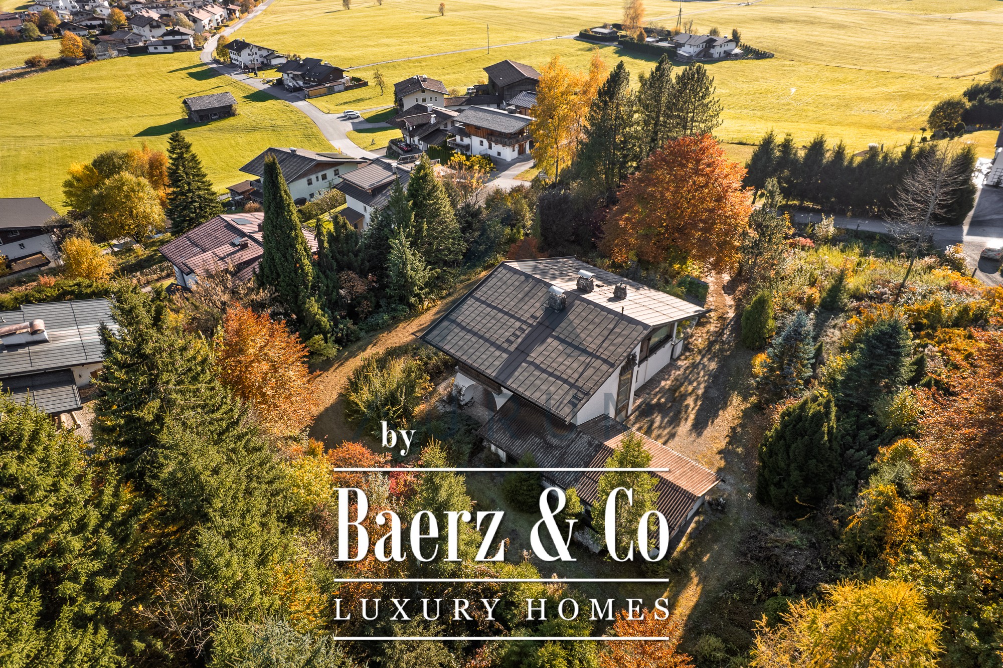Nestled in the impressive natural surroundings of the Niederkaiser Mountains, surrounded by mature trees, near an idyllic pond landscape, and with views of the Kitzbüheler Horn and the surrounding mountains, this property is in a prime location in St. Johann in Tirol. It is a very sunny, gently sloping cul-de-sac, in an idyllic forest setting with breathtaking panoramic views.