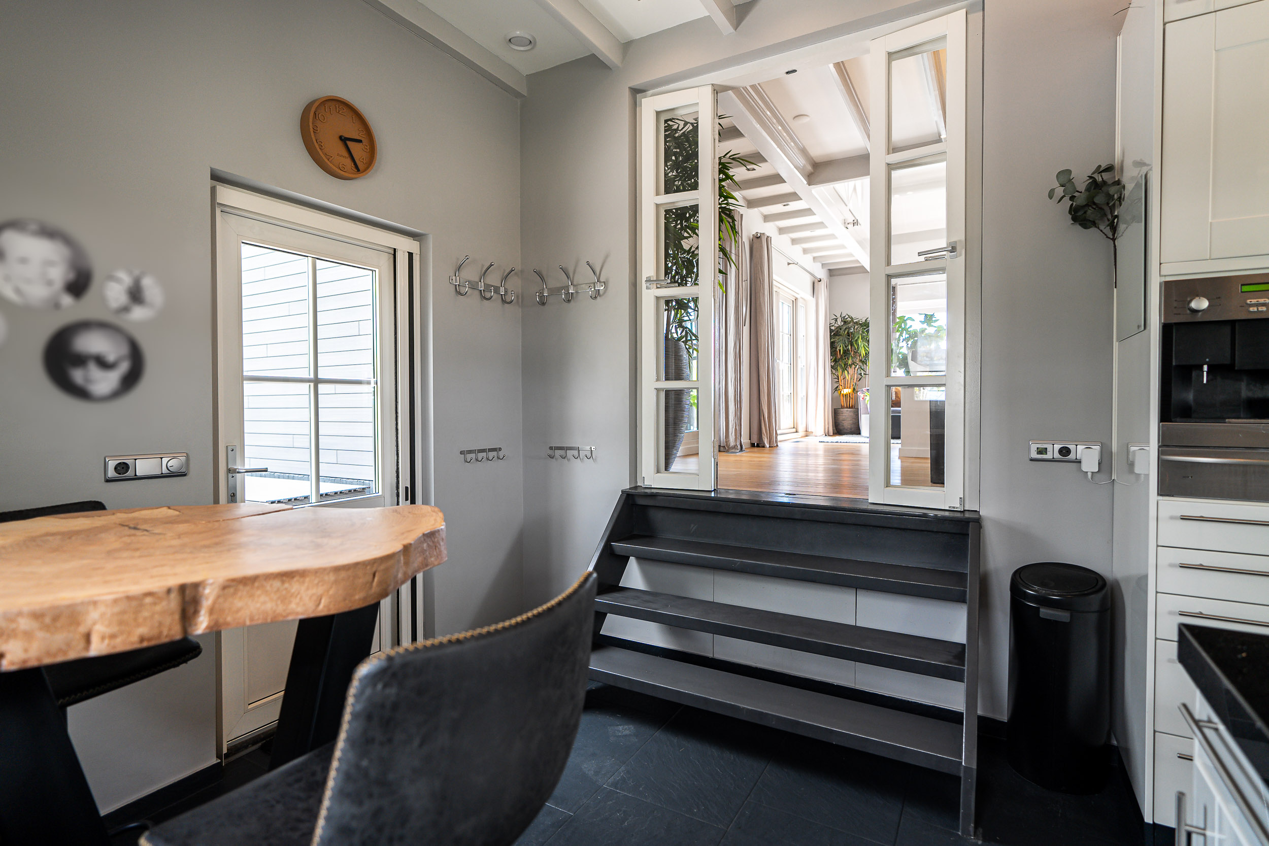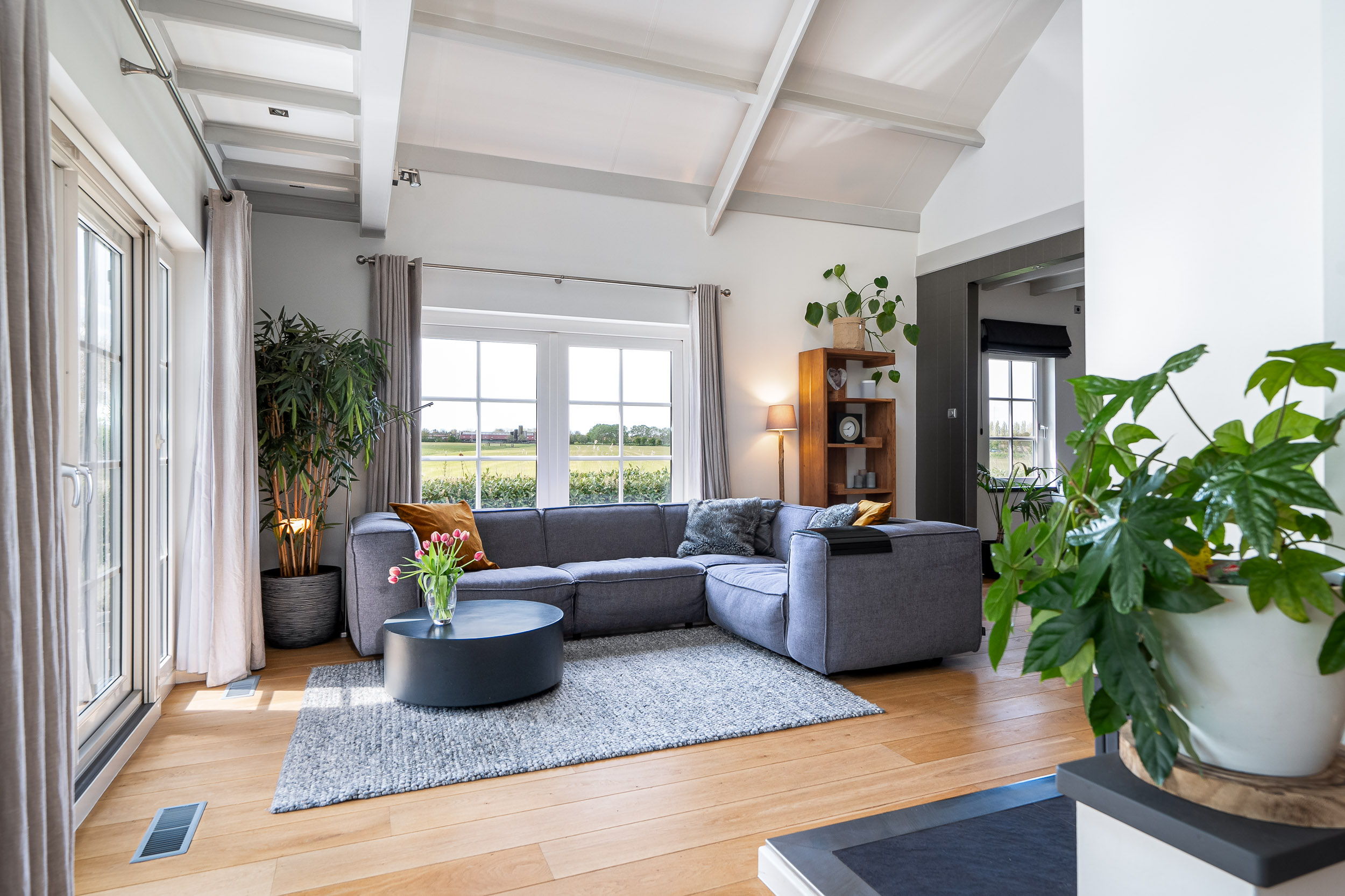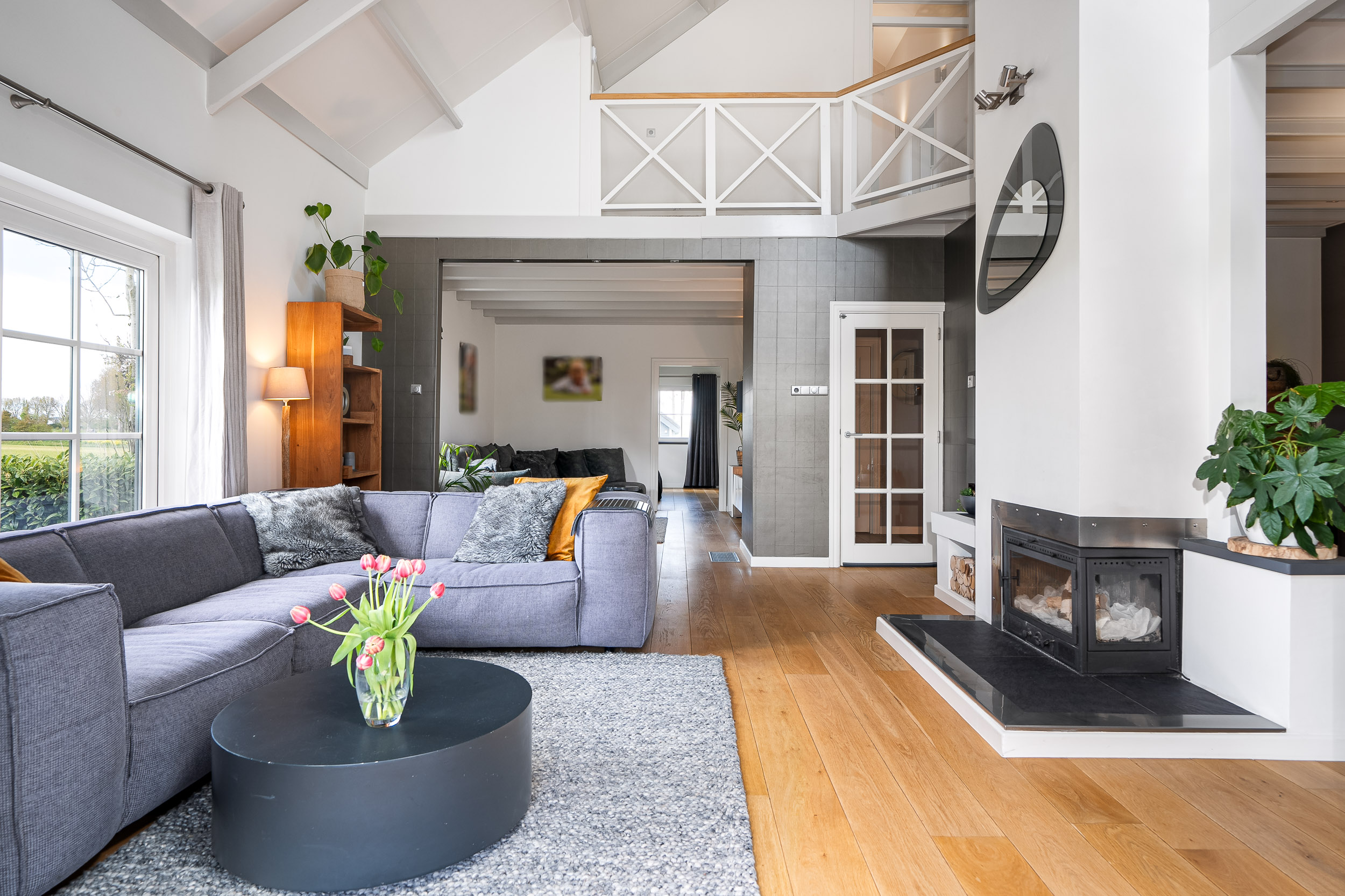 In a prime location near the IJsselmeer, adjacent to a marina with direct access to all waterways in Friesland, this villa was completely renovated in 2004 and is situated on a spacious, fenced plot with full privacy and stunning Frisian panoramas. The tranquility, greenery, water, ever-changing skies, and sense of freedom are the defining features of this home. This well-insulated villa of 245m² is designed for lifelong living, featuring a spacious living area, four bedrooms, two bathrooms, a luxurious kitchen with utility room, and a beautiful veranda with scenic views. The double garage with an upper floor offers an abundance of space and possibilities. The fully insulated home office, studio, or guesthouse with breathtaking views of nature serves as a true source of inspiration. The architecturally designed garden, maintained with a robotic lawn mower, is easy to care for and playfully arranged with various fruit trees, hedges, and reed-lined waterways. The stylishly paved driveway and entrance gate highlight the transition to the lush green garden that remains vibrant year-round.