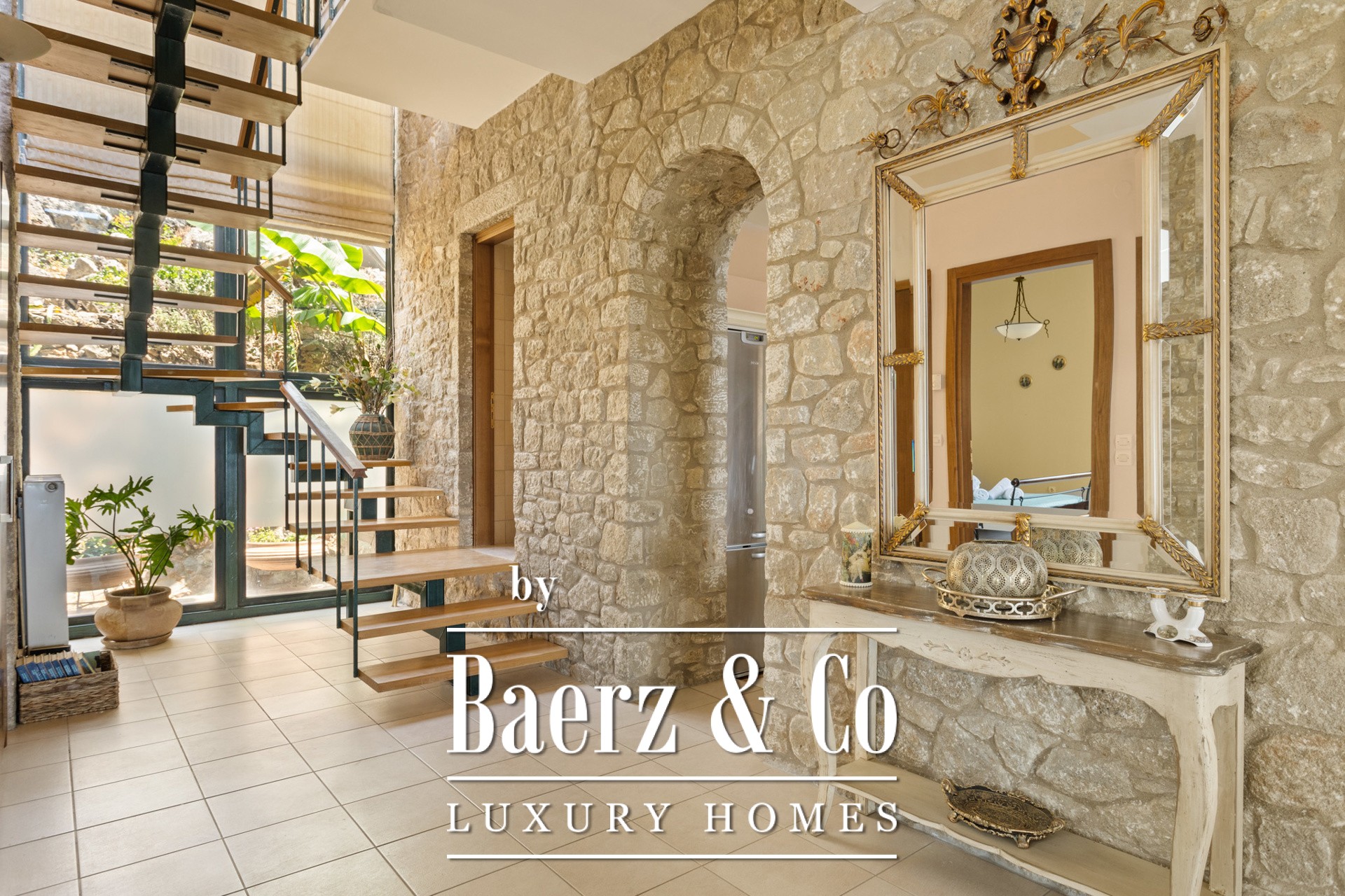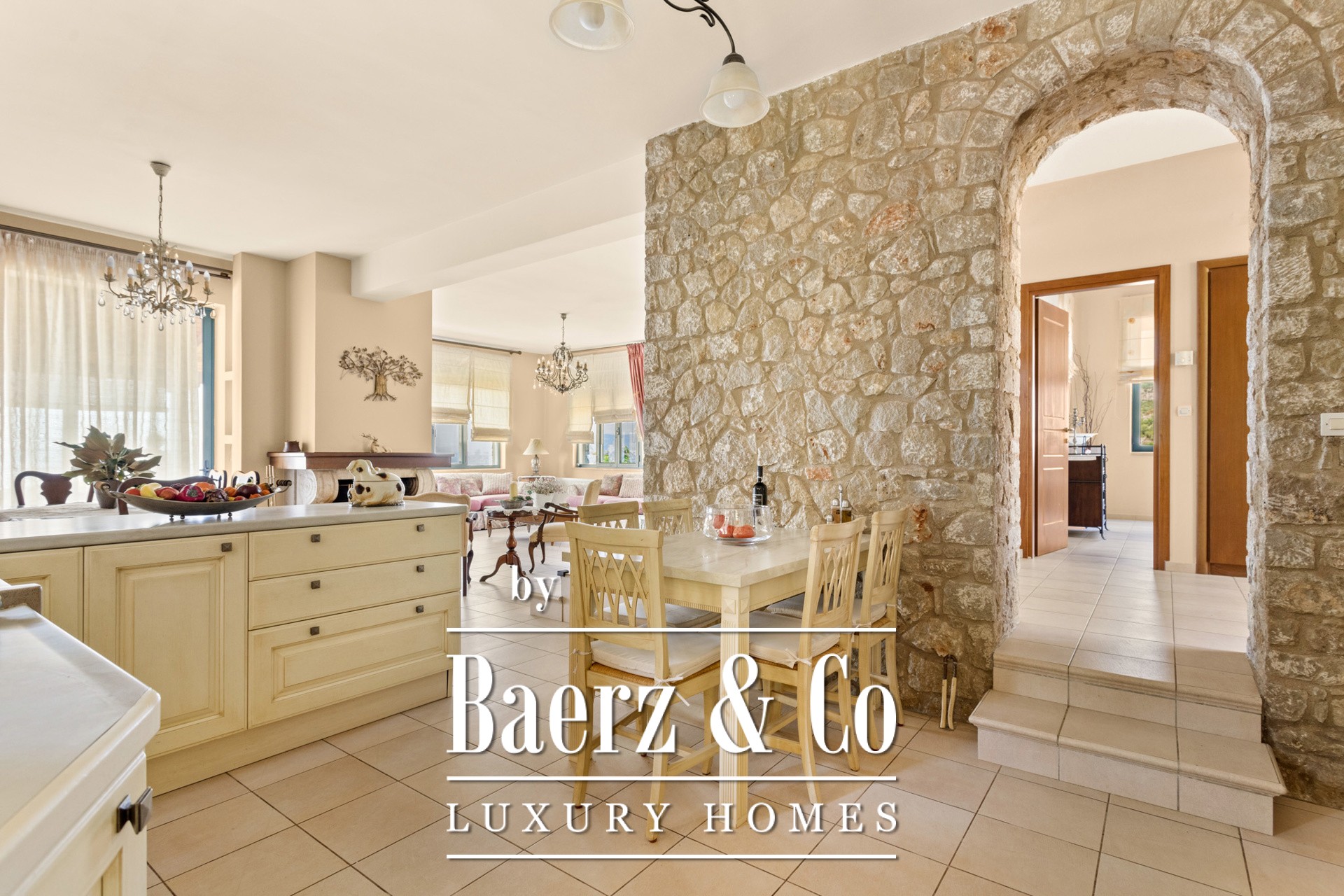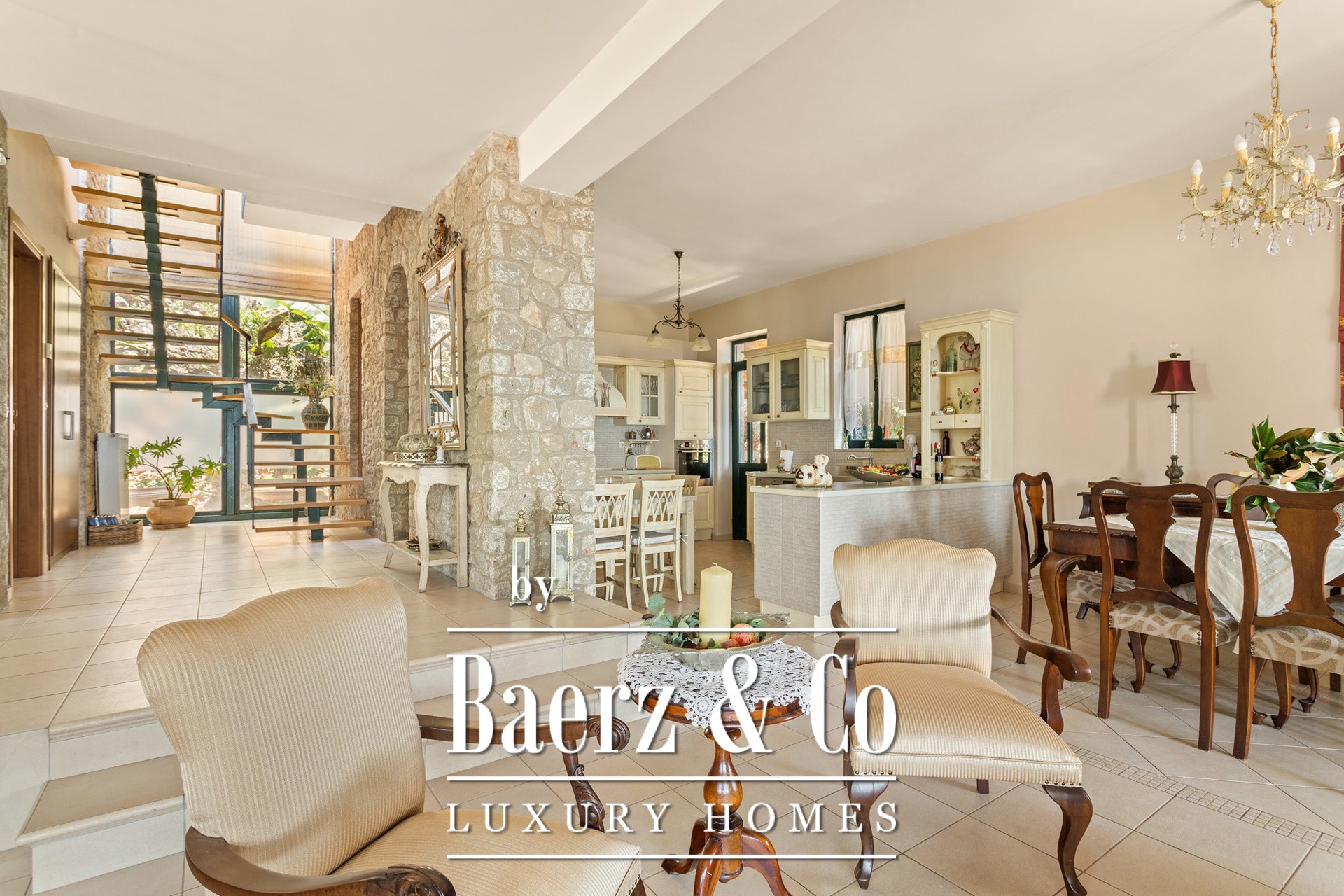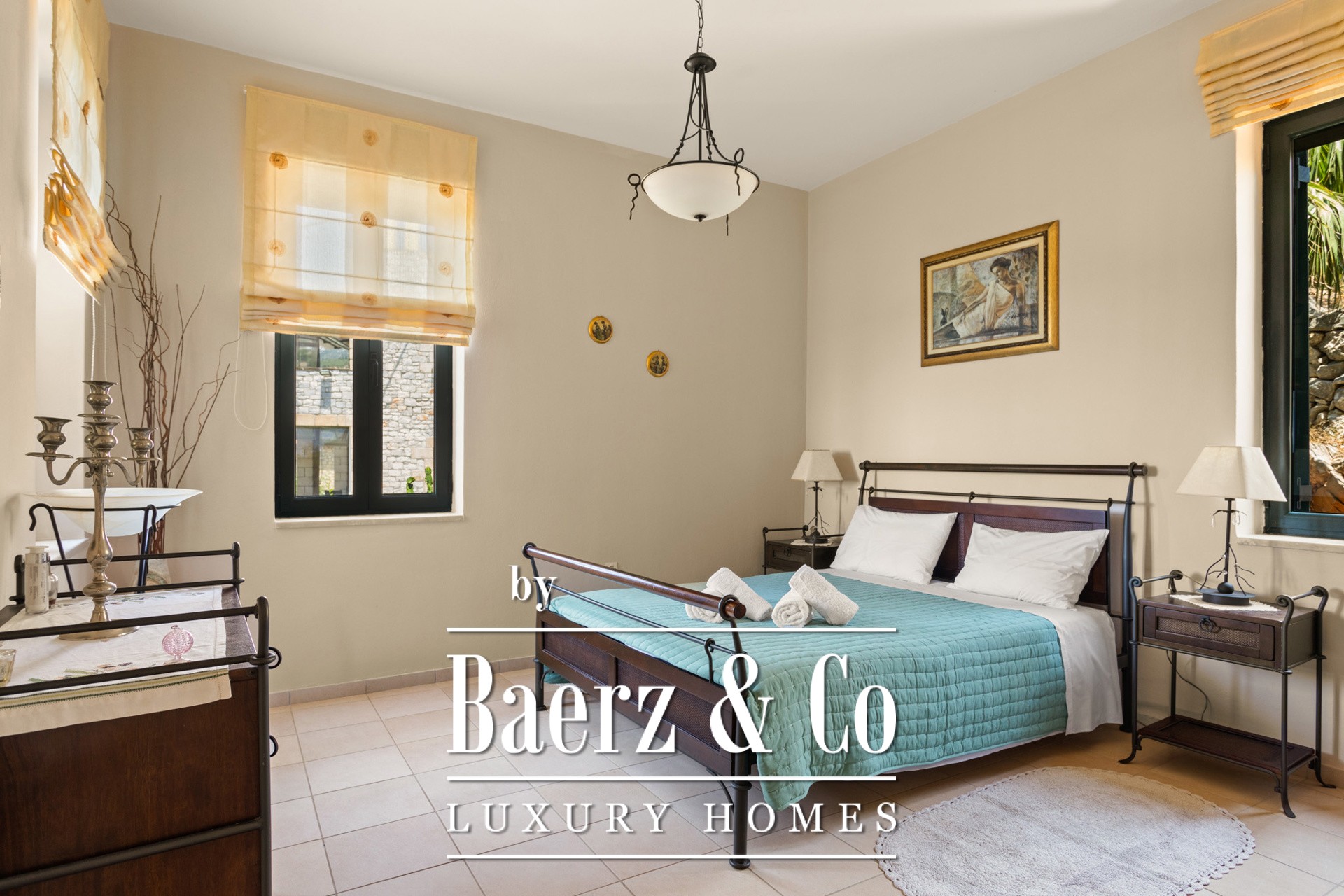 This stunning stone villa, a masterpiece of art and architecture, offers a unique opportunity to acquire a luxurious retreat in the picturesque region of Messinian Mani. Built on a 1,000 sq.m. plot, the 300 sq.m. villa combines the traditional aesthetics of the area with modern comforts, creating an ideal environment for a holiday or permanent residence, as well as for short-term rentals. The villa invites you to enjoy breathtaking sunsets and endless sea views. Its west-facing orientation ensures natural light throughout the day, while the spacious terraces on different levels provide the perfect spot to relax, entertain, or dine while admiring the horizon. Spread over four levels, the villa has been designed with functionality and comfort in mind. The first level includes two independent apartments, ideal for guests or rental purposes. The second level features a spacious living room with a fireplace, a dining area, a kitchen, a bedroom, a bathroom, and two terraces, one of which has a BBQ area and an auxiliary kitchen. The third level consists of two bedrooms, one of which is a master suite