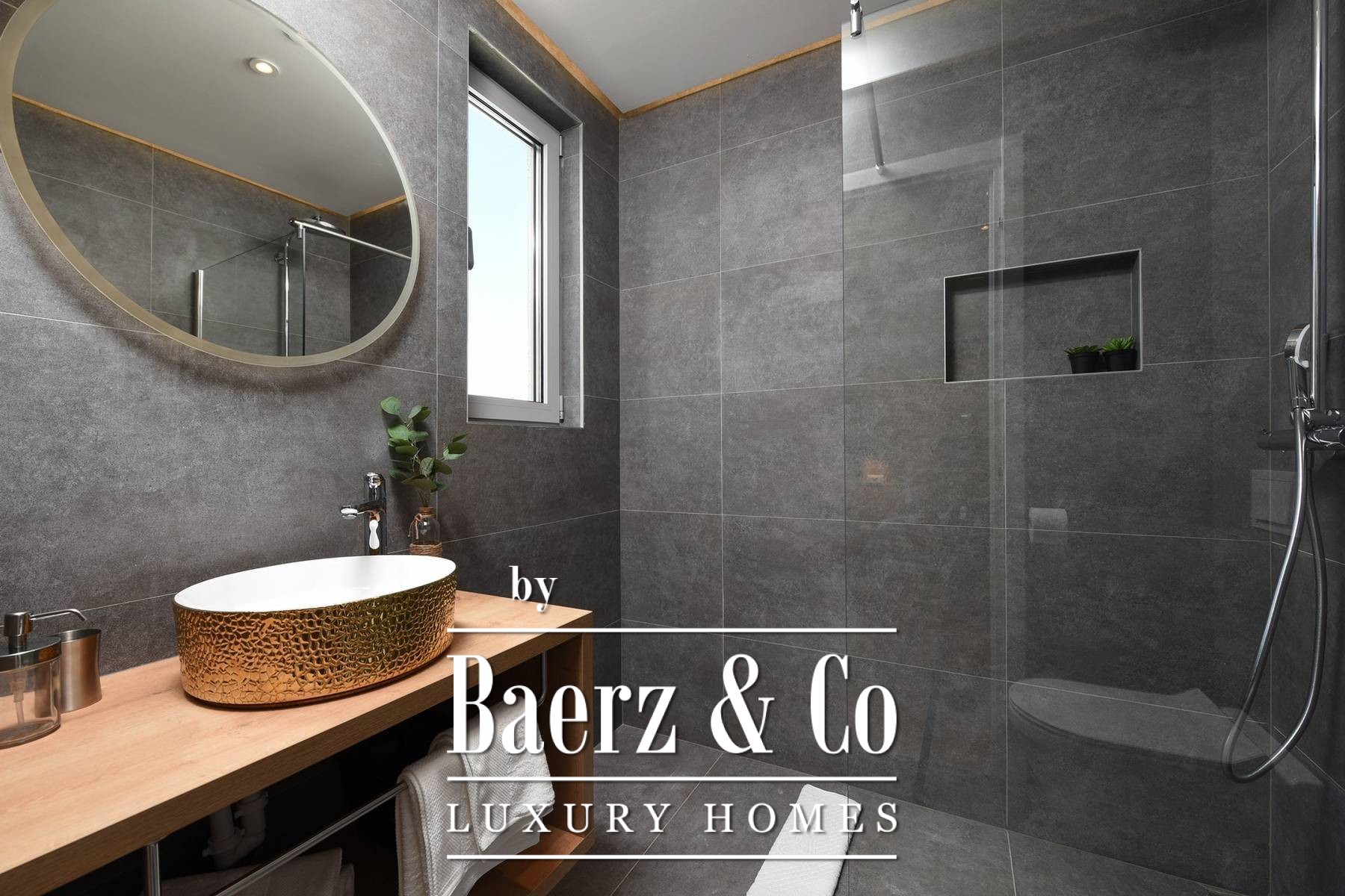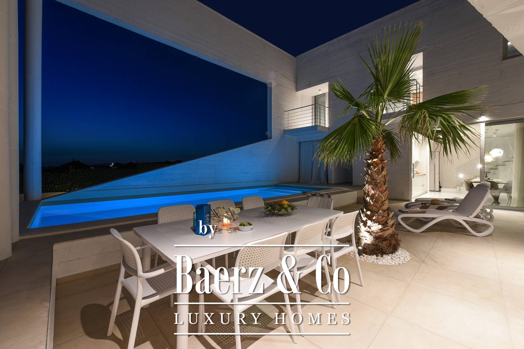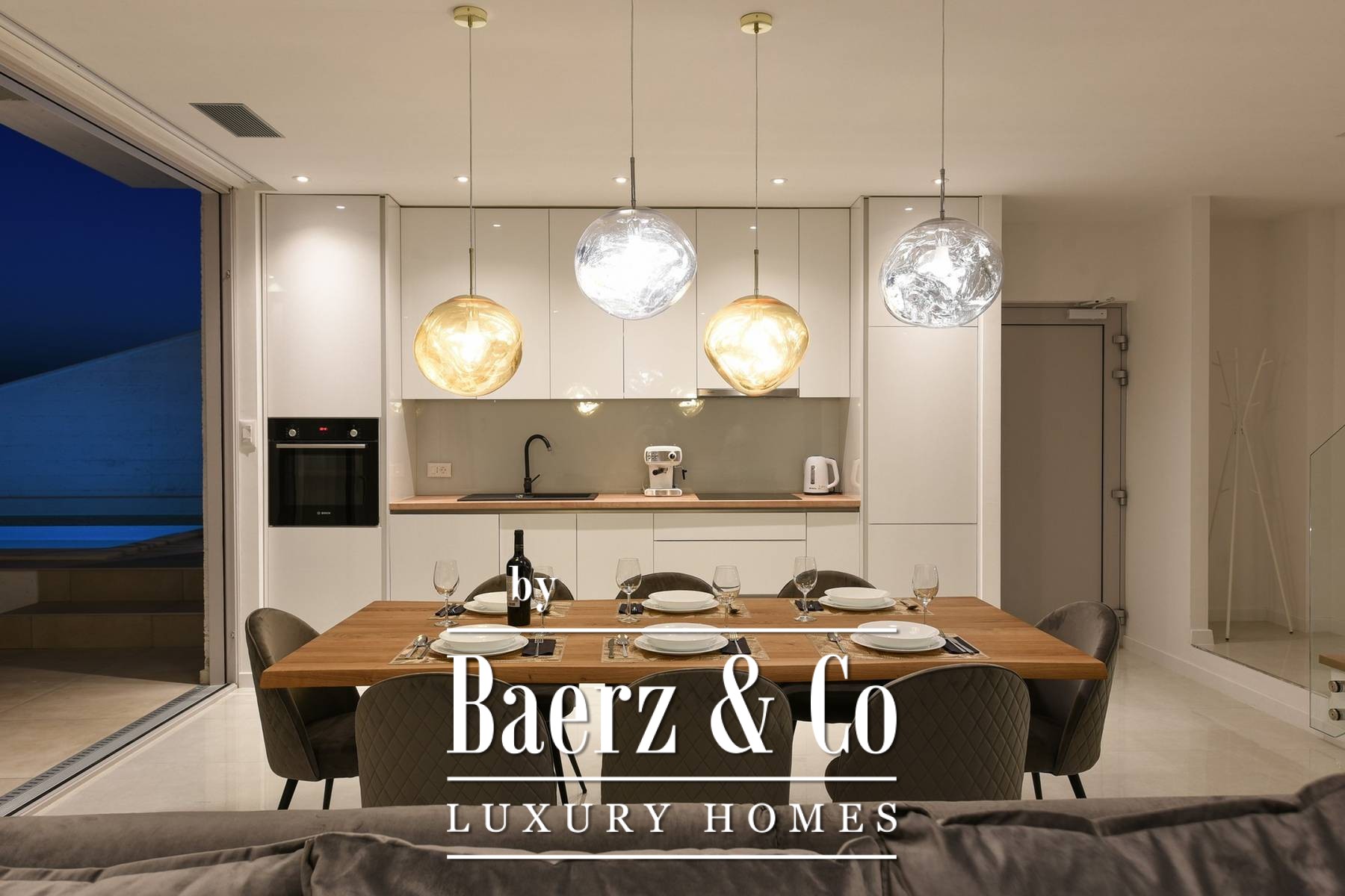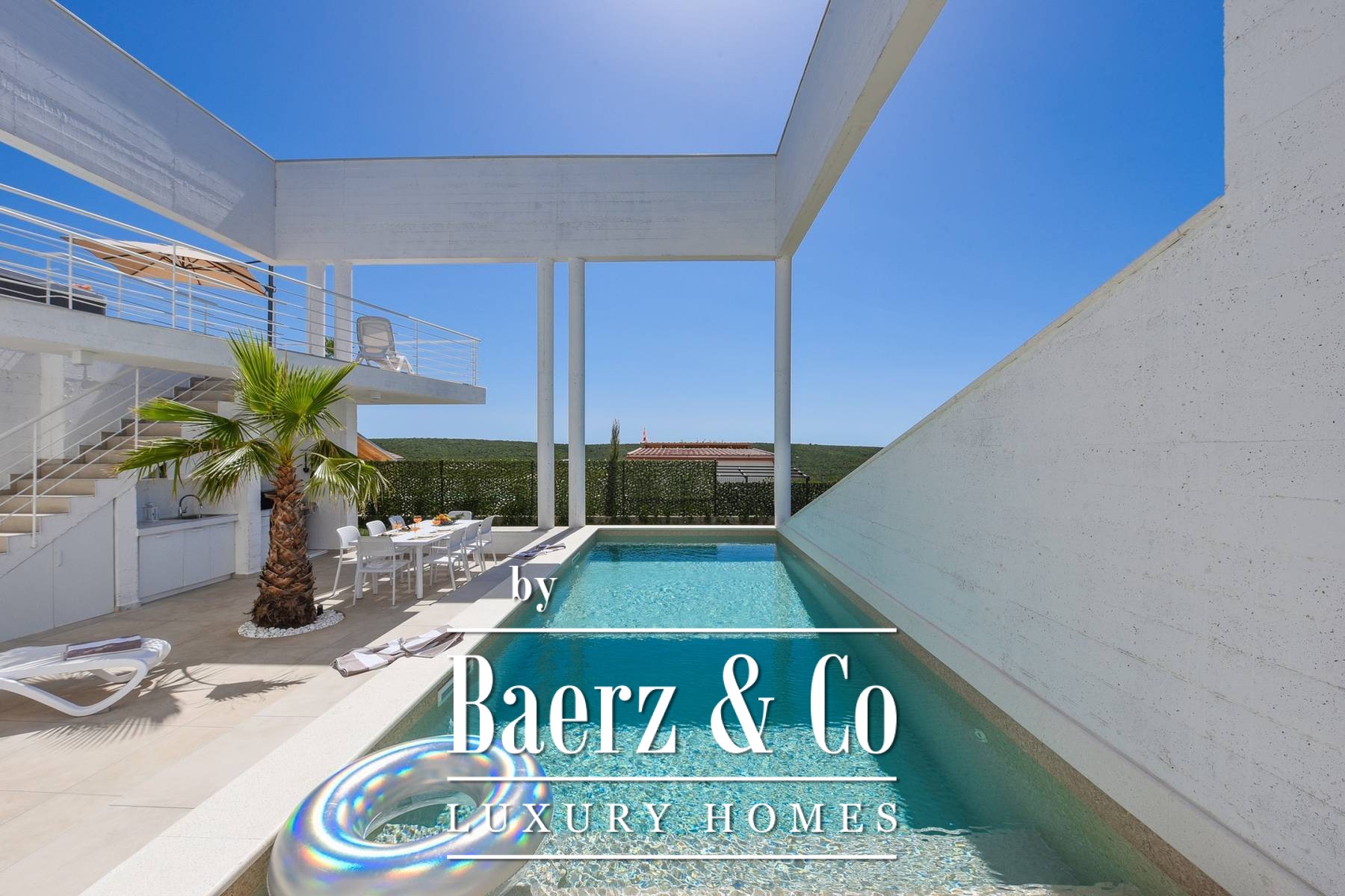 A unique and modern villa with a beautiful view of the sea, is located in a quiet and isolated location in the small place of Debeljak near Zadar. Contemporary architectural style of construction, stylistic simplicity, first-class equipment and a spacious and modern garden with a large swimming pool are the features of this luxurious villa.The villa was built in 2021 and has an area of 200m2, and is located on a plot of 500m2 and is spread over 2 floors, ground floor and 1st floor. The ground floor consists of an open space kitchen with dining room and living room, one bedroom, bathroom, separate toilet. On the 1st floor there are three bedrooms and three bathrooms. Each bedroom has access to the terrace, where there is a jacuzzi and from which there is an unobstructed view of the sea and beautiful sunsets. The modern garden contains a large swimming pool of 32 m2, a summer outdoor kitchen and barbecue and a spacious table,