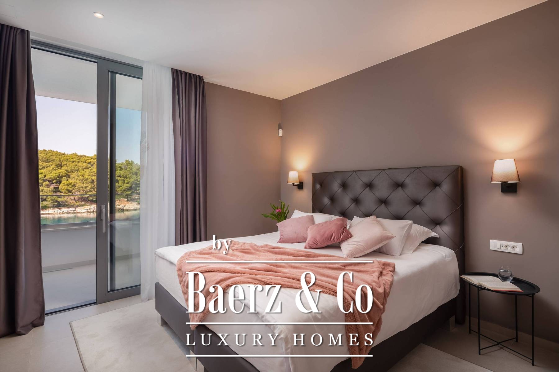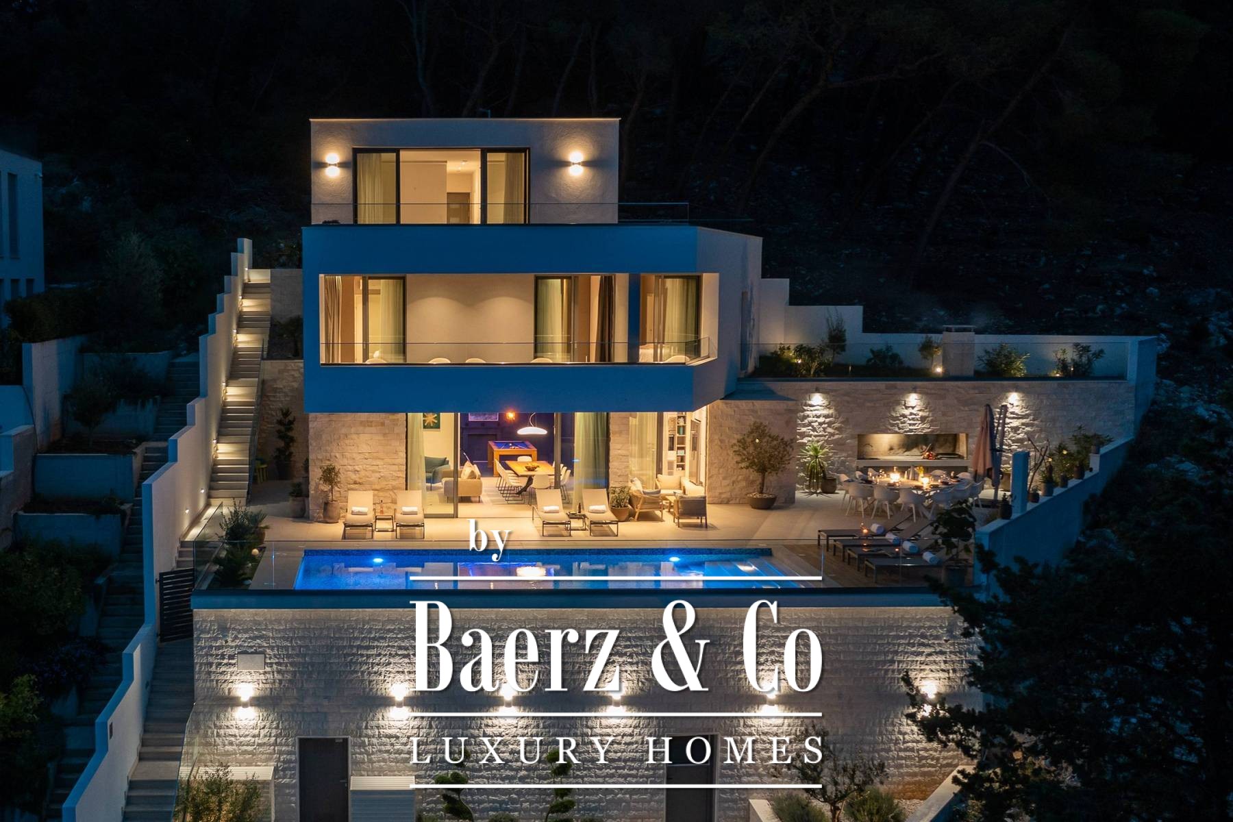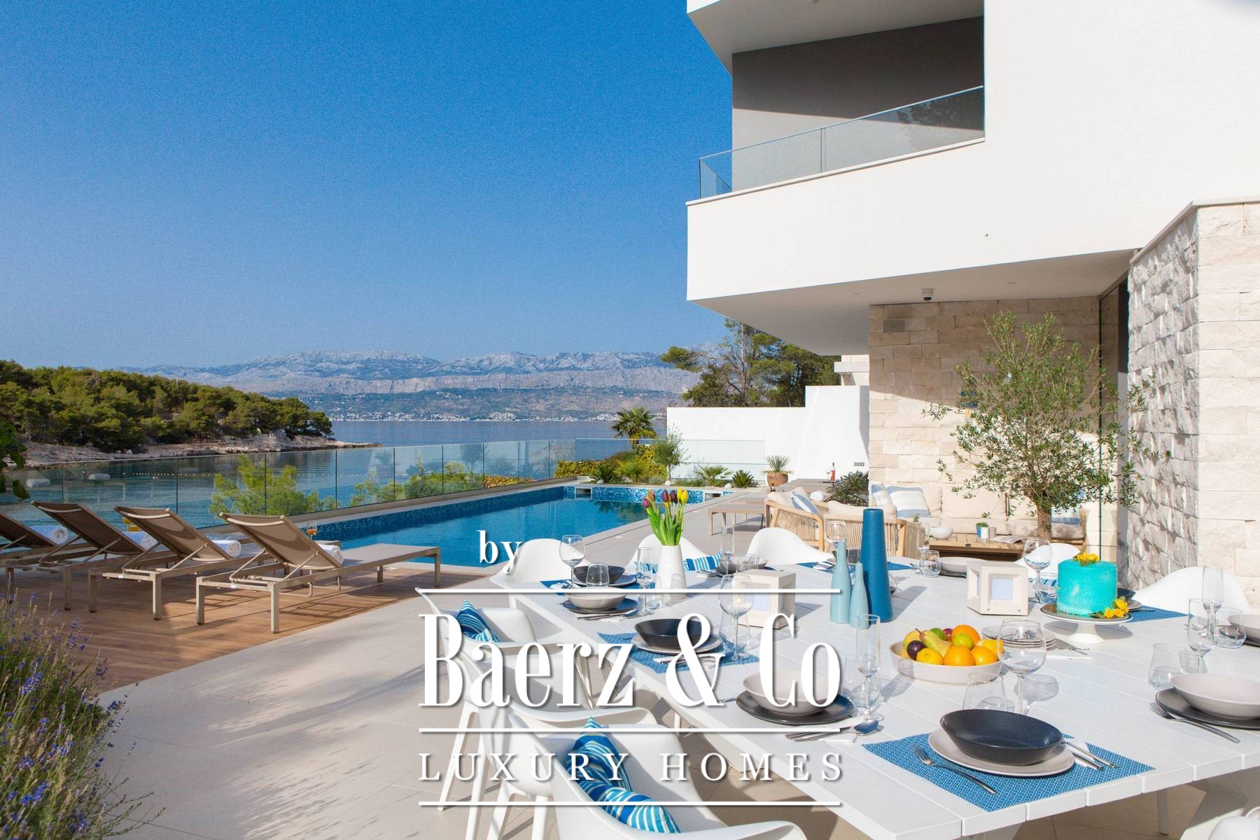 Attractive, modern villa, located in a small charming place on the north side of the island of Brac. Its exclusive location right by the sea makes it exceptional in the real estate market.It spreads over three floors, connected by an internal staircase with 300 m2 of total living space.The ground floor has a kitchen with dining area, spacious living room, billiard room and toilet. Large sliding walls lead to a large terrace with pool, sun deck, outdoor dining area, garden and barbecueOn the first floor there are 4 bedrooms, each with its own bathroom and a beautiful sea view, one of which has access to the garden.On