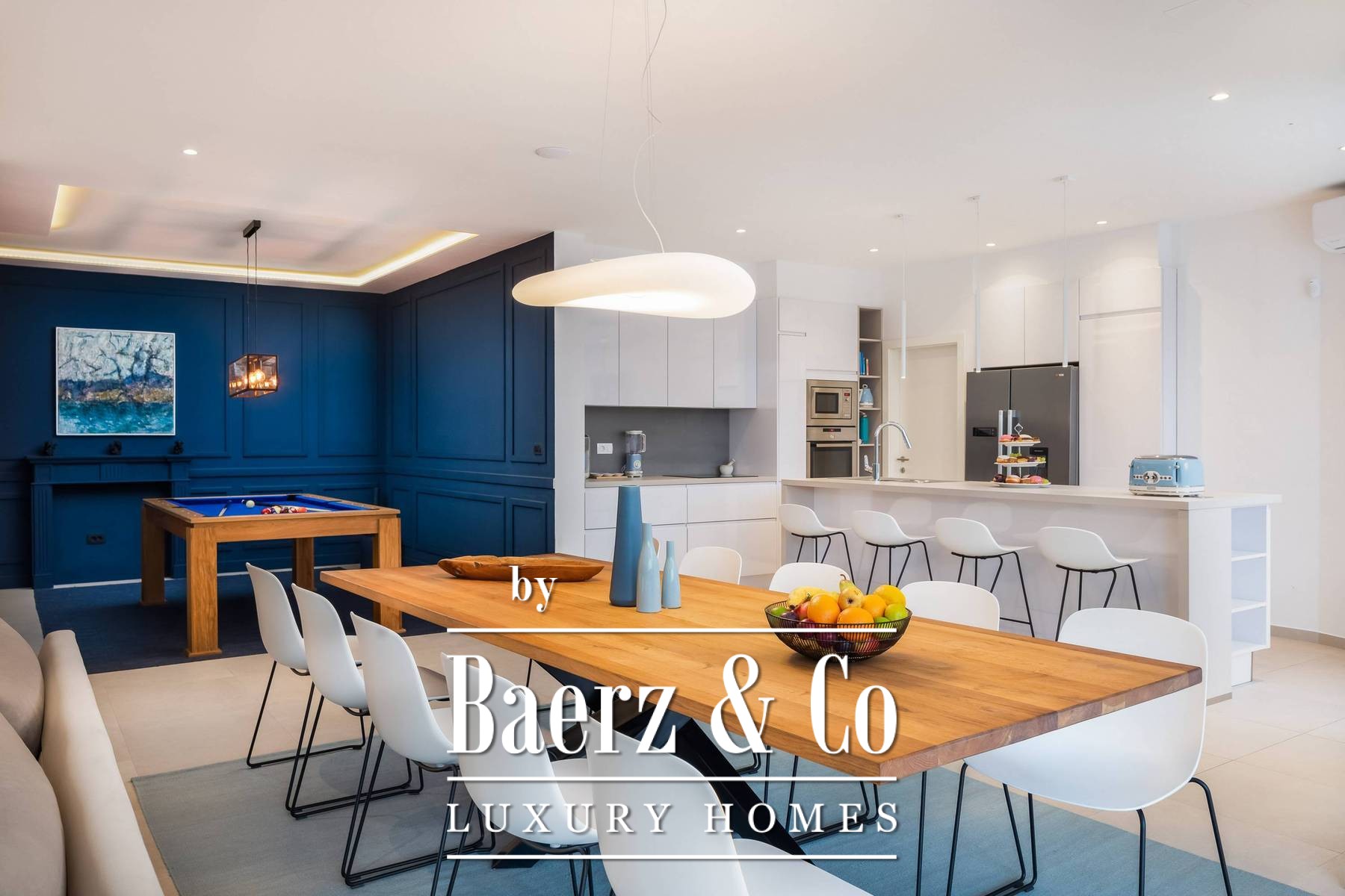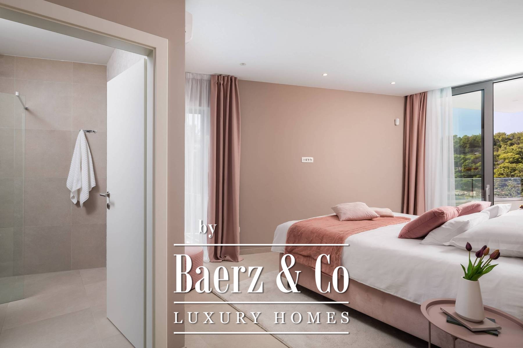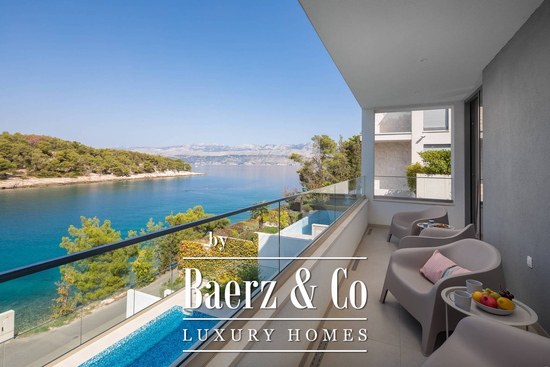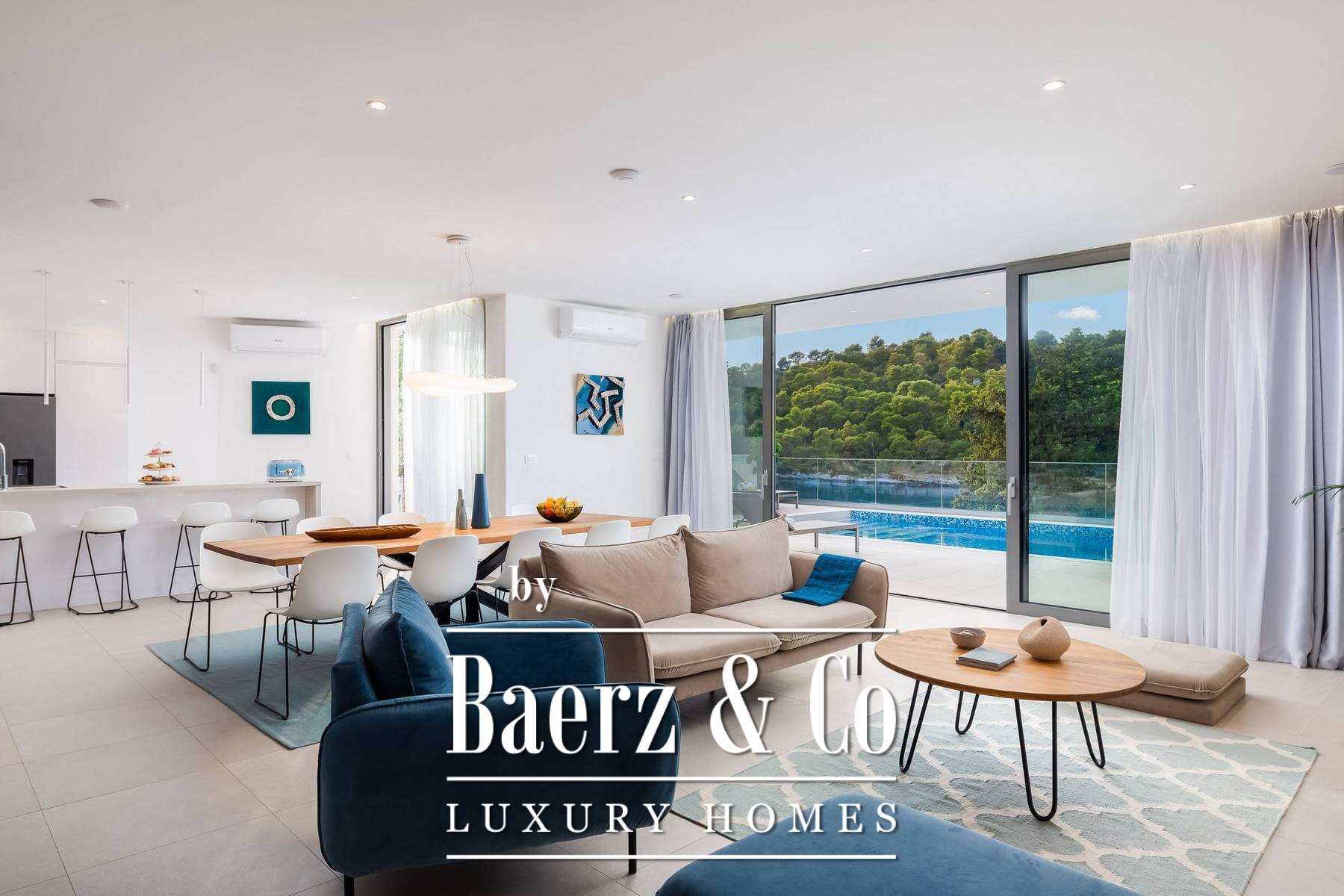 Attractive, modern villa, located in a small charming place on the north side of the island of Brac. Its exclusive location right by the sea makes it exceptional in the real estate market.It spreads over three floors, connected by an internal staircase with 300 m2 of total living space.The ground floor has a kitchen with dining area, spacious living room, billiard room and toilet. Large sliding walls lead to a large terrace with pool, sun deck, outdoor dining area, garden and barbecueOn the first floor there are 4 bedrooms, each with its own bathroom and a beautiful sea view, one of which has access to the garden.On