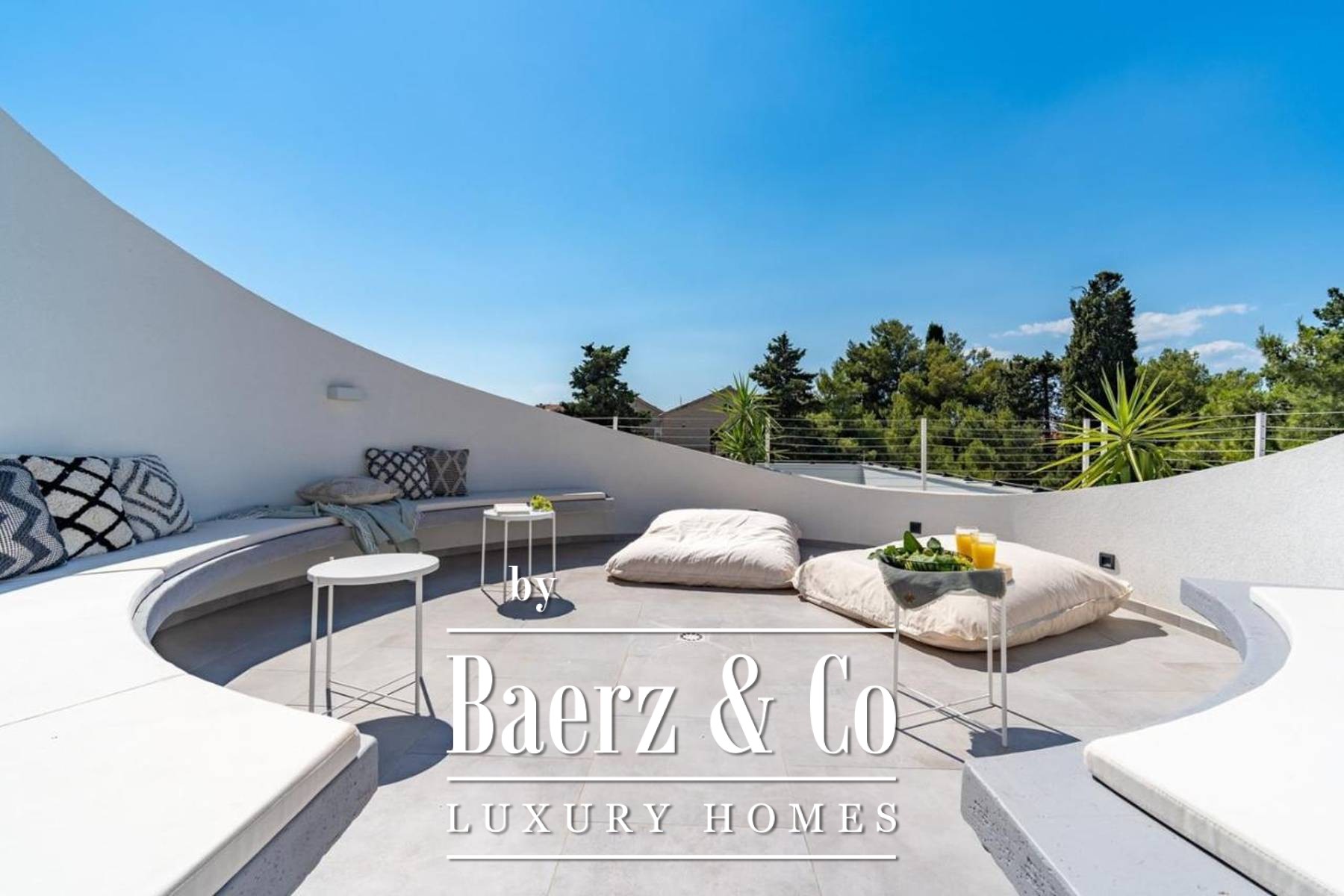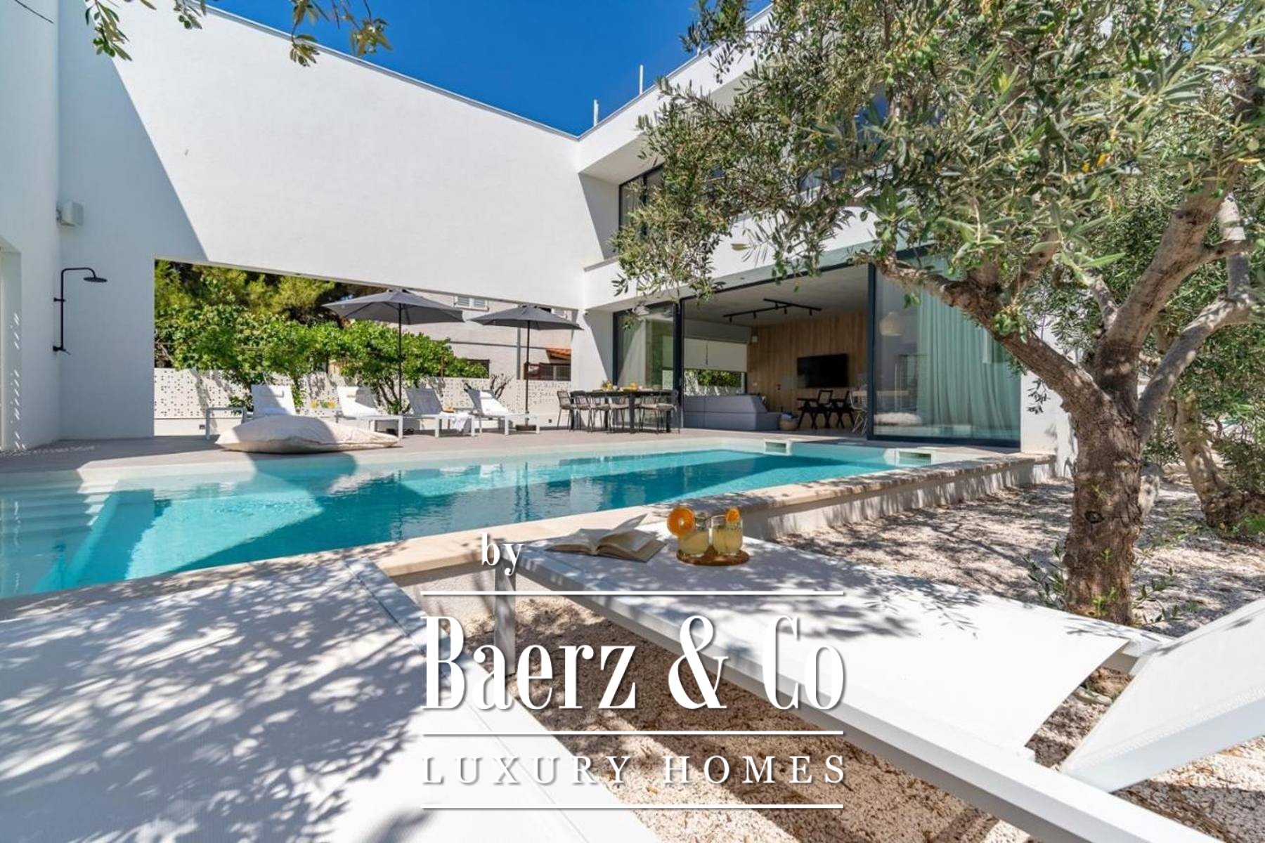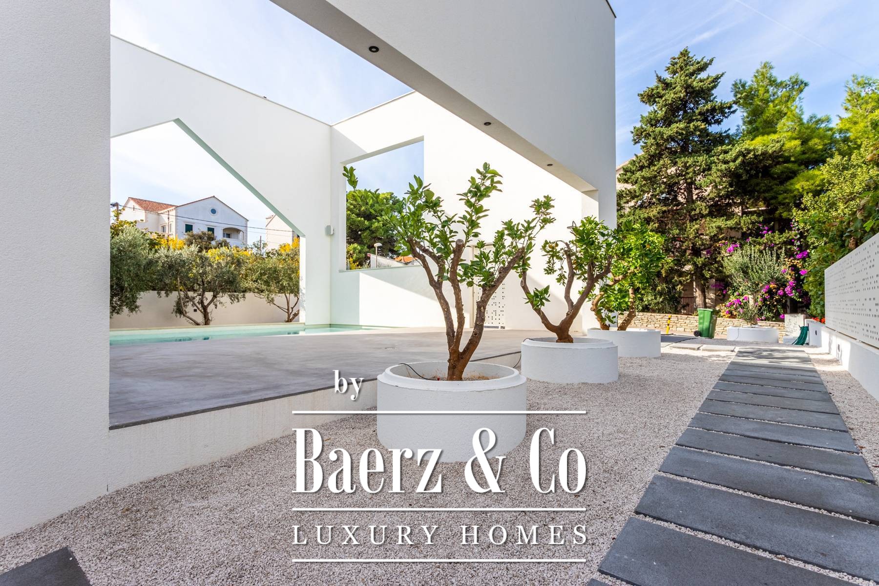 Villa Supetar Brač presents a striking statement of contemporary architecture on the island’s north side, less than 50 metres from the shoreline. This villa in Supetar Brač encompasses 366 m² of gross living space across three levels, set within a private 480 m² plot, introducing a subtle rhythm of luxury living to the island’s urban heart.