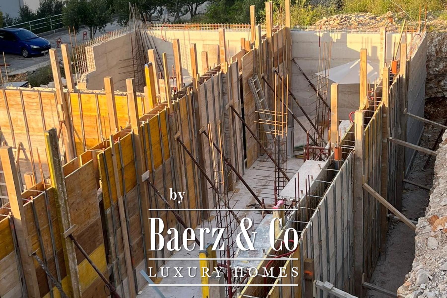 For sale is a multi-residential villa in a rough-construction (roh-bau) stage, located in the third row from the sea in Sutivan on the island of Brač. The total living area is approximately 360 m², and the property sits on a 494 m² plot.The property is designed as two residential units, each with approximately 180 m². One is oriented to the northeast, and the other to the northwest. Each unit has a ground floor with a garage, laundry room, and an additional room that can be customized according to the future owner’s needs. The first floor features a kitchen with dining and living areas, a terrace, one bedroom, and a bathroom. On the second floor, there are three bedrooms, each with its own bathroom and a spacious balcony.In total, the house has eight bedrooms and eight bathrooms,