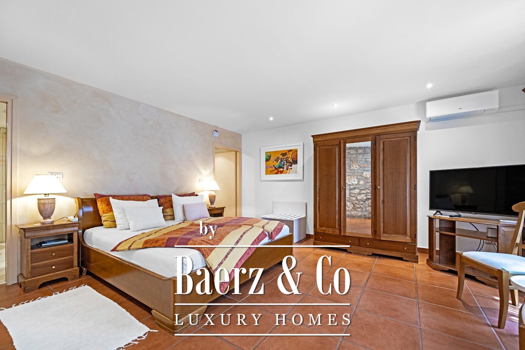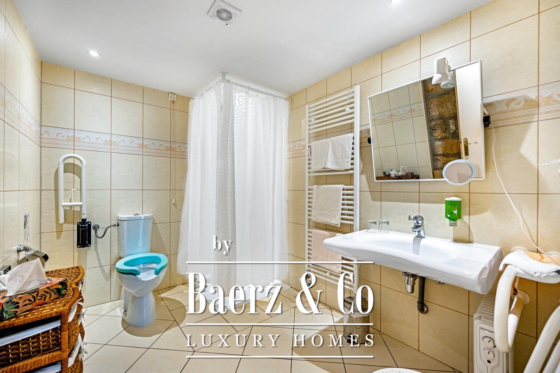The primary house quietly hosts four distinct residential units. A spacious two-floor apartment welcomes with an entrance hall, kitchen, living room, and an ensuite bedroom opening directly to the garden and terrace, complemented by two upper-level bedrooms with private bathrooms. Two ground-floor apartments are fully adapted for people with disabilities, featuring accessible layouts, covered entries, and direct garden connection. The remaining residence offers multi-room living and a generous 200 m² terrace.