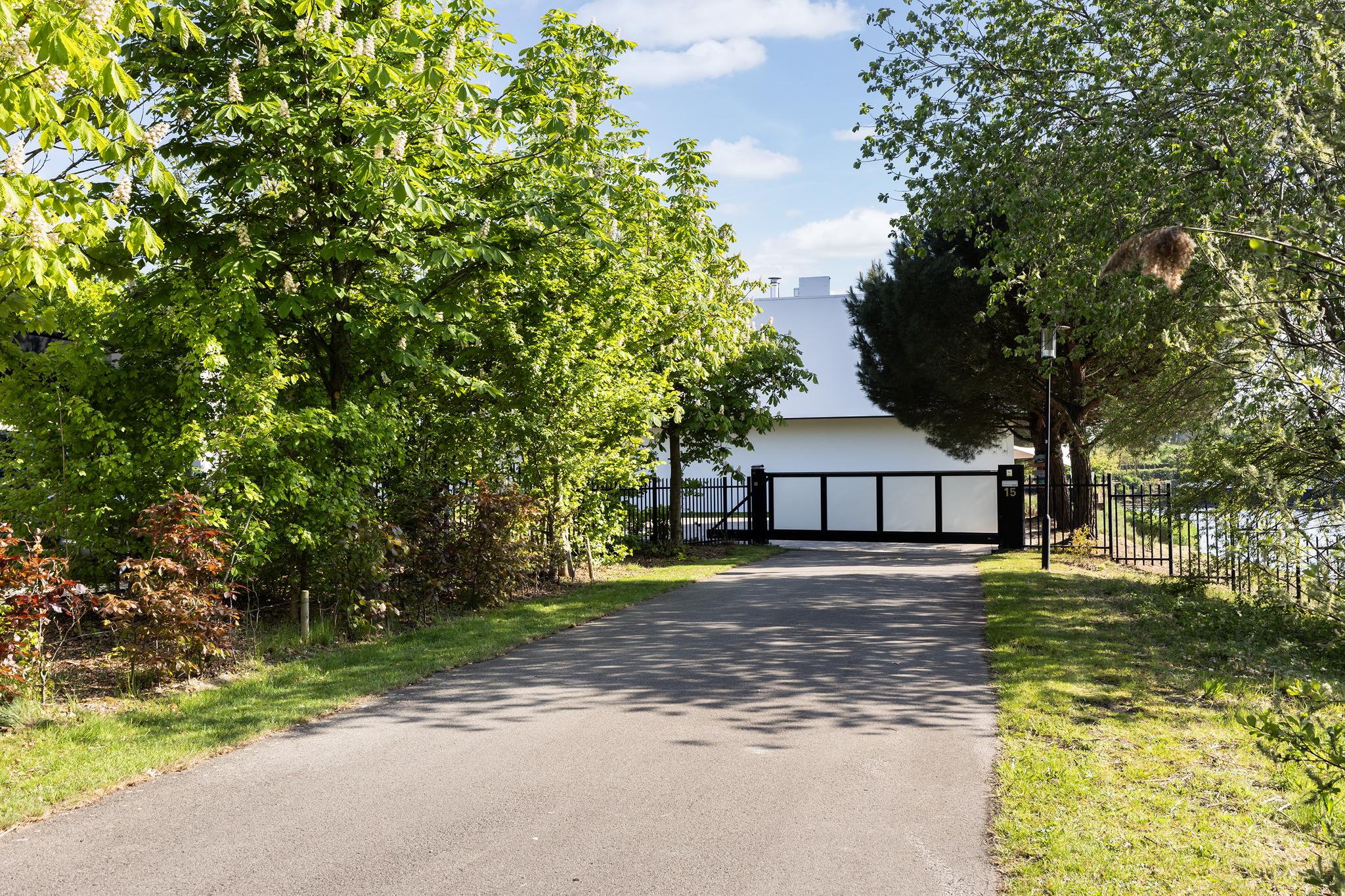 The garden is a true extension of the home’s interior, featuring mature trees, a raised timber deck overlooking the water, a variety of inviting seating areas and, centrally positioned, a heated L-shaped swimming pool built in 2021. A luxurious pool house with complete wellness facilities completes the outdoor offering.