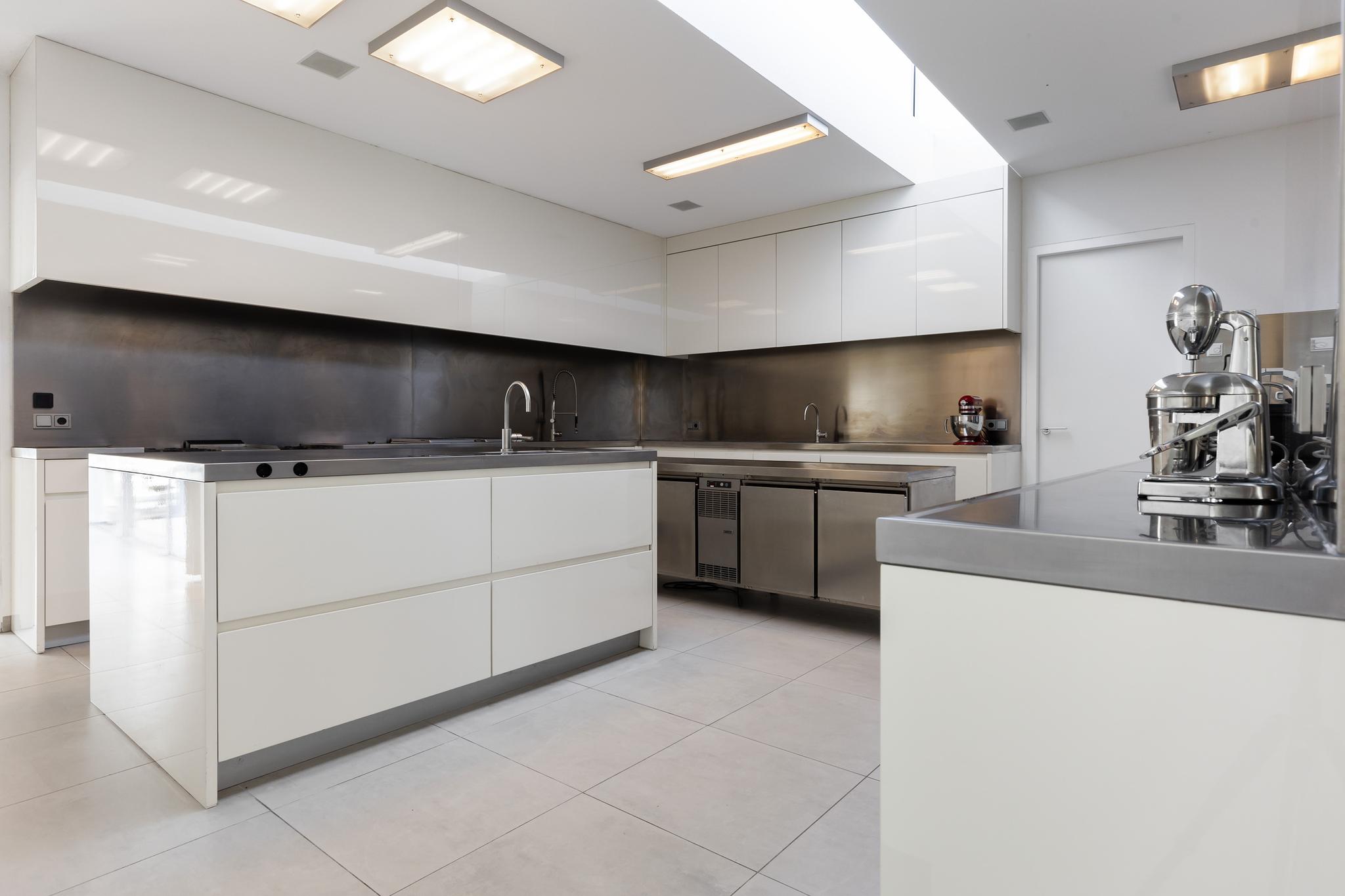 A second utility area adjoins the kitchen, containing a professional cold store, large wine chiller and internal access to the secondary kitchen. This full-spec catering kitchen is ideal for hosting larger groups or private dining and includes stainless-steel worktops, top-tier appliances such as a Boretti range, built-in washer/dryer, robust extractor and ample refrigeration—offering facilities rarely found in a private home.