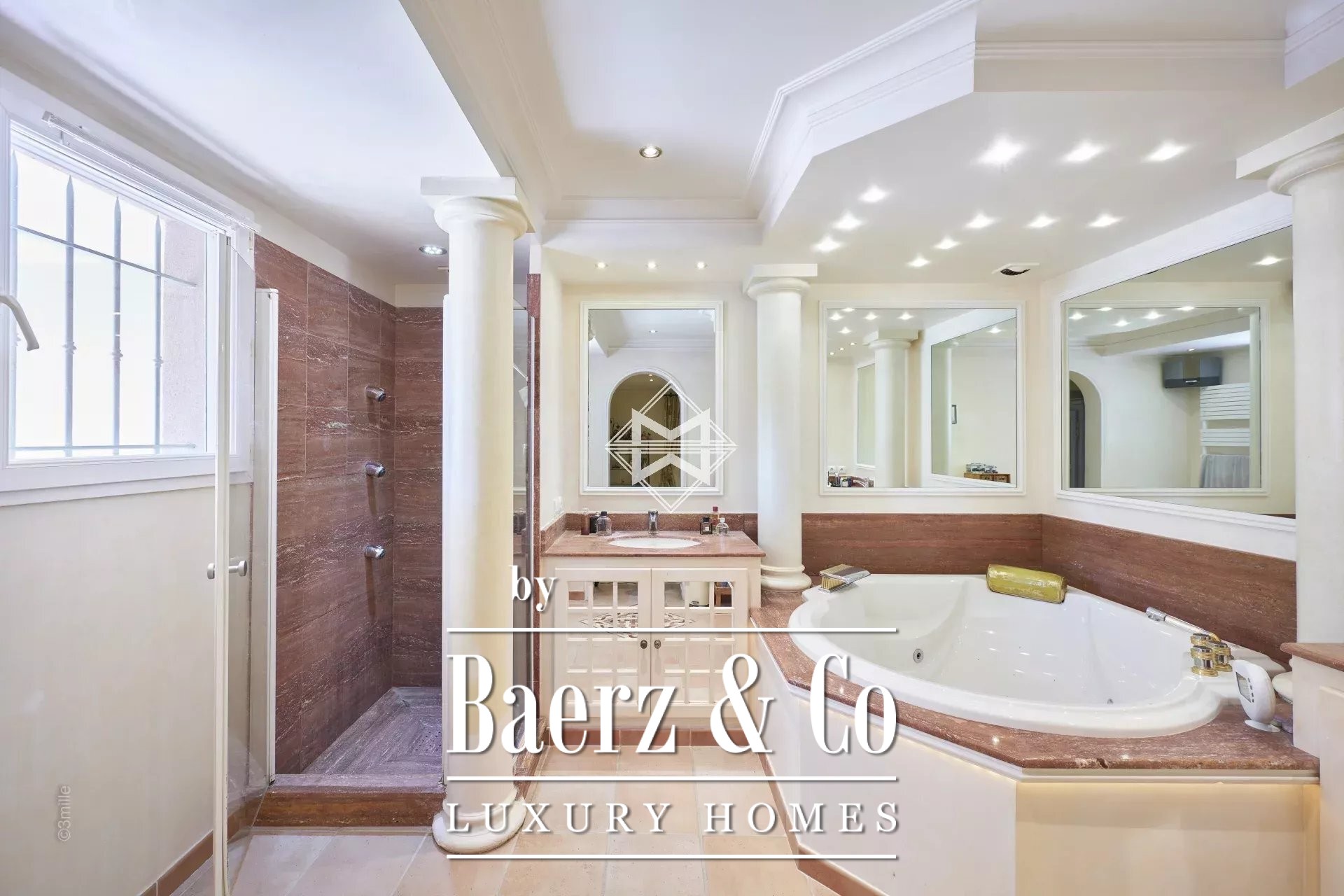 Additional features include a self-contained studio with kitchenette and bathroom, an expansive wine cellar, a garage for four vehicles and carport for two, all within a secured, fenced estate equipped with alarm and video surveillance. Air-conditioning, underfloor heating and tailored amenities contribute to a sense of calm functionality. This villa for sale in Théoule-sur-Mer rests in discreet proximity to La Napoule and Cannes, offering both privacy and connection on the Côte d’Azur.