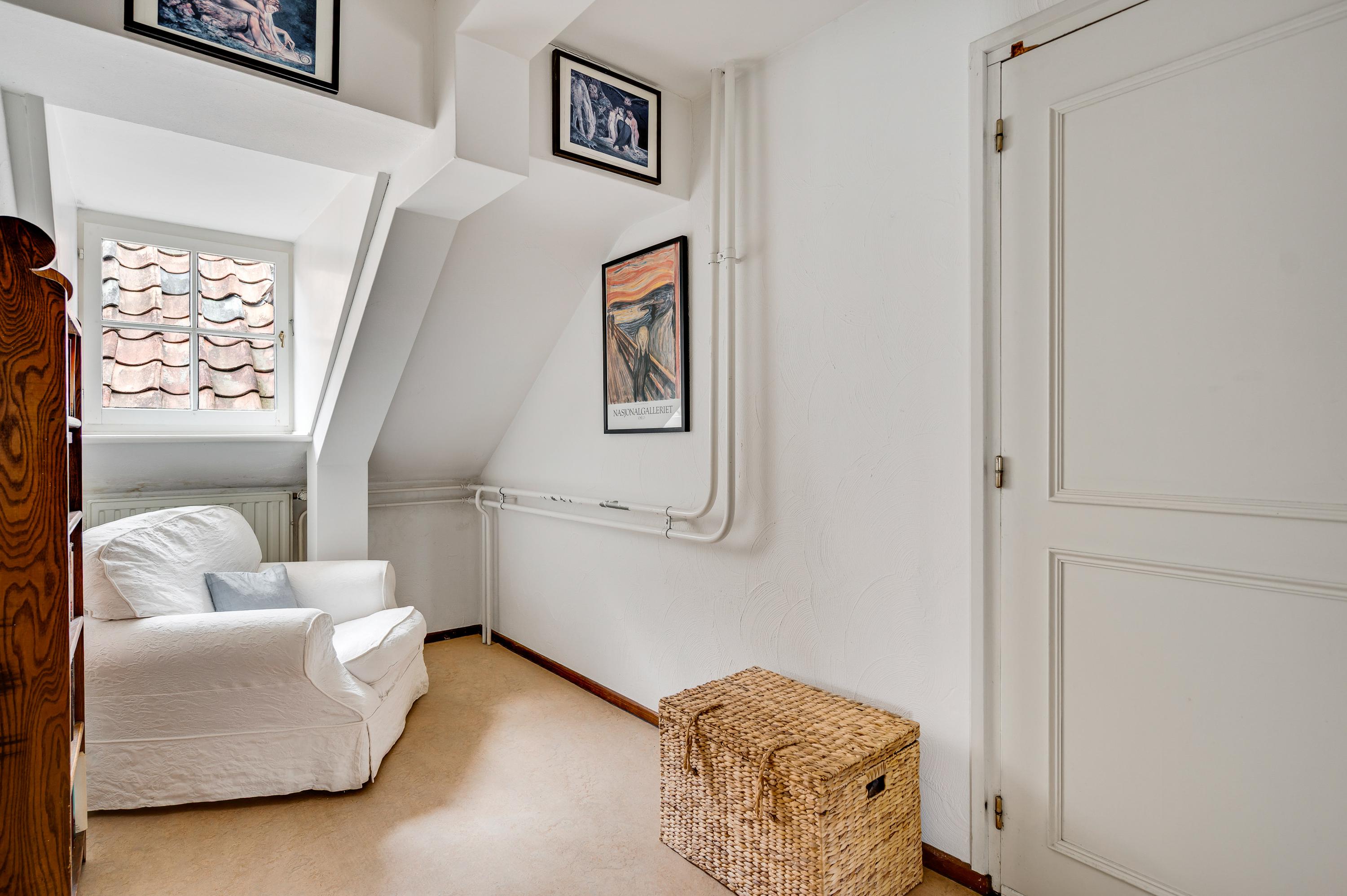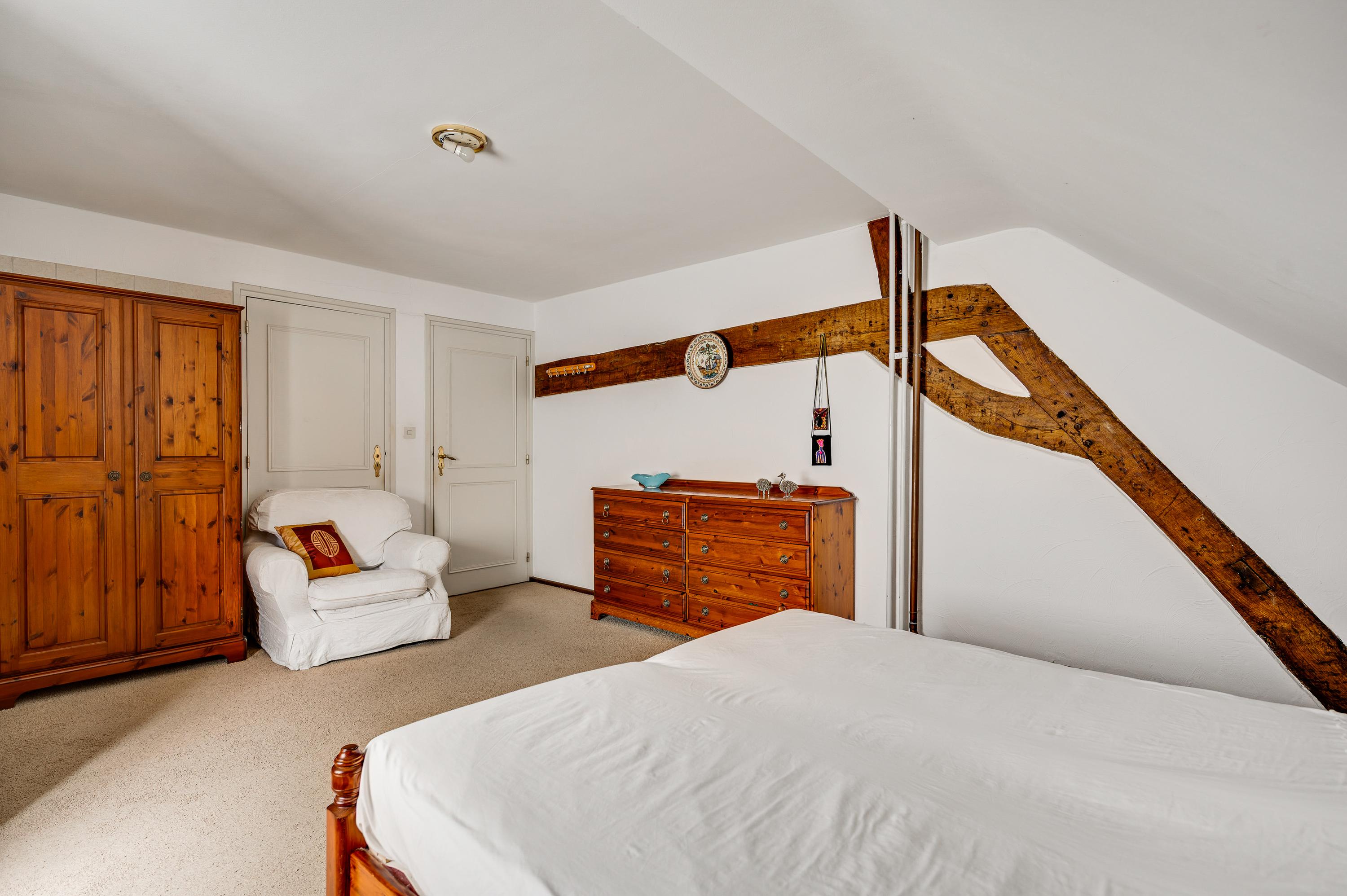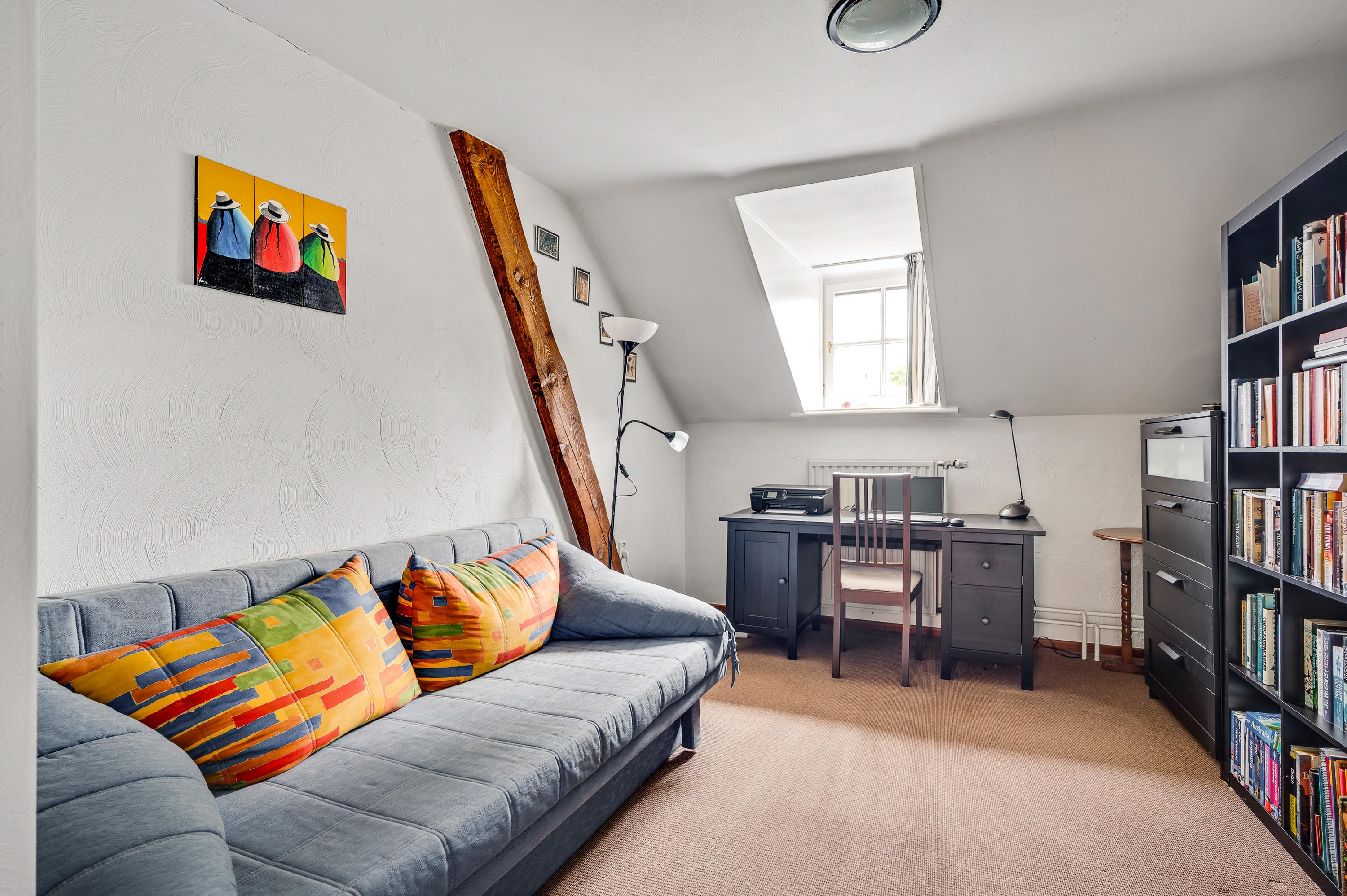 The garden seamlessly blends in with the house and offers plenty of privacy, despite its central location in the historic town center. The back garden is accessible via a private rear entrance and features several patios – one of which is covered – a lawn, and attractive flower beds.