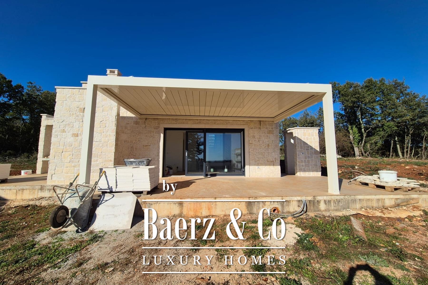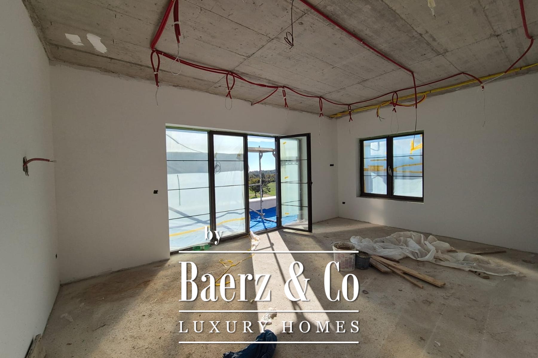 Each guest house welcomes with open-plan interiors, a bedroom suite upstairs, and private terraces shaded for relaxation, each with an outdoor kitchen and jacuzzi. Between the residences, a 20m heated swimming pool stretches alongside an outdoor kitchen, lakeside vantage, and sundeck. The estate is ringed by an olive grove, orchard, vineyard, and a private helipad. Nature and privacy define the experience, underscored by sustainable touches—the staff house is solar-powered, over 20 parking spaces serve both gatherings and retreat. Completion is planned for May 2025, offering Mediterranean living with no compromise on comfort or authenticity.