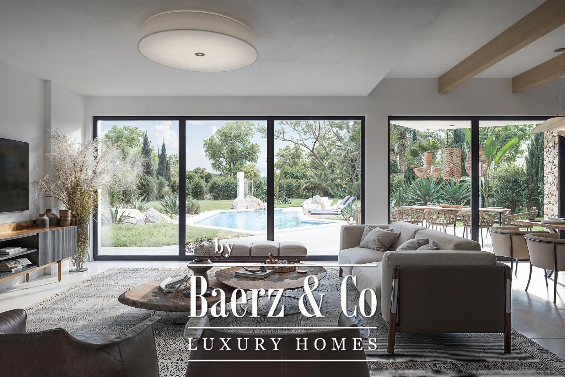 as a laundry room, engine room, and storage room. Underfloor heating in all rooms, air conditioning (duct system in the living area), and smart glass switches with Touch technology further increase the level of comfort.Special attention has been paid to the outdoor area: a 60 m2 heated swimming pool with mosaic finish and stone edge, a "dry beach" made in the effect of a sandy shore, a 120 m2 sports field with a tartan surface, ideal for several sports, and a summer kitchen with a barbecue located next to the pool.A landscaped garden with palm trees, low and tall plants, automatic irrigation and a natural oak forest in the background provides a feeling of complete privacy and harmony with nature. There is also a parking lot for two cars, paved with paving stones, while a 50-meter-long stone fence ensures privacy and a visual impression of solidity and luxury.This villa is ideal for family life, a luxury vacation or as an exclusive investment in tourist rentals. Construction and equipment are in the final stages, and moving in is possible very soon.Do not miss the opportunity to become the owner of this unique property. Contact us for more information, a tour and a complete presentation.