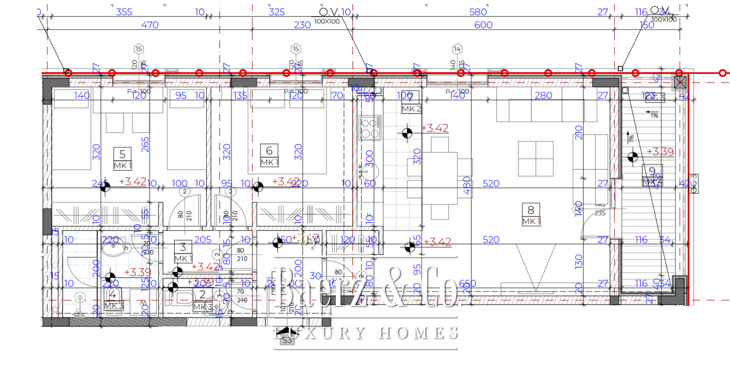 The building has 5 floors, while the apartment is on the 1st floor. This building complex will have: grocery stores, shopping stores, a park and a playground. The project is connected by an asphalt road to the main road. The 1st phase of the project will be finished by the end of 2026.