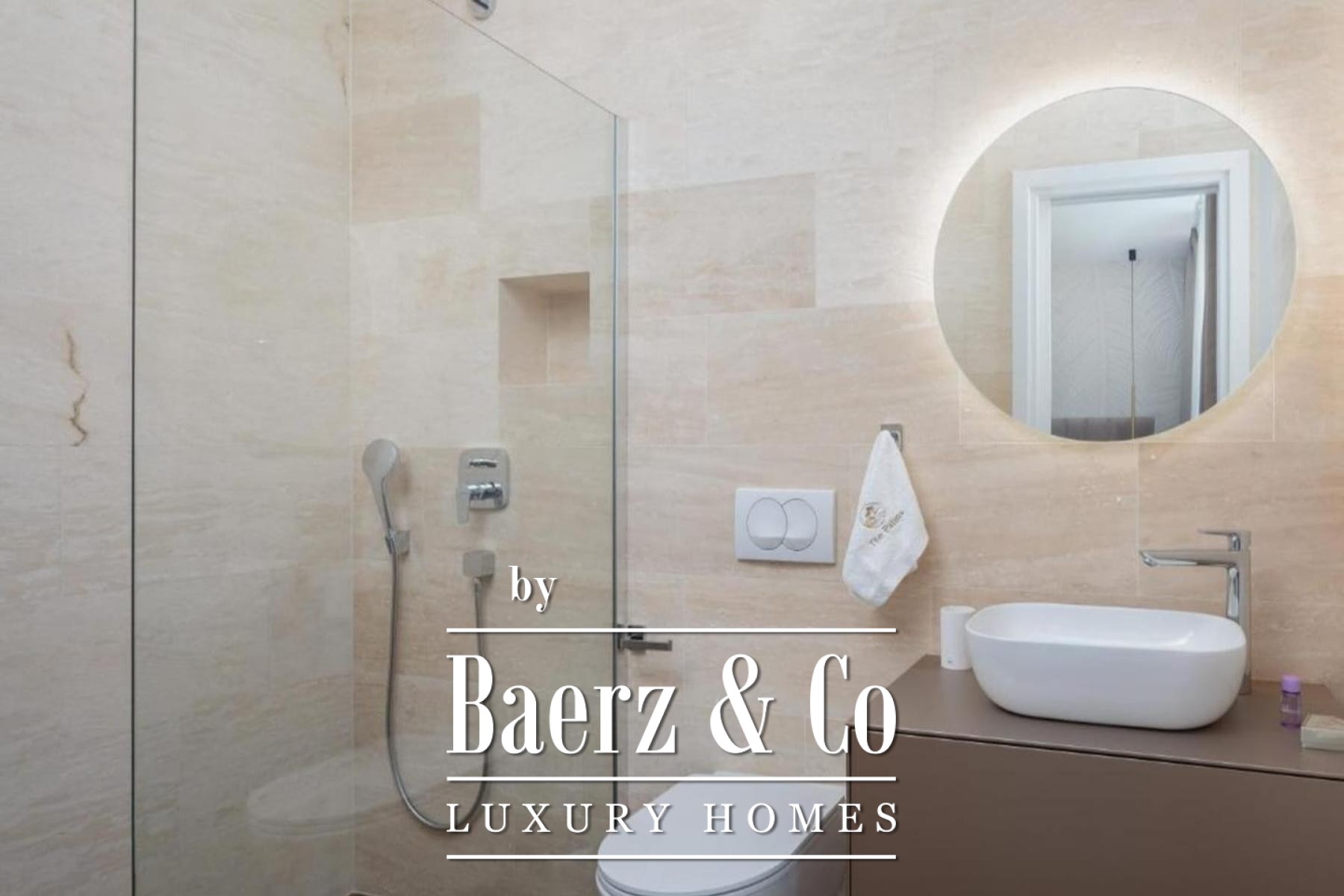 The beach lies just a few metres from the villa, capturing the essence of coastal living. This luxury villa for sale in Tkon offers a rare balance of comfort and privacy within an exclusive resort, distinguished by its considered design, tranquil setting, and proximity to the sea.