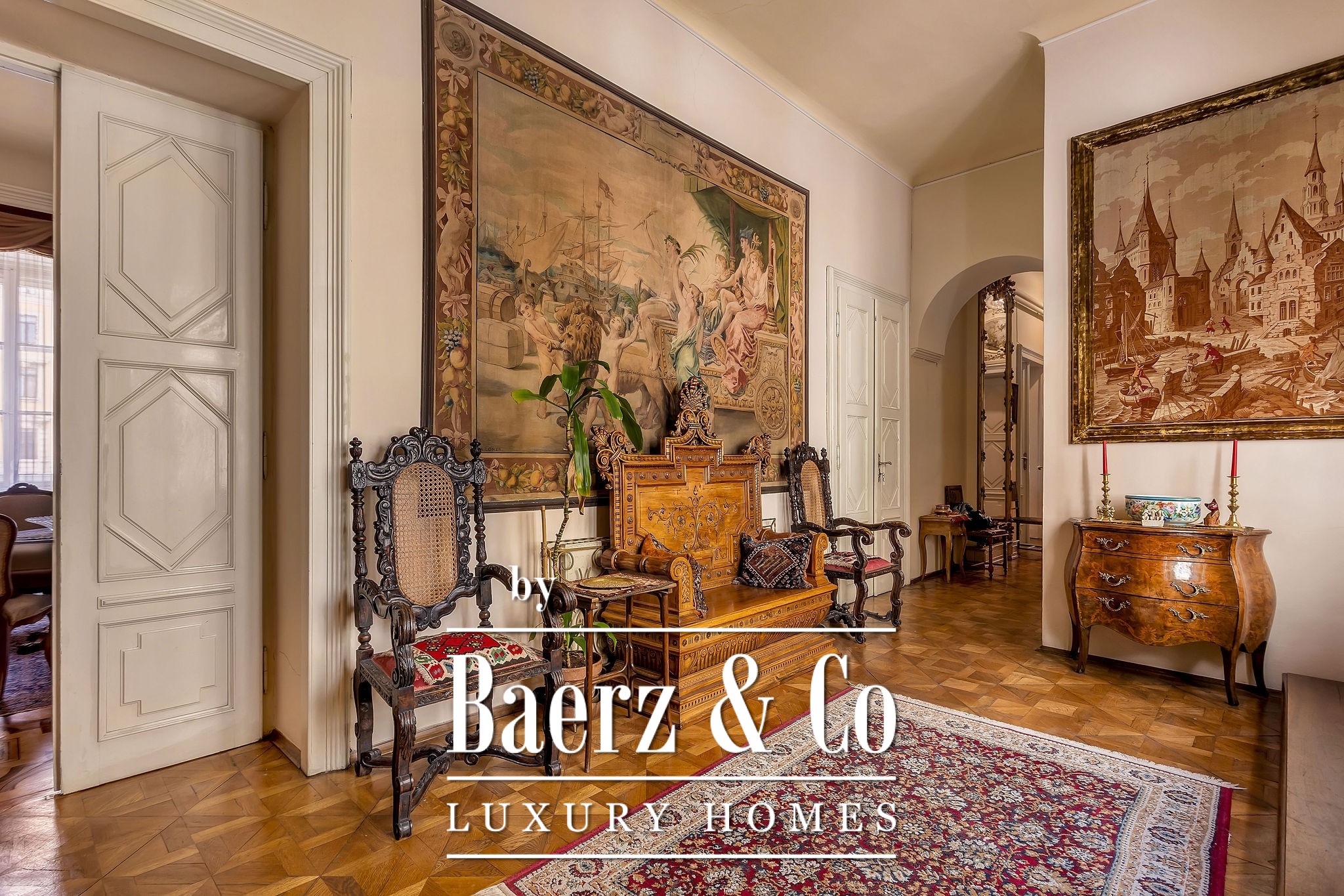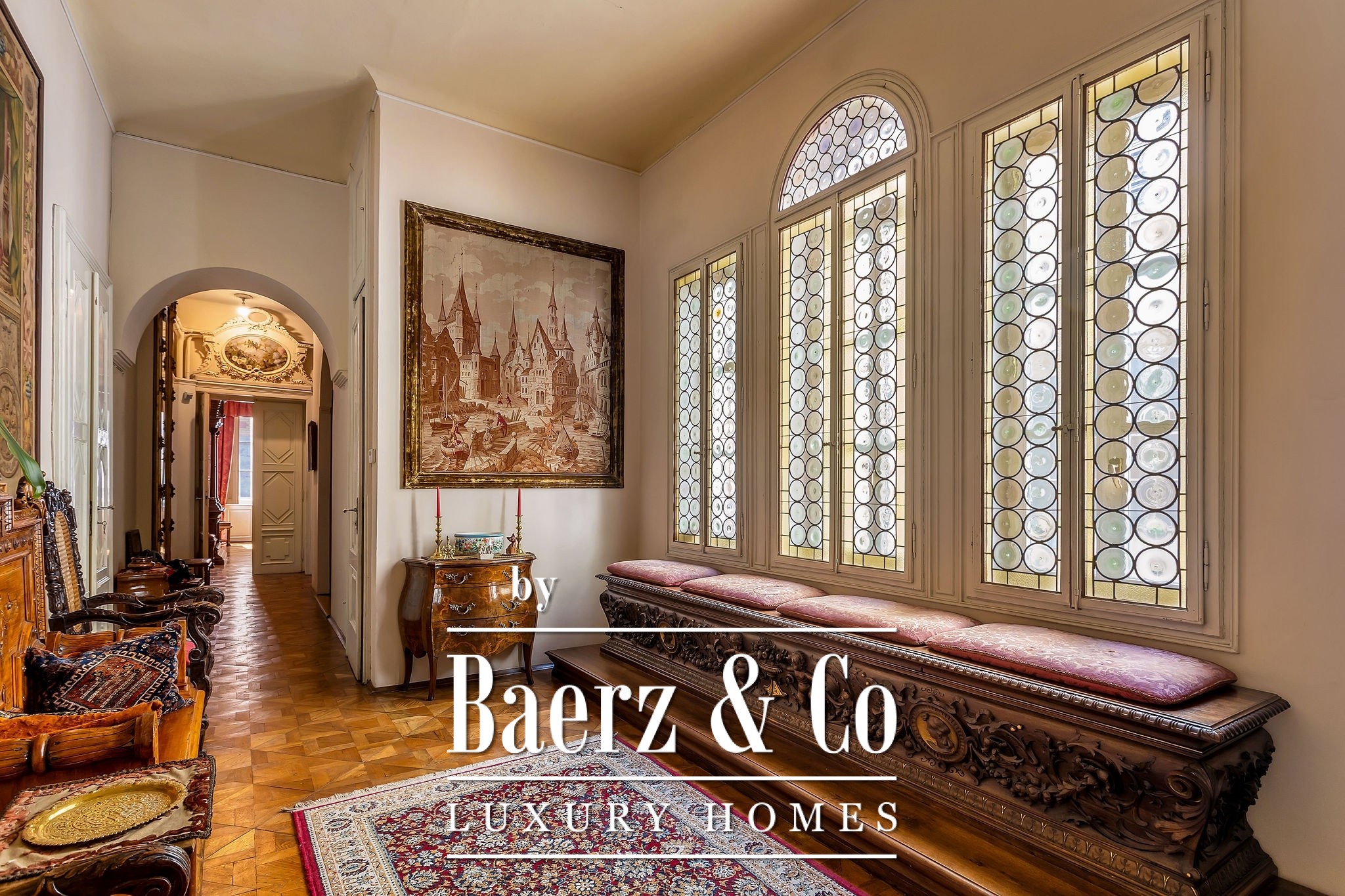 Offering 320 m² of living space and an additional 90 m² of attic area, the property provides flexibility for various uses from a distinguished private residence to a refined atelier or a representative office.