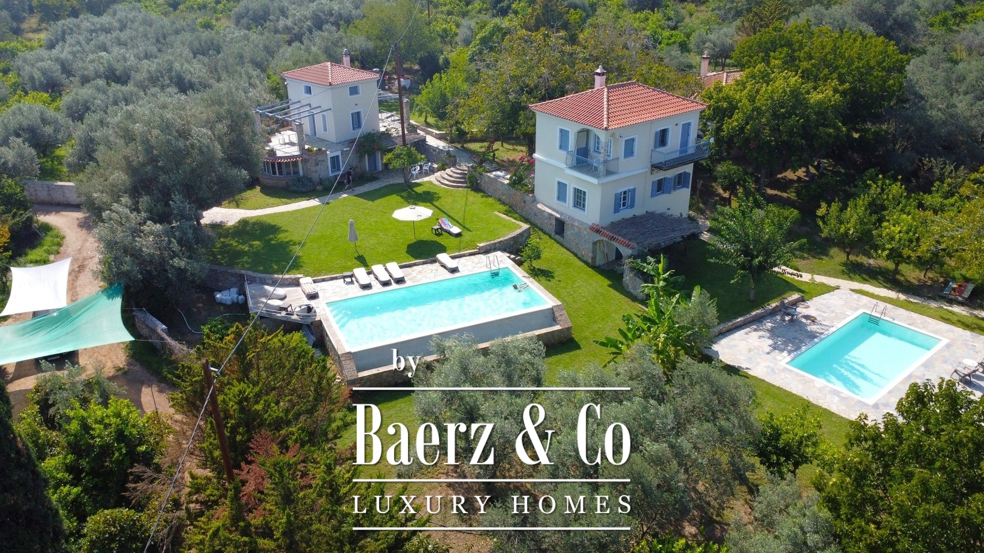 On a magnificent 3 acres of land, this unique complex of three luxurious villas with Mediterranean architecture, ideally designed to offer total relaxation and tranquility. The villas are surrounded by lush gardens, with excellent tree planting and large areas covered with lawns, offering a sense of natural harmony and peace. Stone paths cross the grounds, lending a romantic and authentic touch to the landscape. All the residences are on 2 levels, the largest residence is 140 sq.m and has 3 bedrooms, the second residence is 120 sq.m and also has 3 bedrooms and the third and smallest villa is 85 sq.m with
