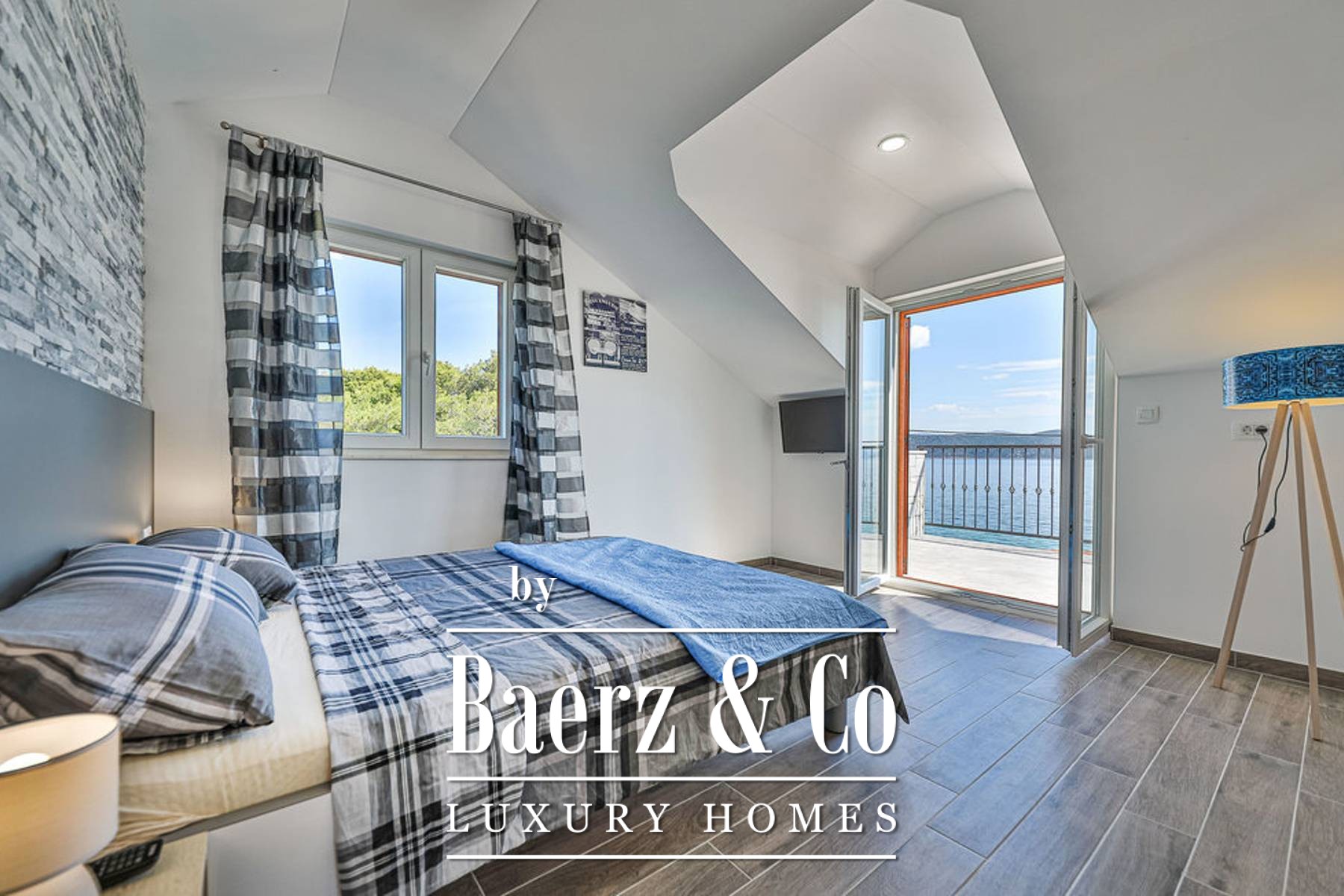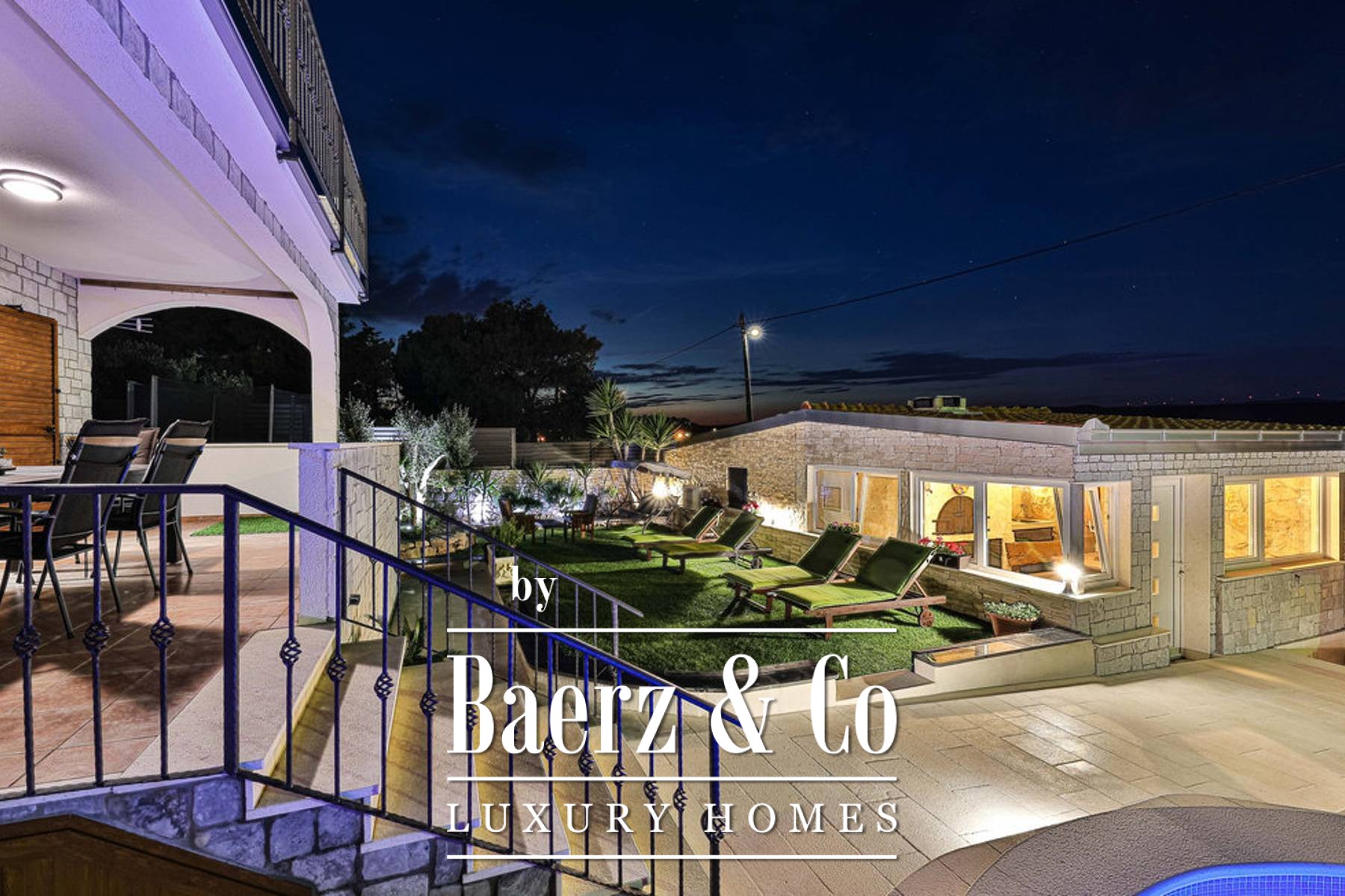 of the building.The great advantage of the house is that the entire facility has been rented to tourists for vacation for years in the season (expected prices are depending on the period from 2 to 4.5 thousand per week).The residential units are comfortable, rooms with bathrooms, a spacious terrace with open sea views, and in front of the house is a swimming pool with sun deck and a 50 m2 indoor football field on artificial grass. The house is located in a quiet location, 10 meters from the sea and nearby is the famous beach. It is surrounded by a beautiful garden full of Mediterranean plants.In addition to the main building with a landscaped yard and an auxiliary building that are one unit with the yard. This beautiful villa is ideal for all who want peace and privacy in a beautiful and natural environment. Drvenik is an ideal place for a quiet holiday away from the hustle and bustle of the city and major tourist centers.On Drvenik you can enjoy the crystal clear sea on one of the many beaches and hidden coves located throughout the island. The excellent atmosphere of the island and the luxuriously equipped holiday house by the sea are the ideal combination for a pleasant vacation.The pool, sauna are great for relaxation and all in the private atmosphere of a fenced plot - just perfect.We are at your disposal for any questions.