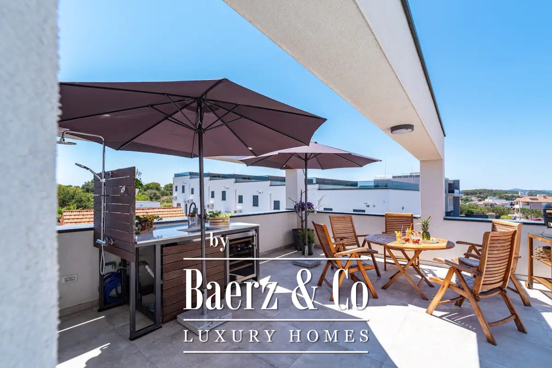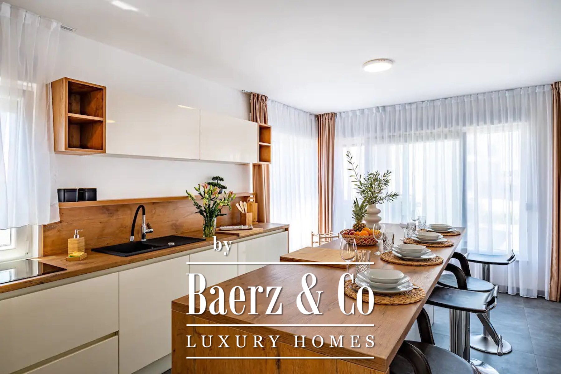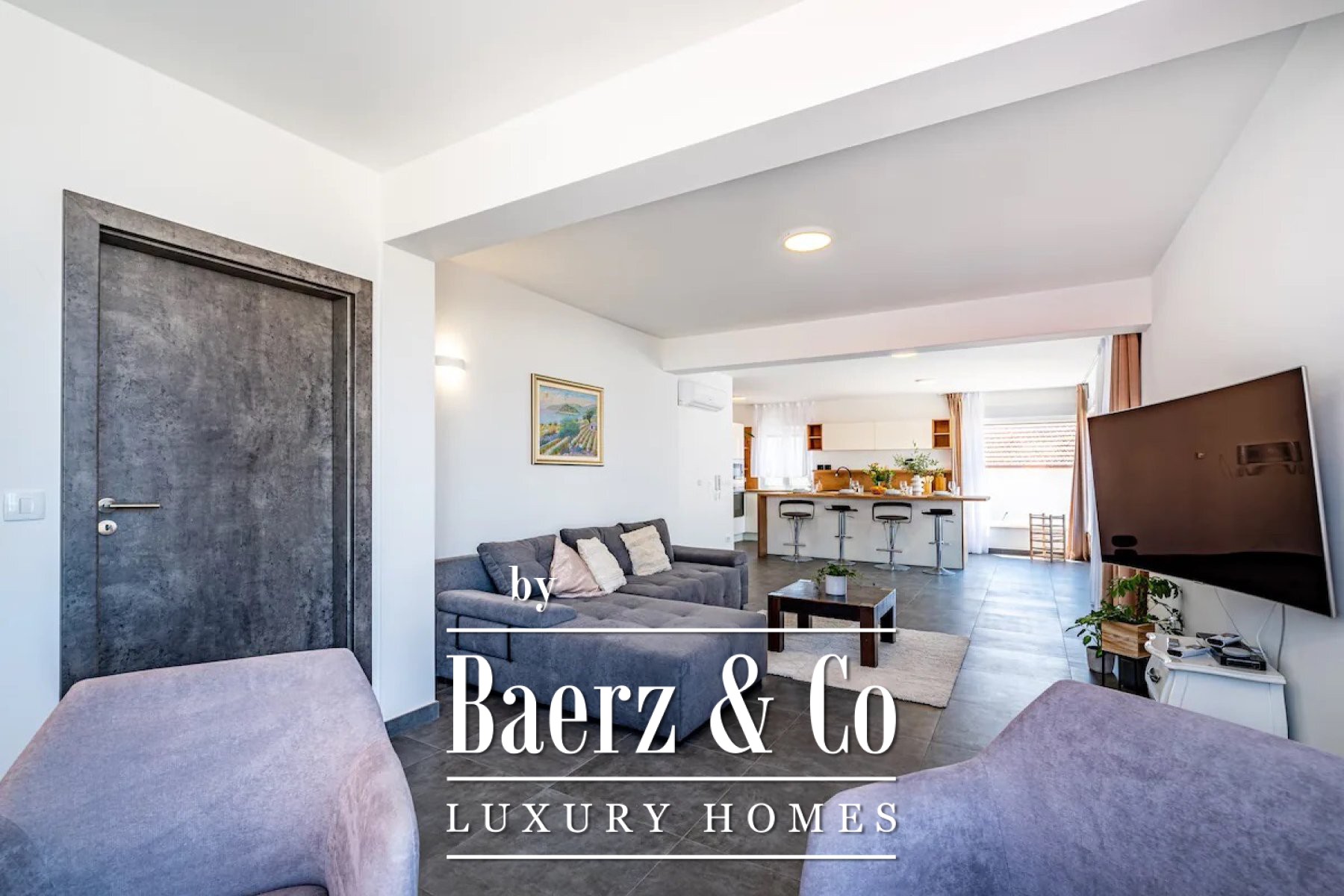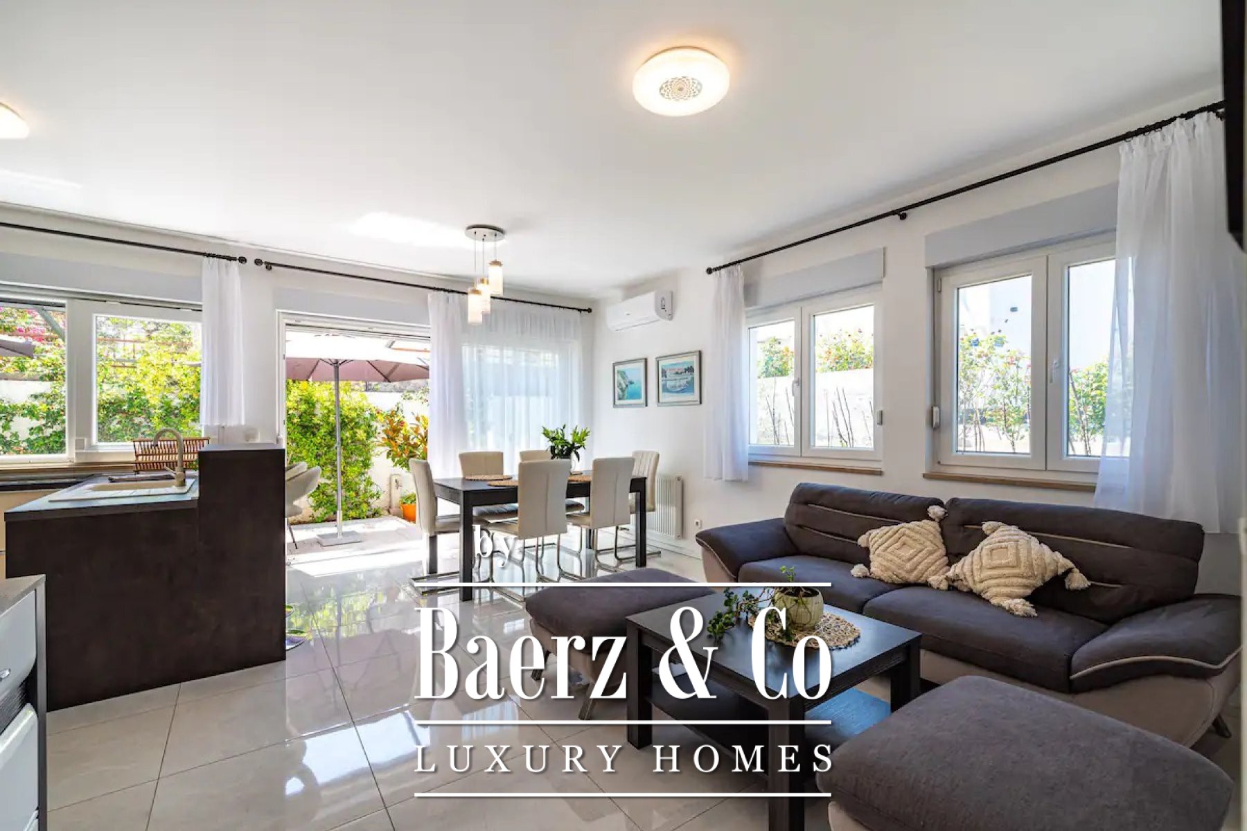 Čiovo, modern newly built house, located in a beautiful position only 400 m from the sea. Total BKP 180 m2. It extends over two floors, with two separate residential units. Completely modernly decorated and equipped.On the ground floor there is a living room, dining room, kitchen, two bedrooms and a bathroom. It also has a landscaped garden with outdoor furniture, a terrace, a garden and a fenced area for children.On