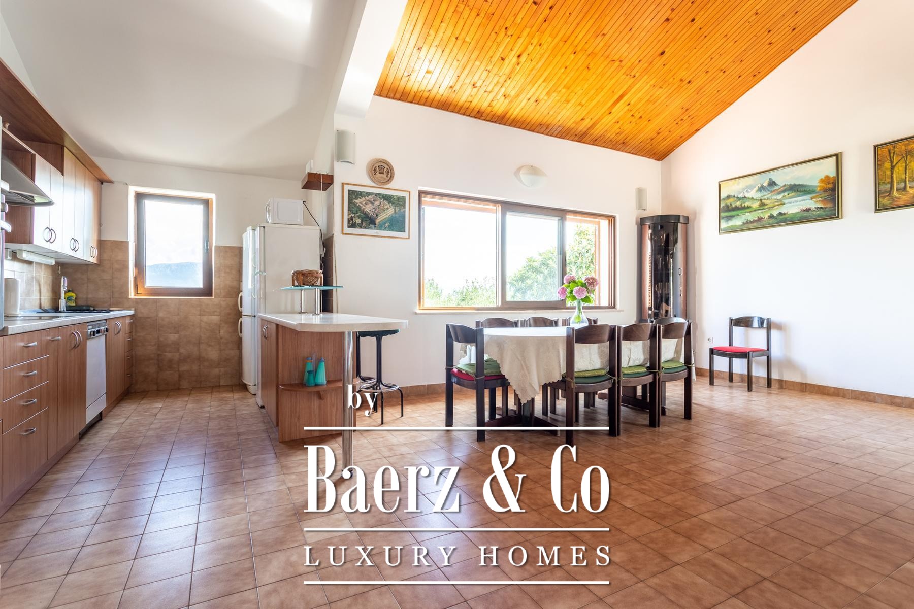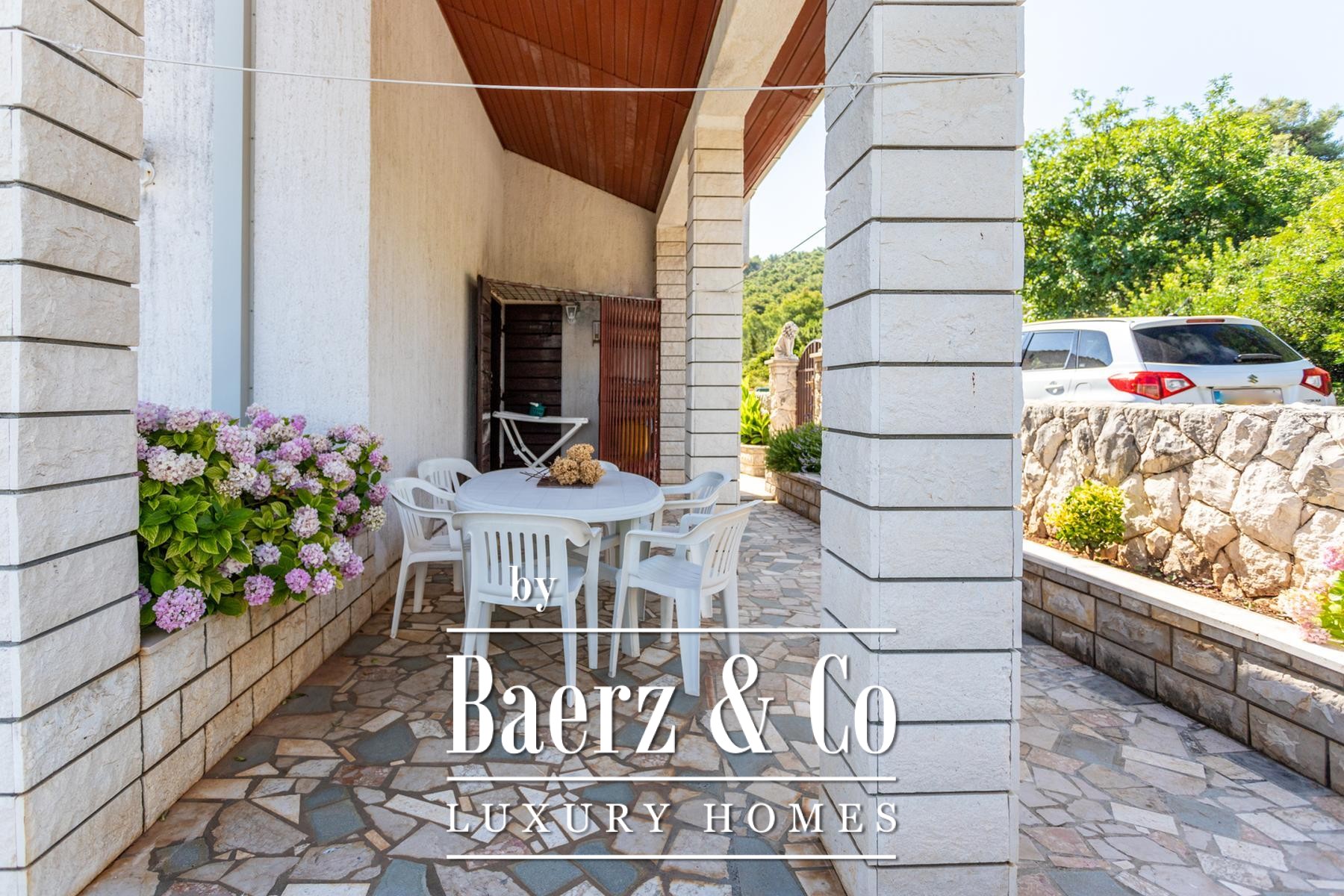 A separate 23 m² guest house on the plot extends accommodation, complemented by three paved terraces, parking for four additional vehicles, two grills, and two outdoor showers. The property is prepared for future leisure with a dedicated area suitable for a swimming pool. Modern comforts include city water supply, electricity, rainwater cistern, and solar panels for hot water. This luxury townhouse for sale in Trogir stands as an invitation to privacy, volume, and year-round Mediterranean light.