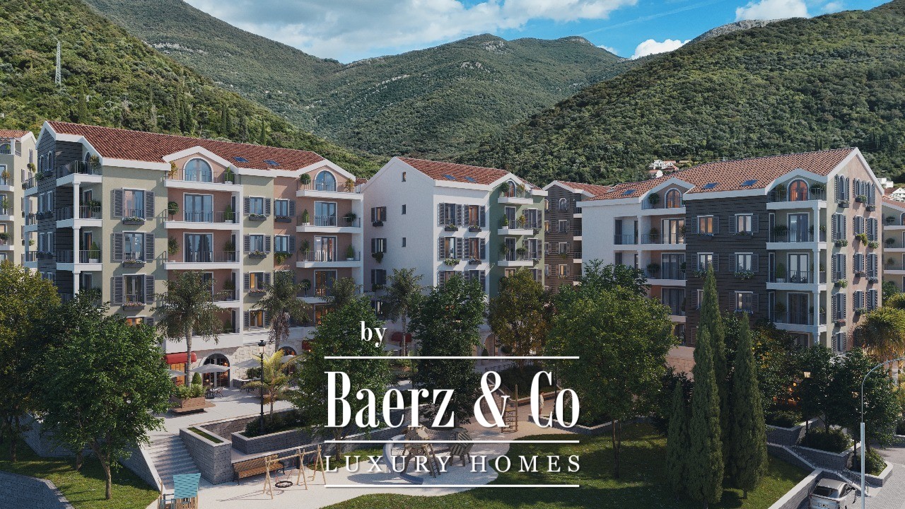 Apartment Tivat offers a composed retreat just 500 metres from the Adriatic shoreline and close to the city’s heart. This apartment, occupying 63 m² on the fifth floor of a new five-storey development, comprises two bedrooms, one bathroom, a hallway, a living room with bed, kitchen and dining area, and a terrace. The interior will be delivered with finished floors and tiles, a fully equipped bathroom, and air conditioning, meeting practical needs with enduring materials.