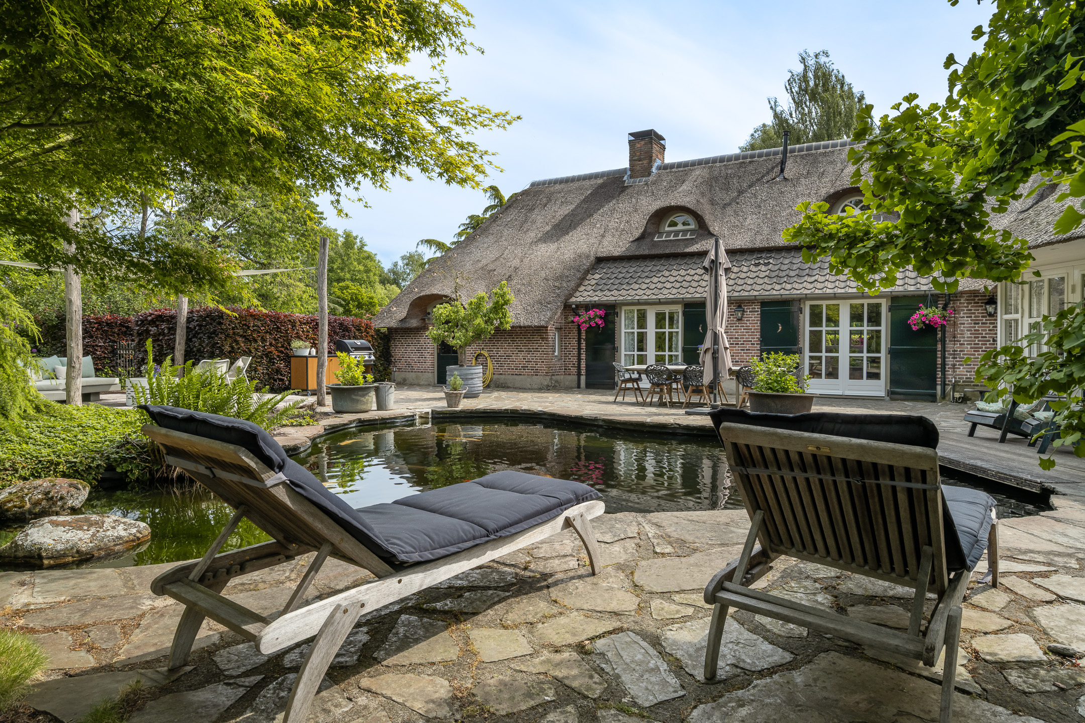 Set on approximately 1 hectare of land, the estate offers a park-like garden with mature trees, a pond, and multiple terraces. For equestrian enthusiasts, there are stables, a fully fenced paddock, and direct riding access to the Bedafse Bergen trails. Additional features include a fruit orchard, vegetable garden, natural pasture pond, animal shelter, an authentic water well, and even a converted baker’s cottage serving as a charming chicken coop.