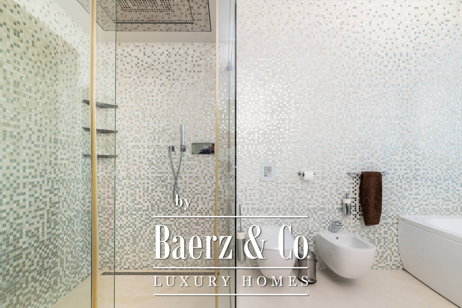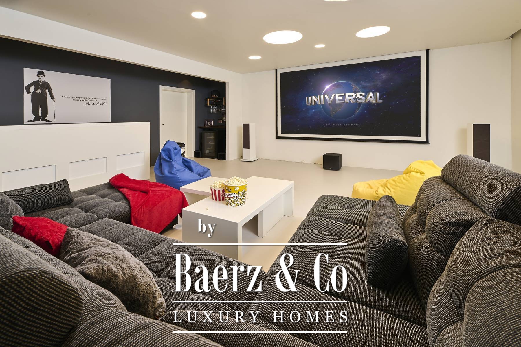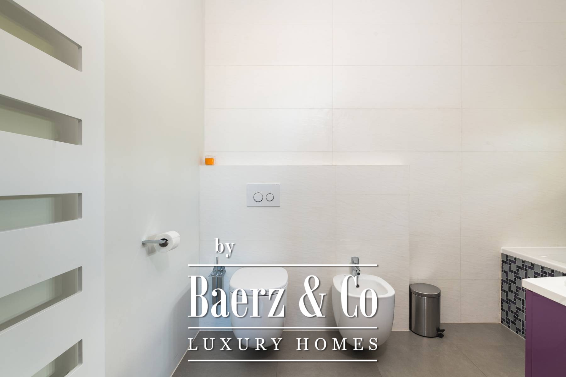 Modern smart house with 4.956 m2 land surrounded by olive groves just 400 meters from the favorite beaches of Umag. The architecture merges elegant design and stone as a traditional building element into an attractive villa with pool that provides the highest standards of modern living.The main entrance and driveway to the building are located on its west side, on the existing street, and the space for a garage with storage and a multimedia hall in the basement of the building.The ground floor consists of an entrance hall on the west side, a guest room with bathroom on the north side of the building and a unique living room, kitchen and dining room which is connected to the south facing terrace facing the sea, and north to the garden and outdoor terrace.In the entrance area, which is accessed west through the windshield, there is a garden on the north side of the house. The guest room is connected to the entrance area via an entrance hall from which one enters the bathroom. In the western part of the building, in addition to the mentioned windshield, there is a toilet to the north, and to the south there is an economic space related to the kitchen. On the west side of the south terrace, connected to the kitchen and the economic part, there is a summer kitchen covered with the volume of the upper floor.A staircase